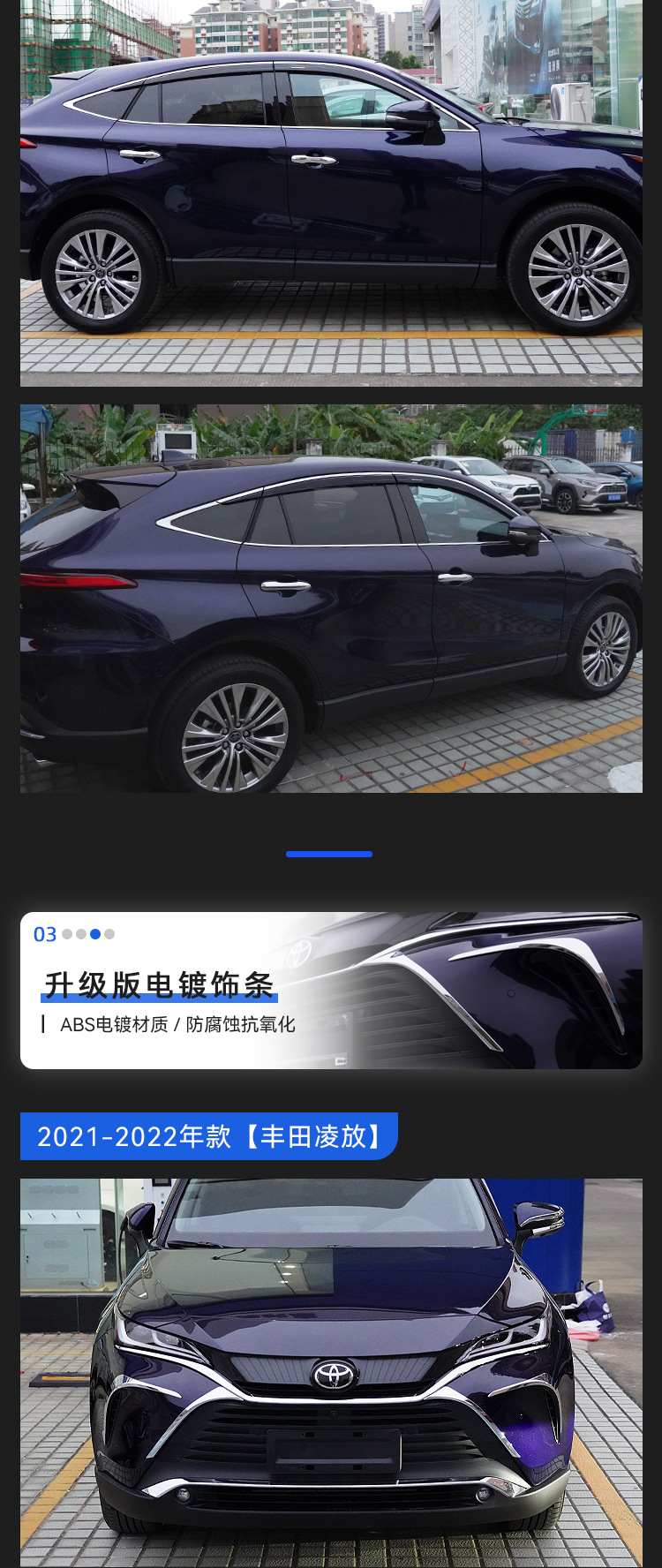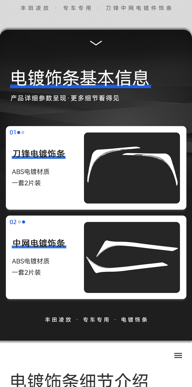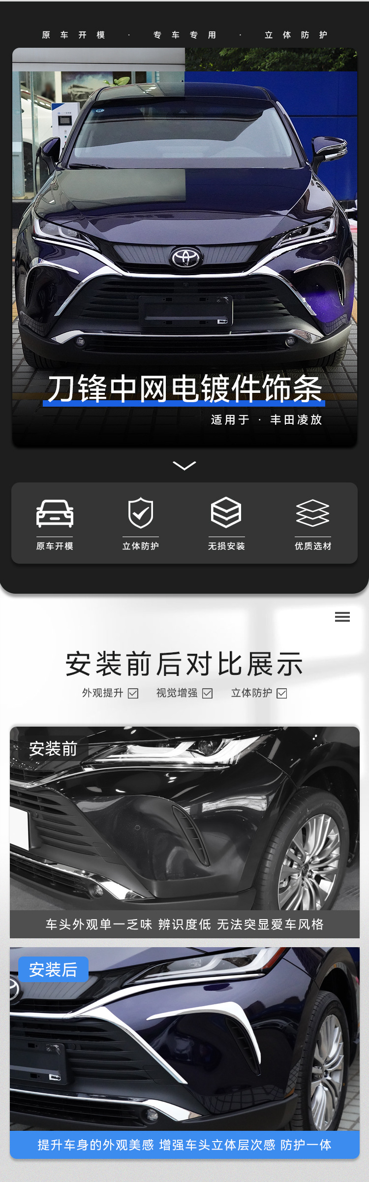 • 2020-현재 모델-Harrier Lingfang 전면 블레이드 전기 도금 트림 스트립(2개 팩)