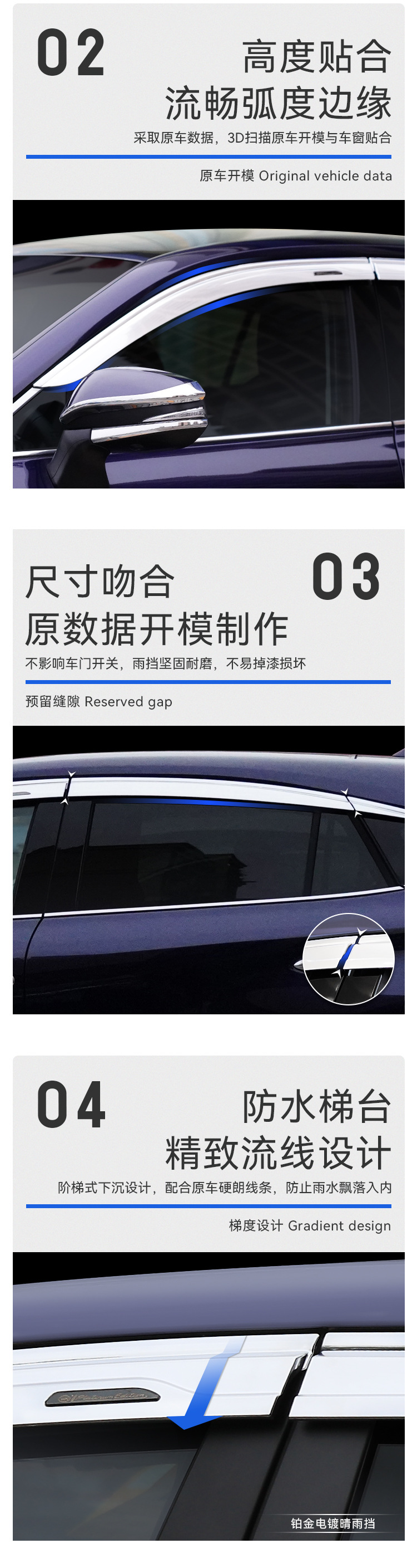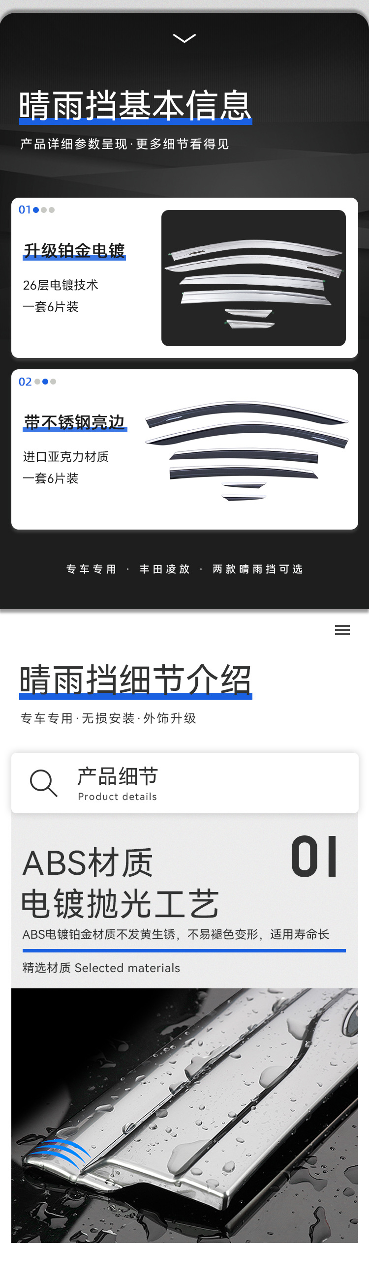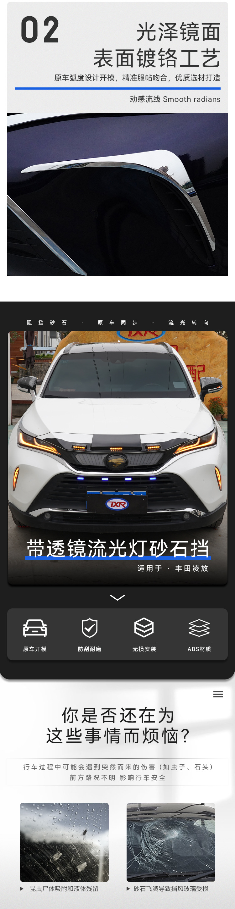 • 2020-현재 모델-Harrier Lingfang 오리지널 스테인레스 스틸 가장자리 비 또는 빛 실드 (6개 팩)