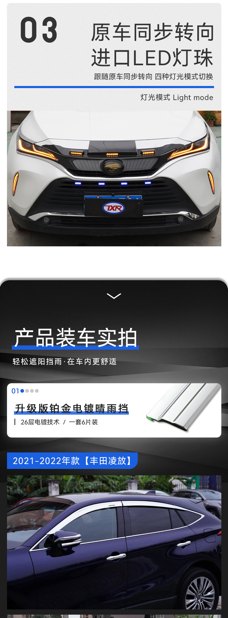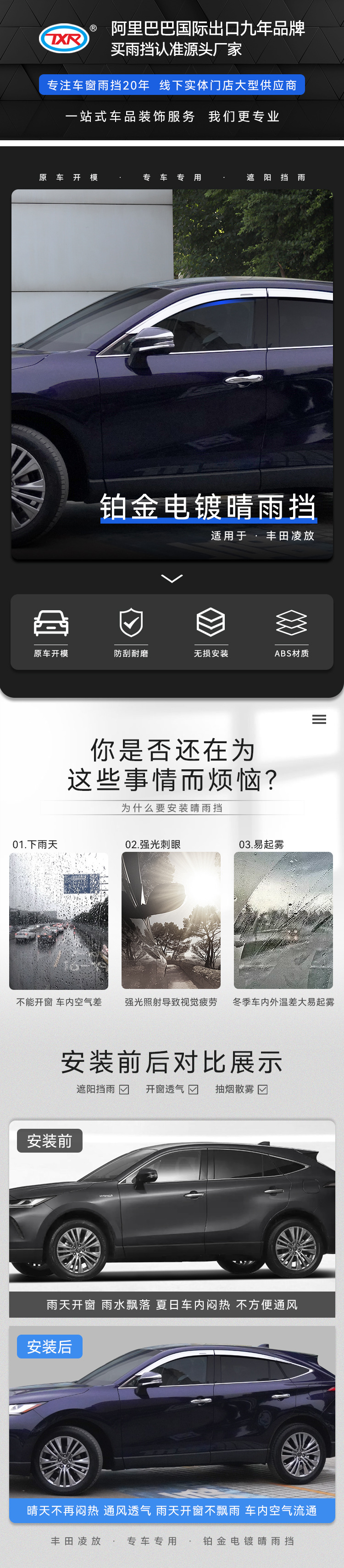 Tenxinrui는 Toyota Lingfang harrier 자동차 비 방패 창 비 눈썹 수정 사암 방패 액세서리에 적합합니다.스토어 가기