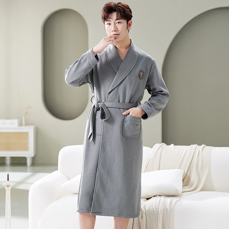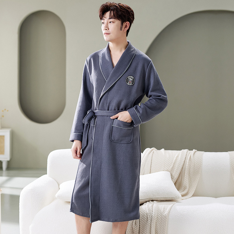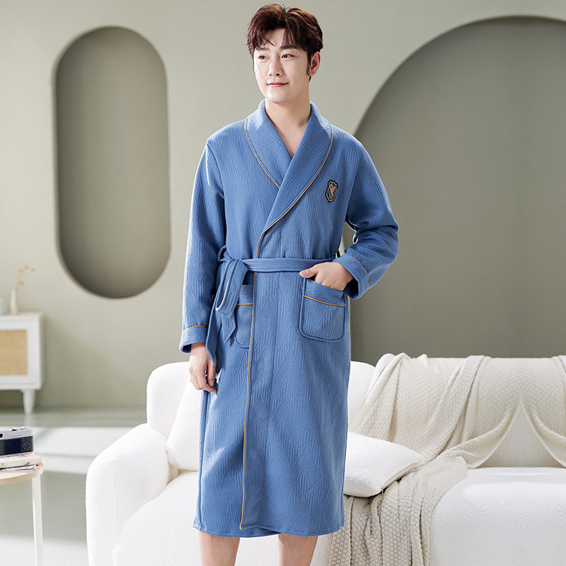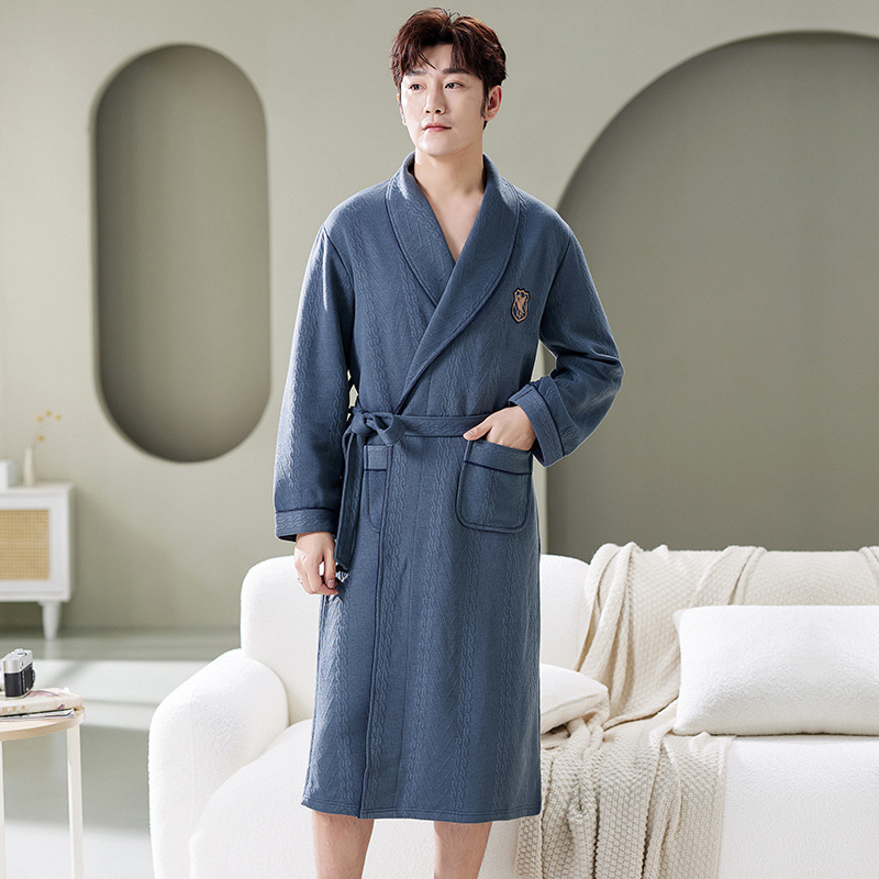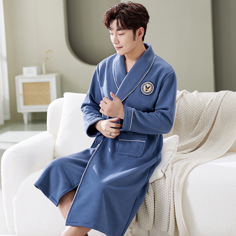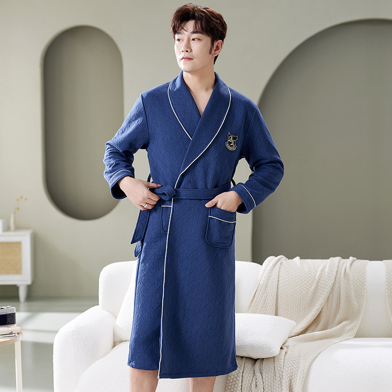 일본식 잠옷 남자의 가을과 겨울 니트 에어 코튼 샌드위치 가정복 중년 아빠를위한 겨울 따뜻한 긴팔 목욕 가운스토어 가기