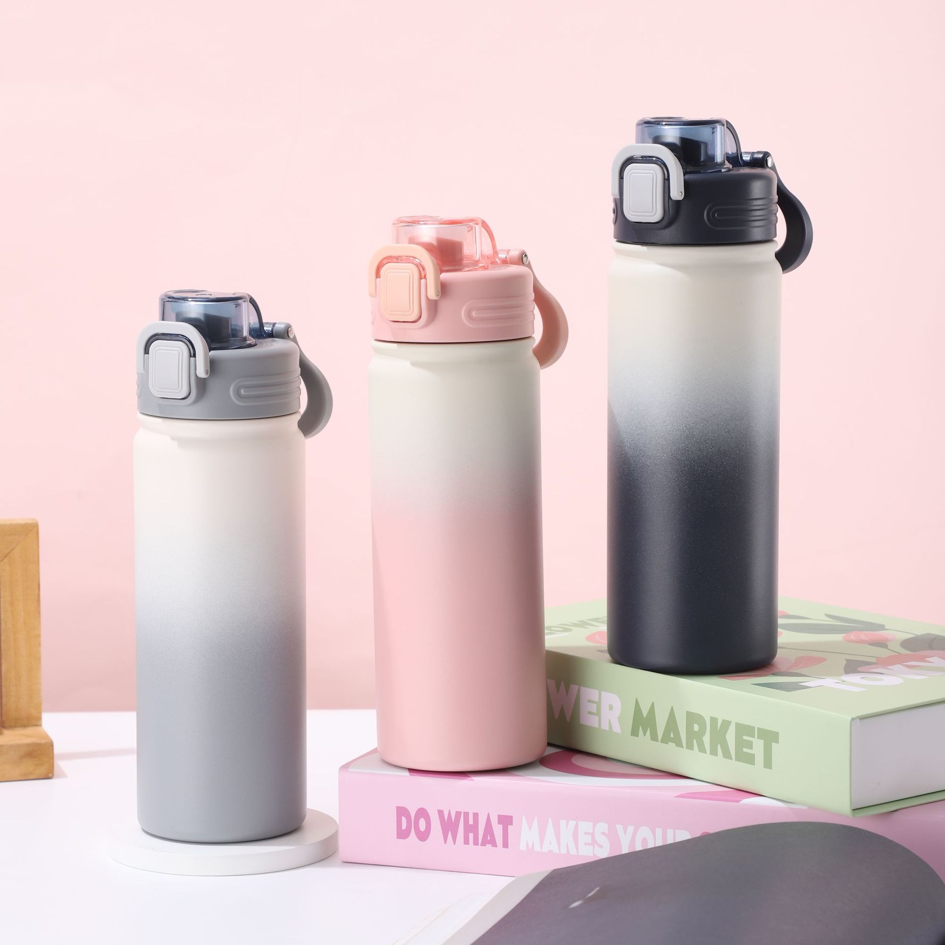 신보온병 컵 하이 컬러 값 그라데이션 대용량 직접 마시는 컵 남녀 학생 스테인레스 휴대용 바운싱 컵