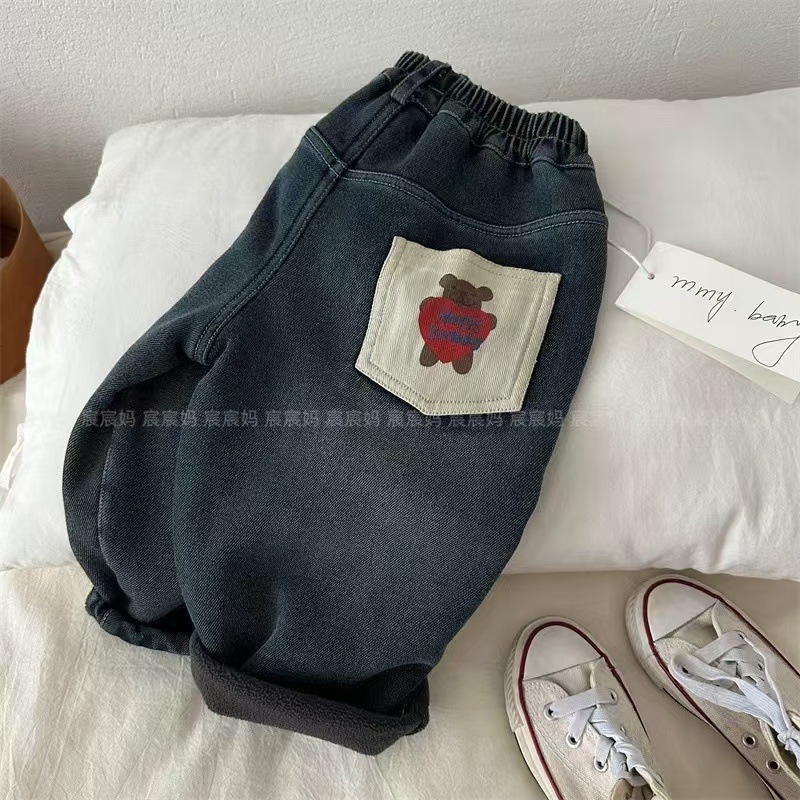 남아 기모 청바지 가을과 겨울 새로운 어린이 두꺼운 원피스 벨벳 바지 어린이 아기 겨울 웨스턴 스타일 바지스토어 가기