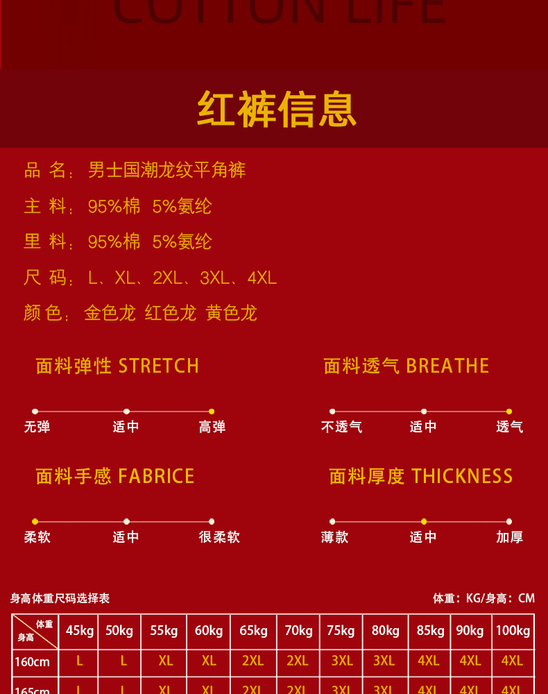 드래곤 레드 라이프 이어 남자 복서 속옷 남자 하이 스트레치 면 통기성 땀 흡수 허리 4 각 속옷 도매에 속합니다스토어 가기