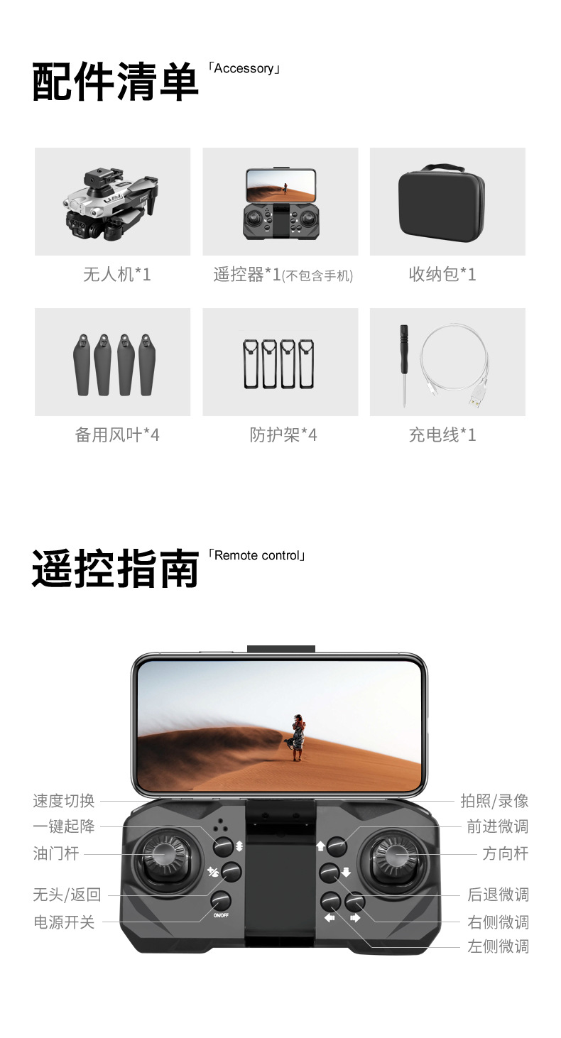产品配置:光流双镜头 收纳包尺寸:20.5*6*16CM (整套重量332g)