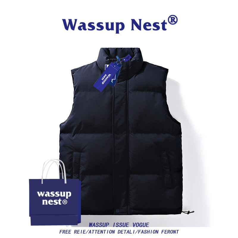 WASSUP NEST 다운 코튼 조끼 남성 겨울 2023 새로운 가을 겨울 조끼 툴링 어깨 조끼 남성 조끼스토어 가기