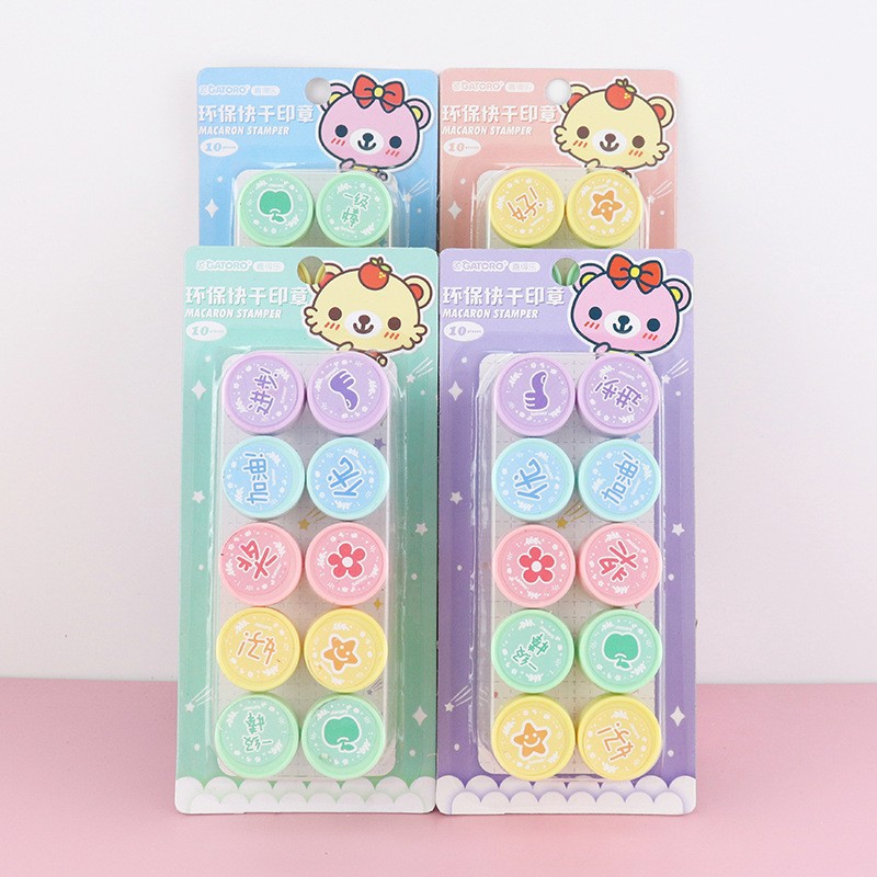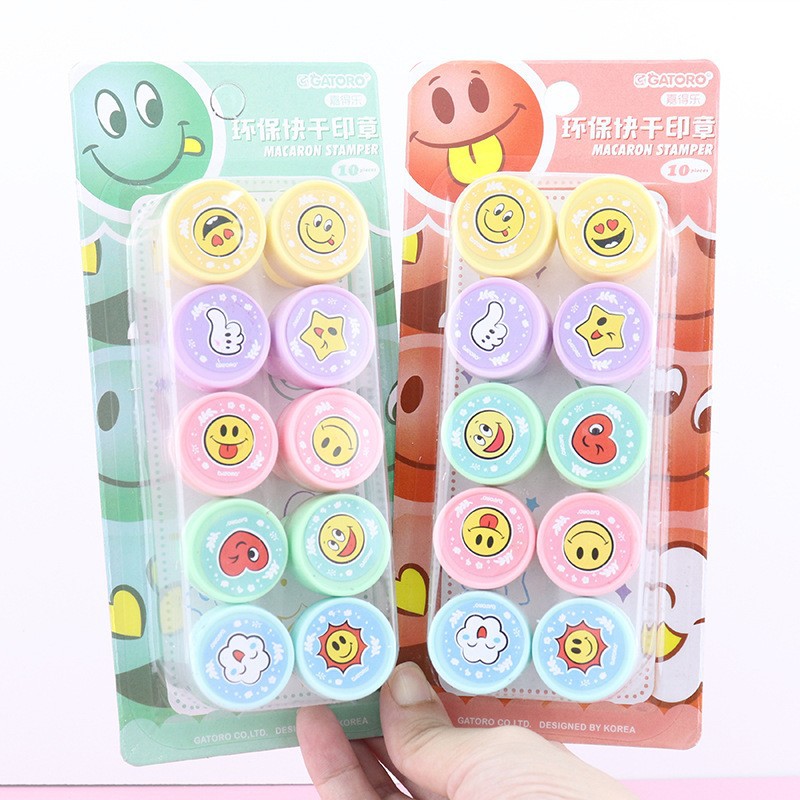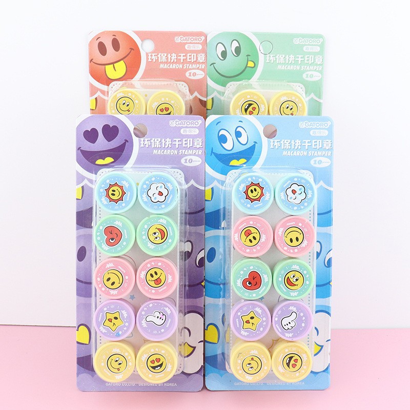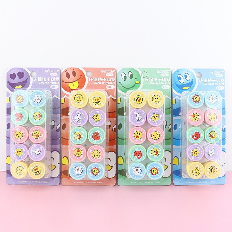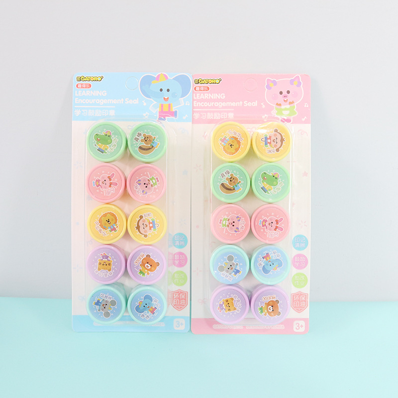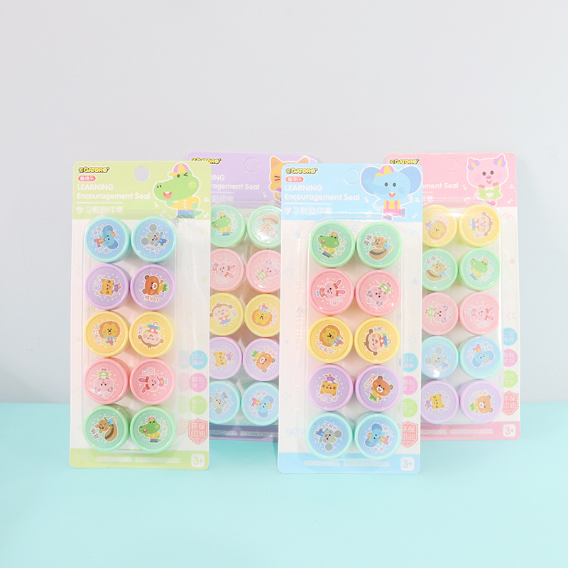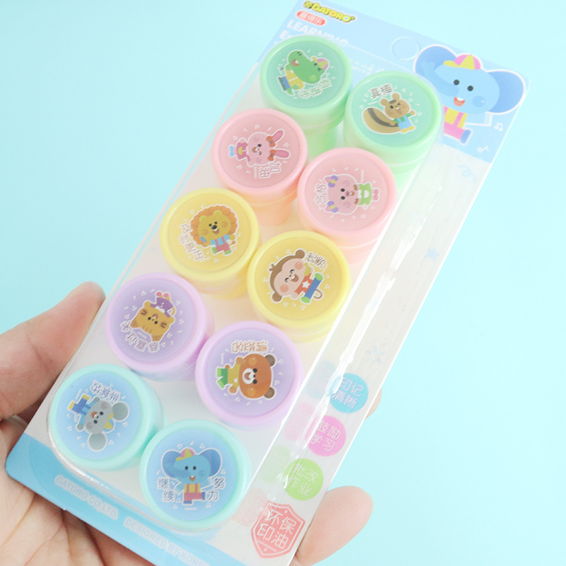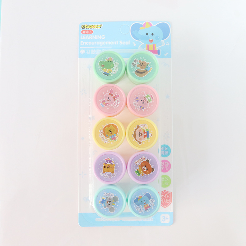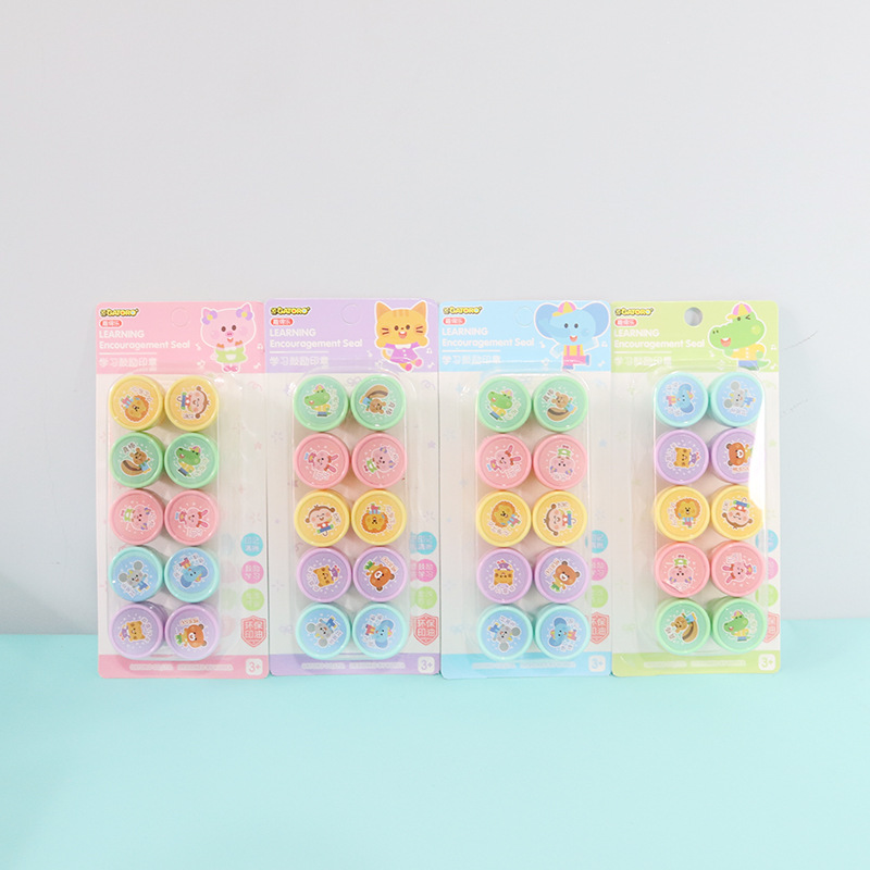 어린이 만화 인감 10 학생 귀여운 동물 잉크 패드 메달 교사 댓글 웃는 얼굴 표정 인감