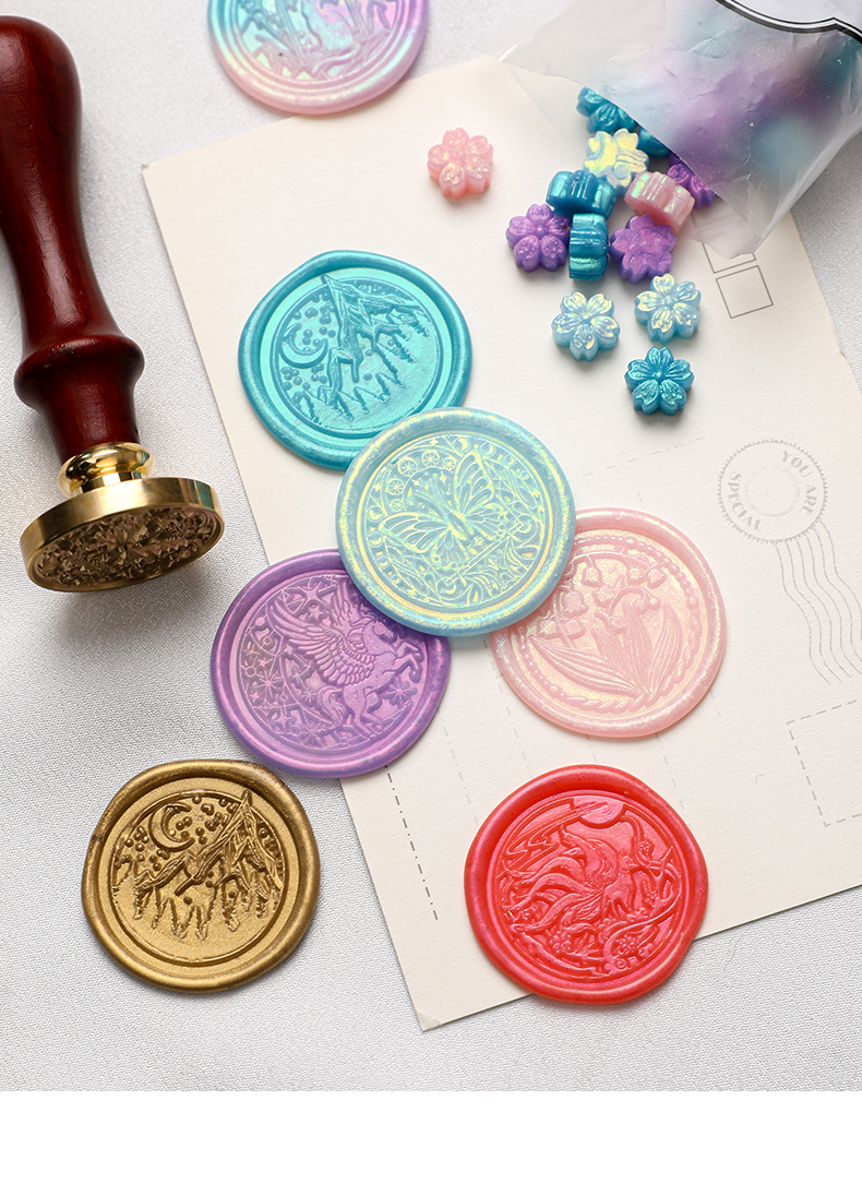 新品 极光火漆蜡粒 偏光偏色闪粉金粉变色火漆印章蜡全套批发