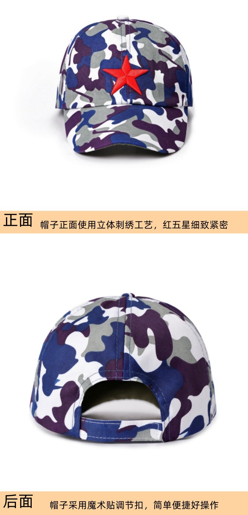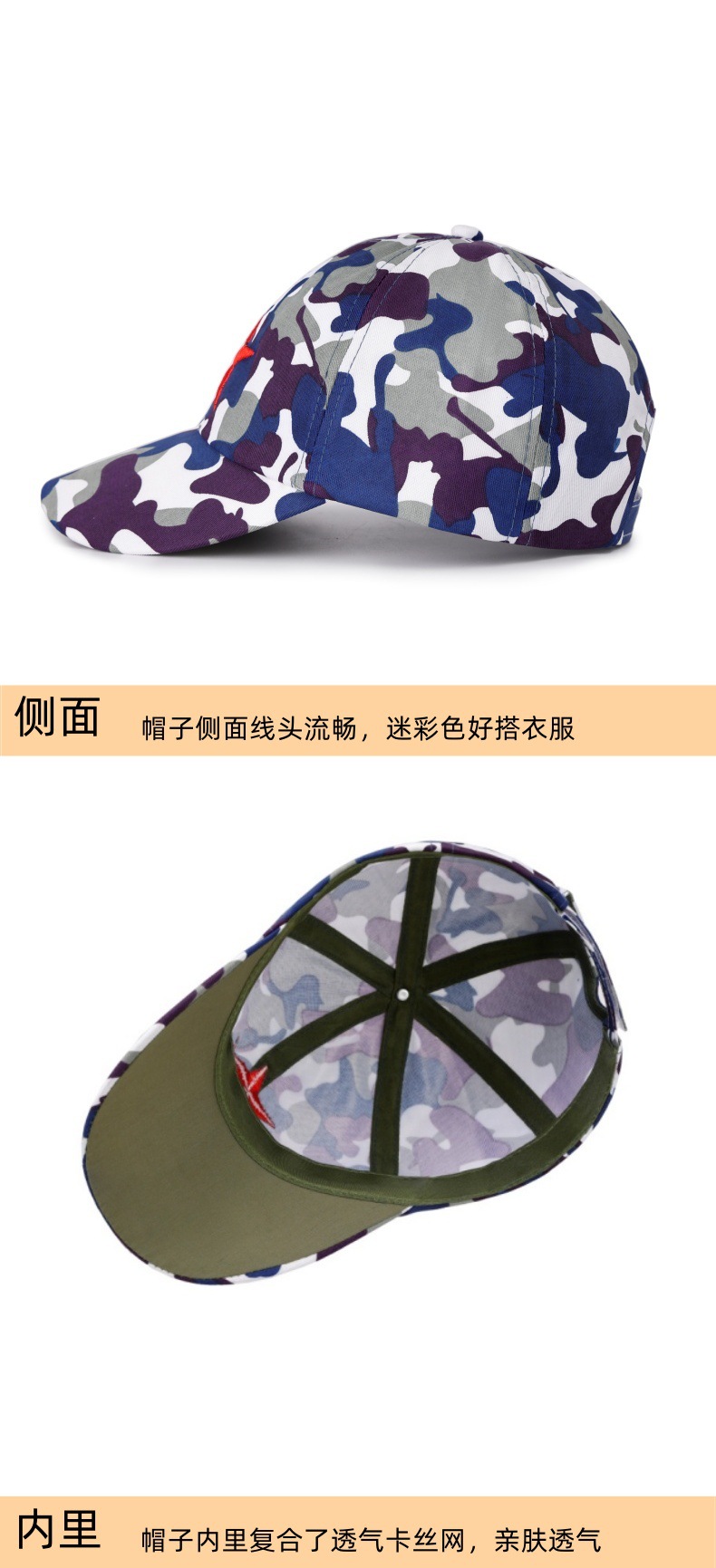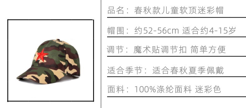 品名:春秋款中大童五角星迷彩帽
