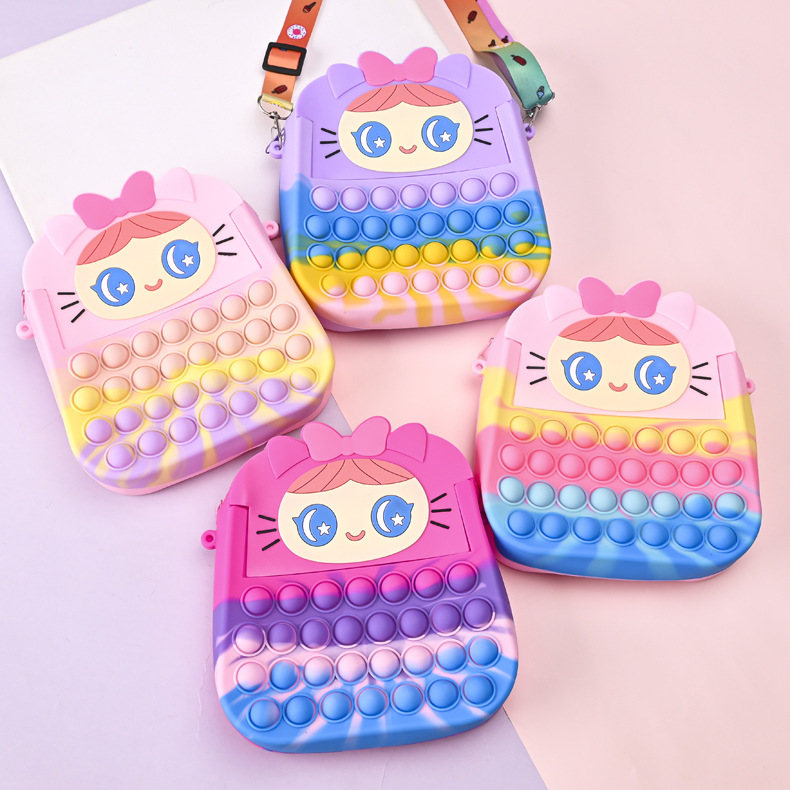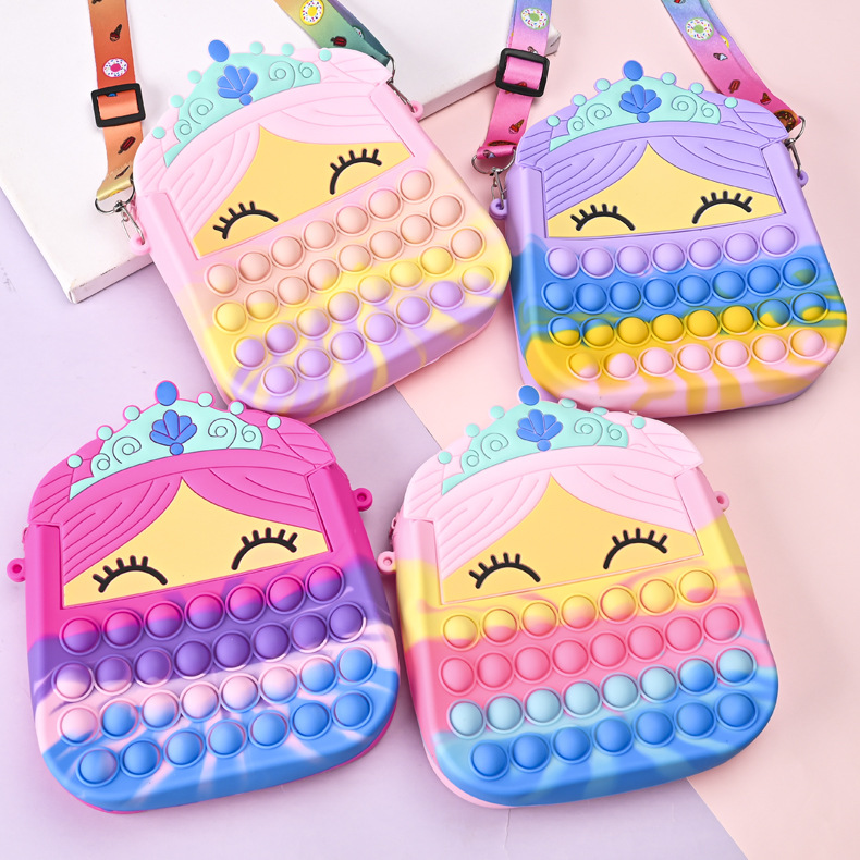 새로운 대형 설치류 제어 실리콘 가방 만화 공주 포인트 변경 저장 가방 어린이 어깨 크로스 바디 장난감 가방
