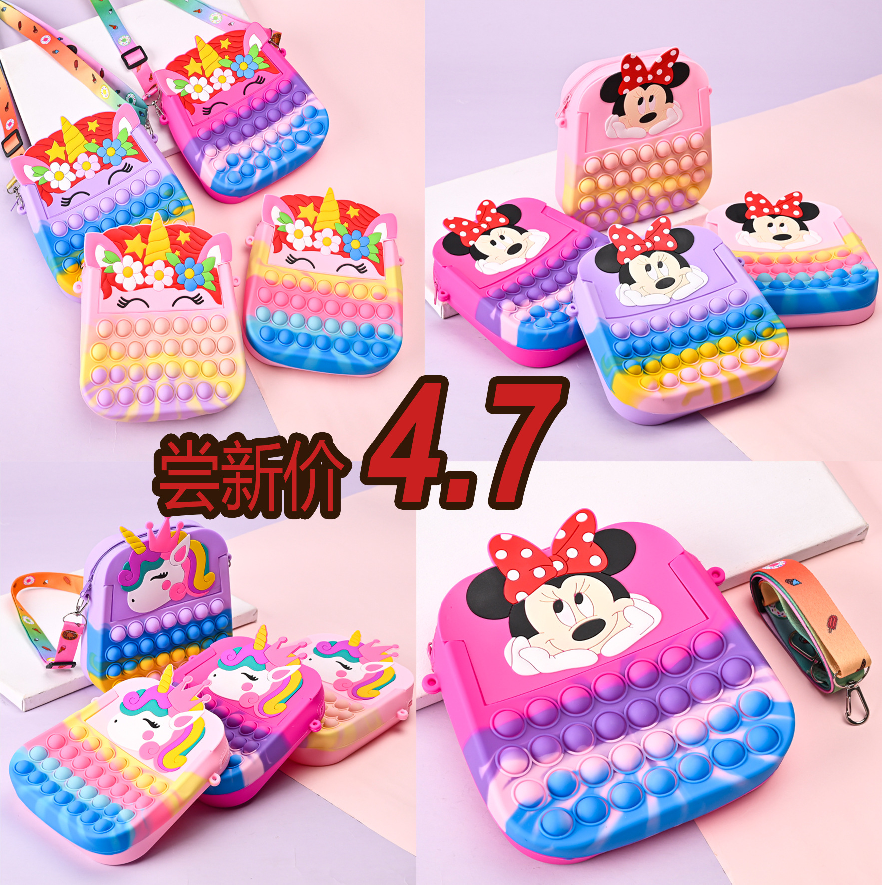 새로운 대형 설치류 제어 실리콘 가방 만화 공주 포인트 변경 저장 가방 어린이 어깨 크로스 바디 장난감 가방스토어 가기