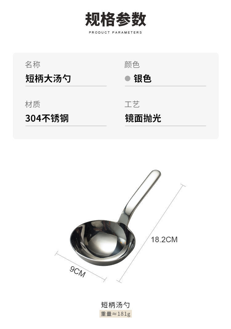 두꺼운 깊은 수프 쉘 짧은 손잡이 큰 둥근 머리 숟가락 마시는 수프 숟가락 먹는 국수 숟가락 껍질 304 스테인레스 스틸