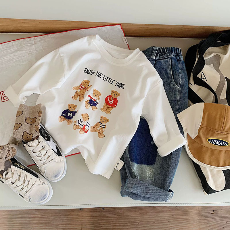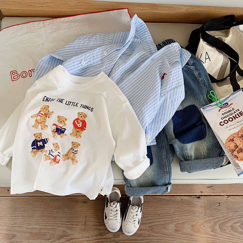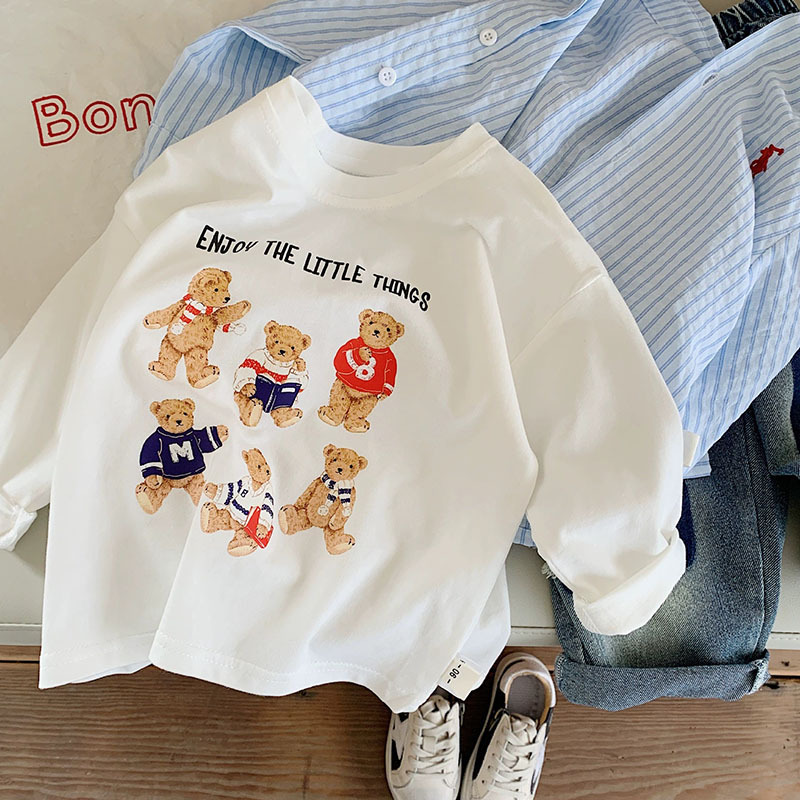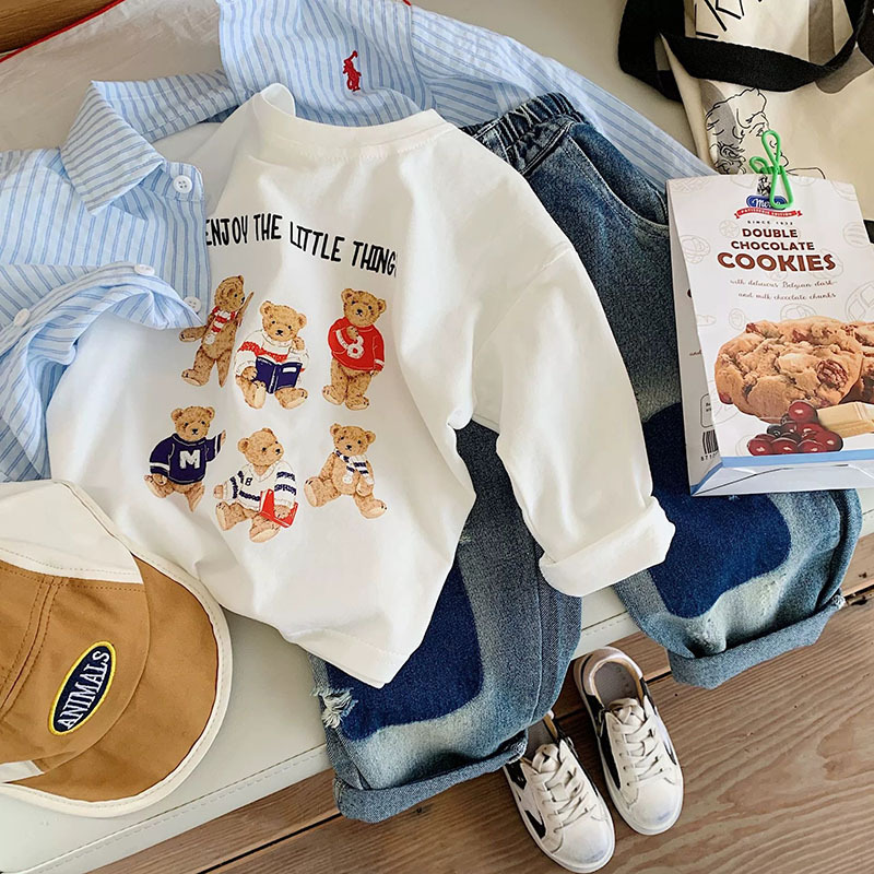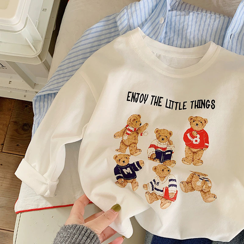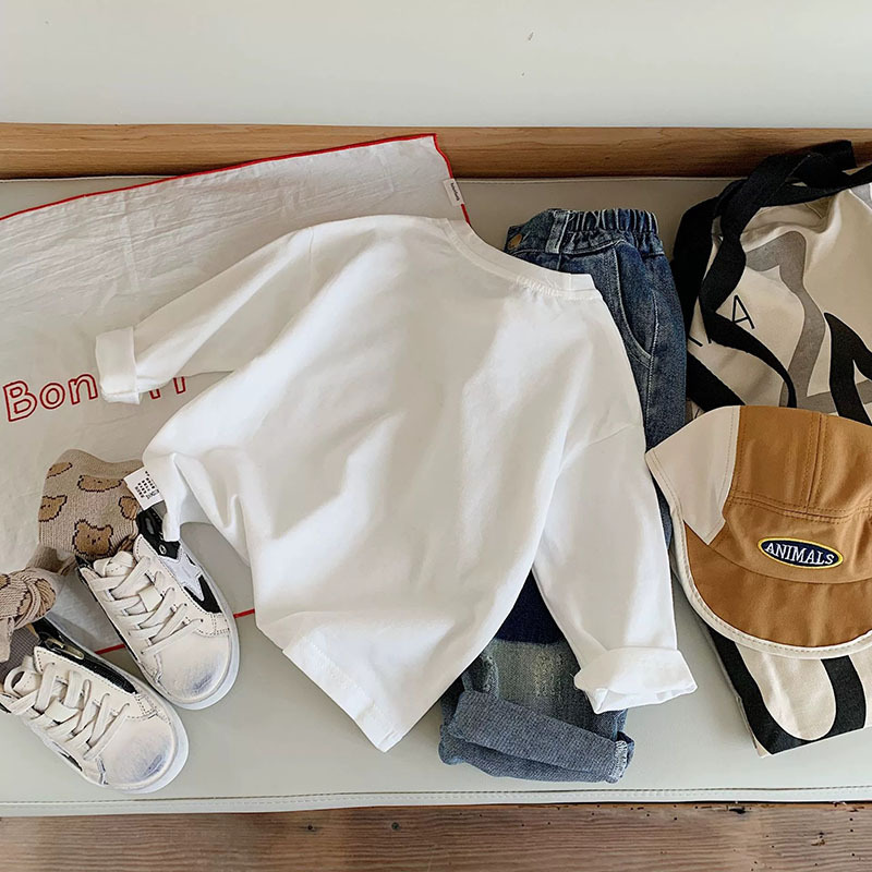 면 남성과 여성의 어린이 티셔츠 긴 소매 2023 새로운 귀여운 만화 애니메이션 아동복 기본 탑 봄과 가을스토어 가기