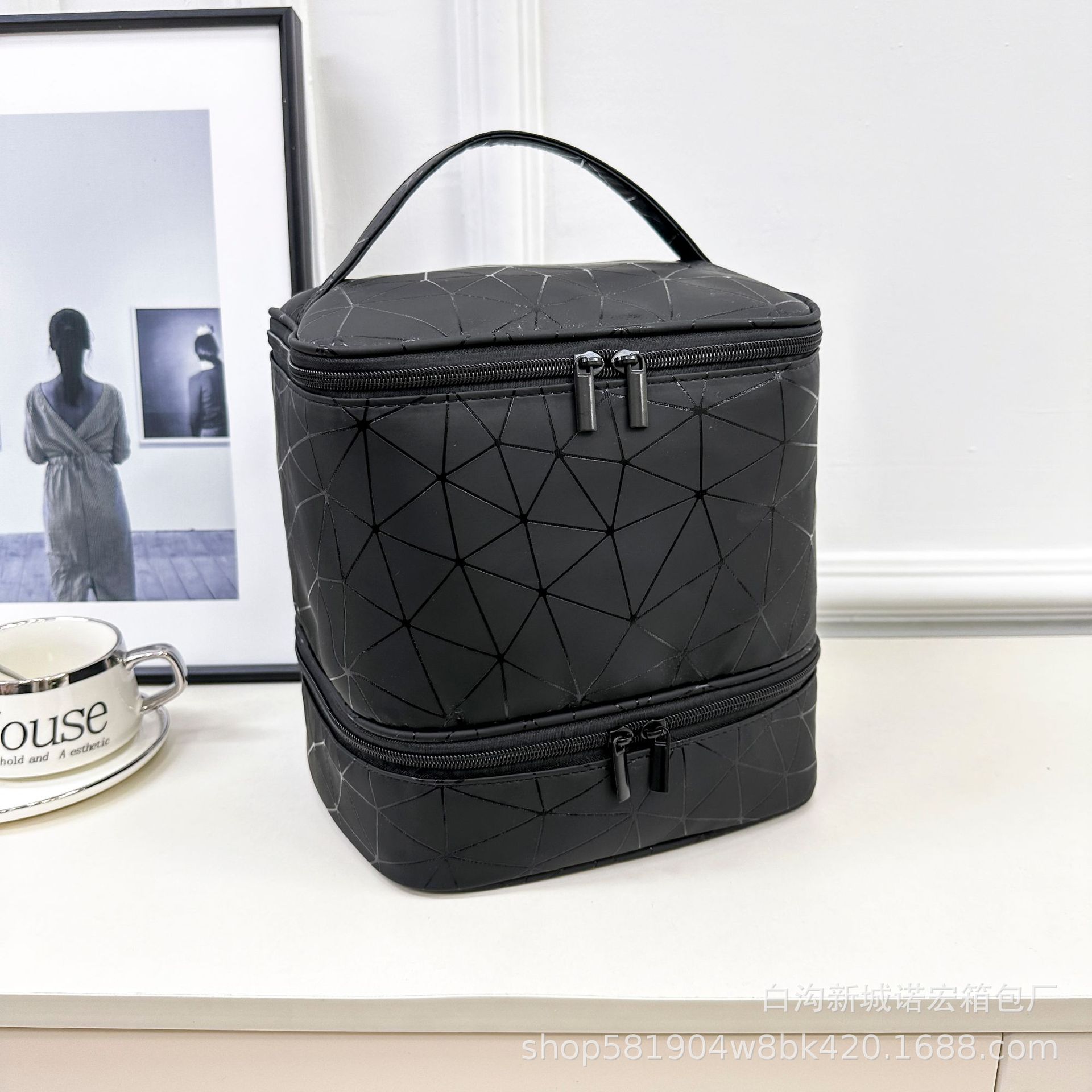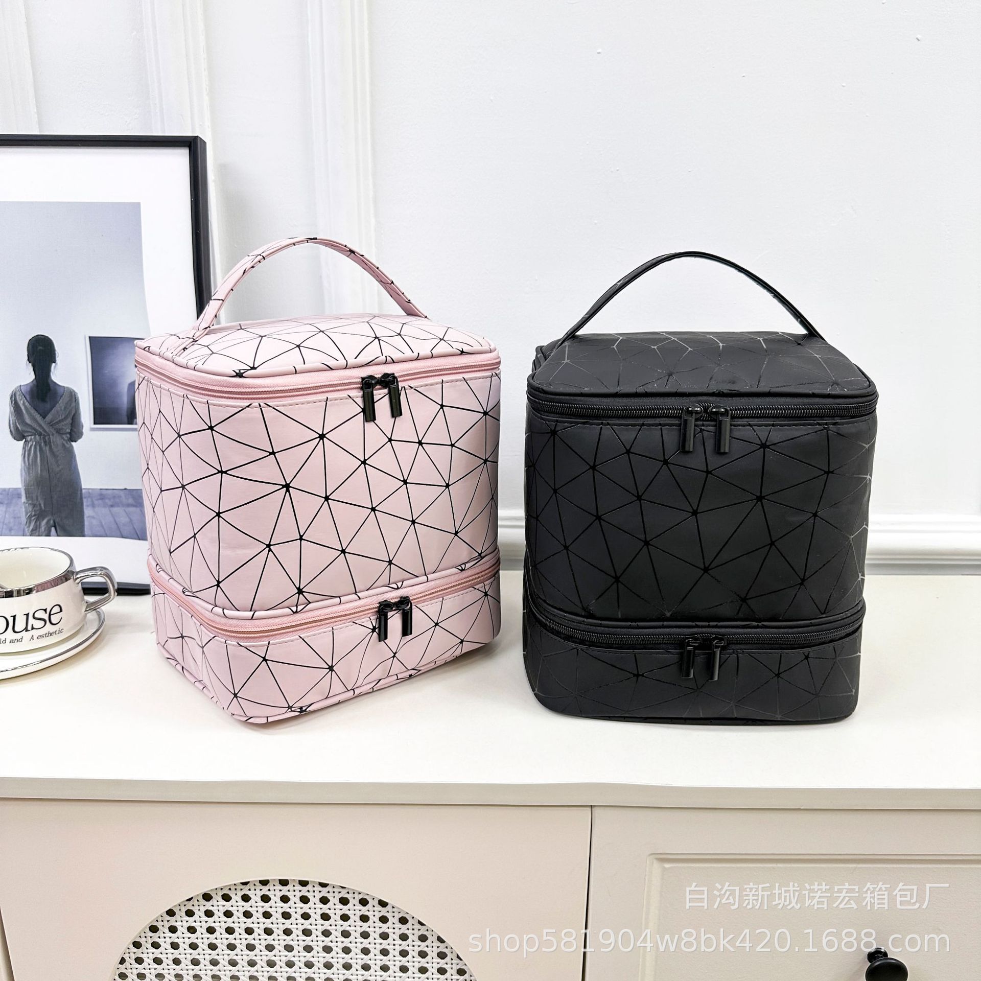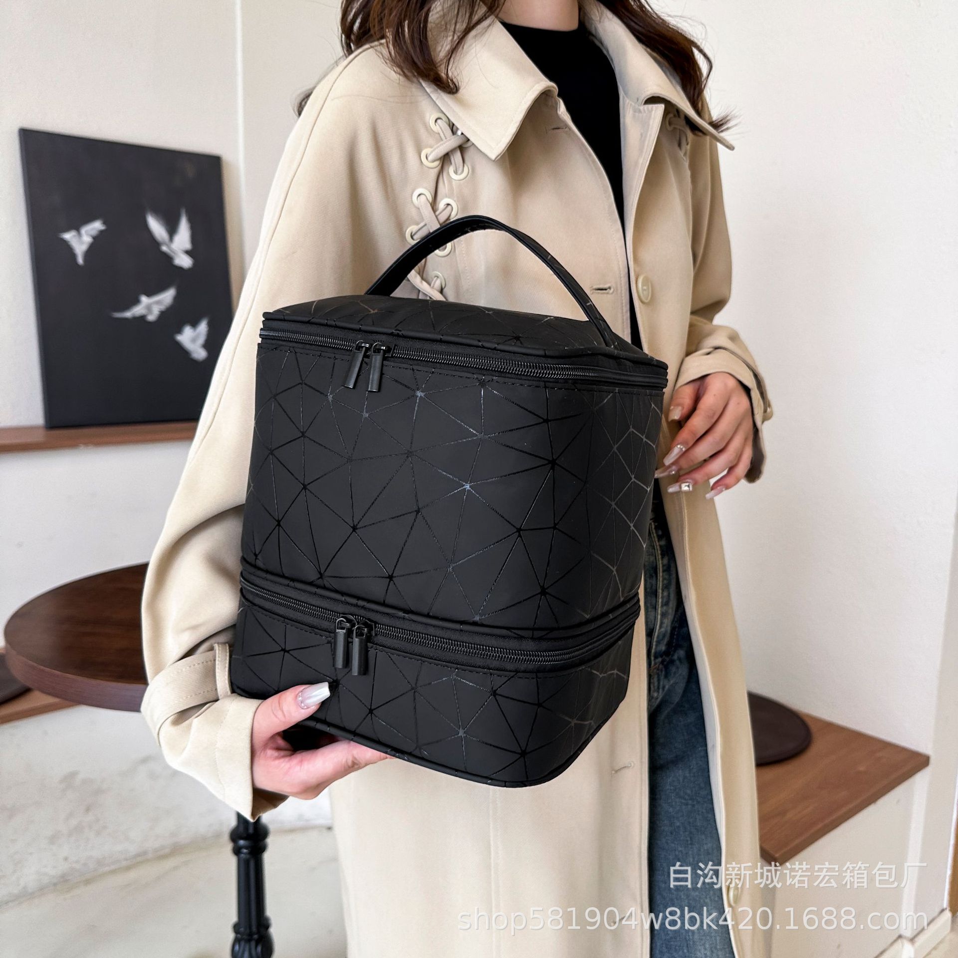 대용량 네일아트 수납 가방, 휴대용 여성용 네일아트 가방, 화장품 가방, 마름모 디자인