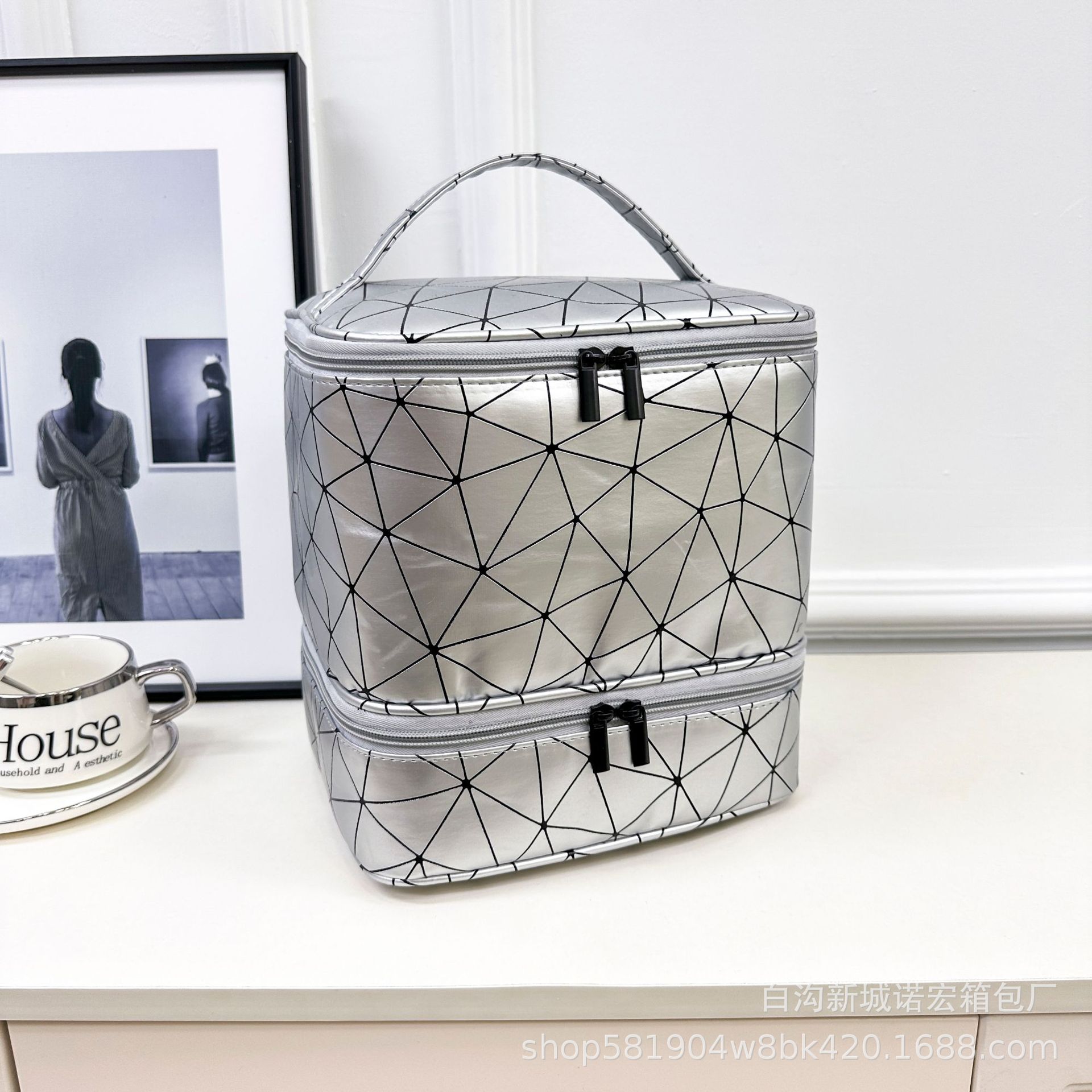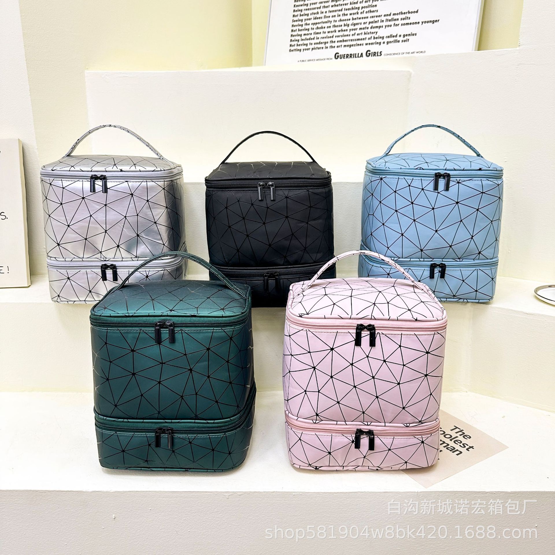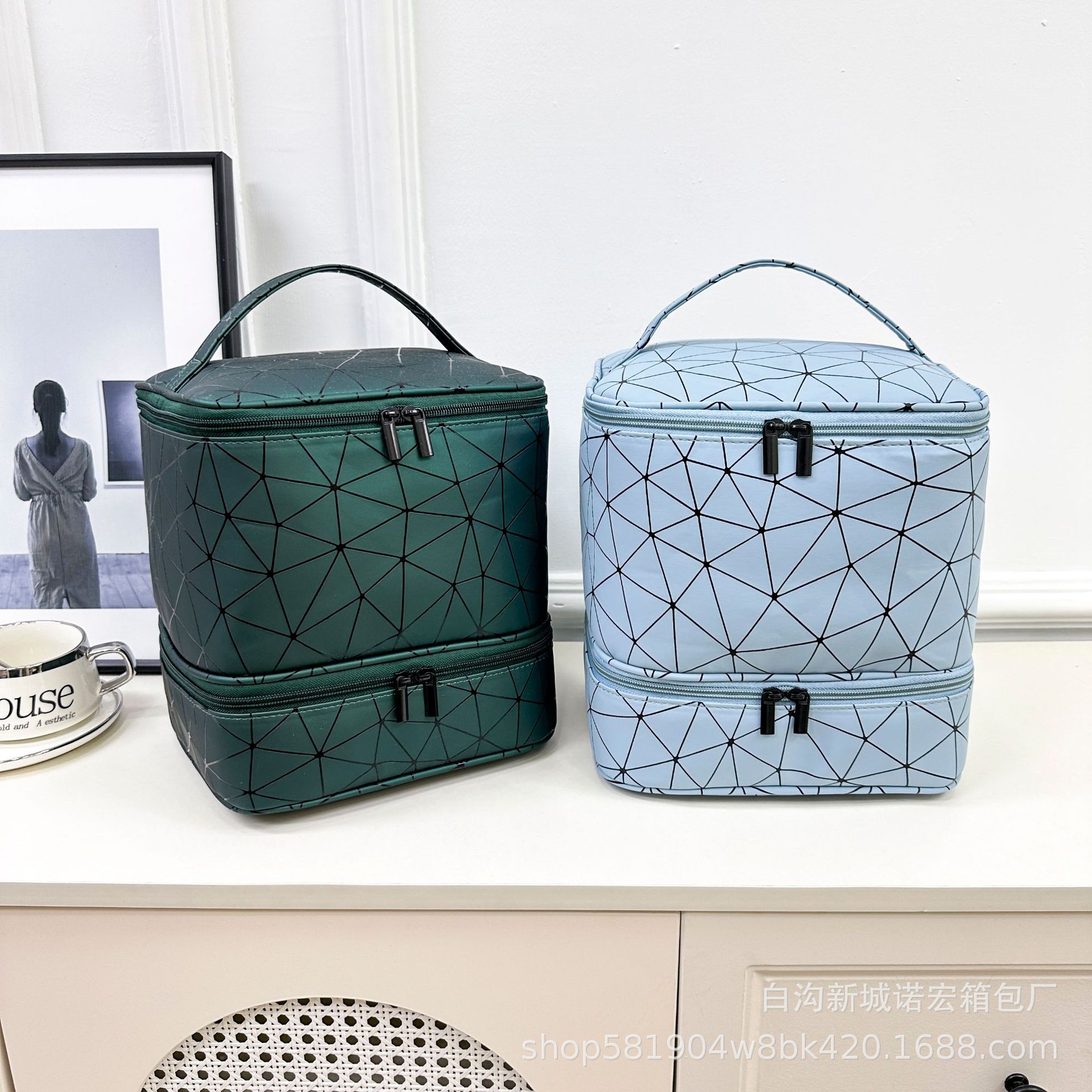 대용량 네일아트 수납 가방, 휴대용 여성용 네일아트 가방, 화장품 가방, 마름모 디자인