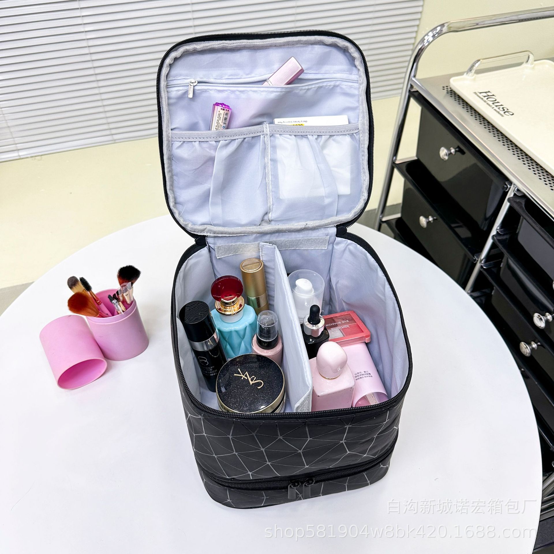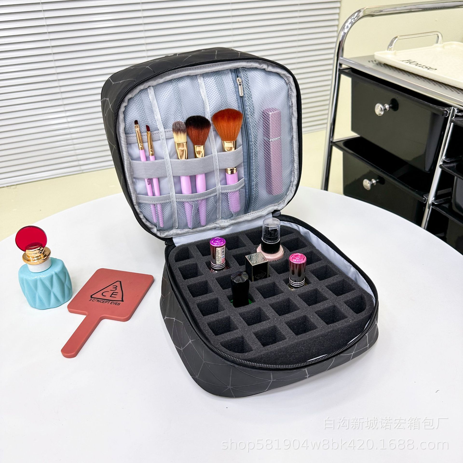 대용량 네일아트 수납 가방, 휴대용 여성용 네일아트 가방, 화장품 가방, 마름모 디자인스토어 가기