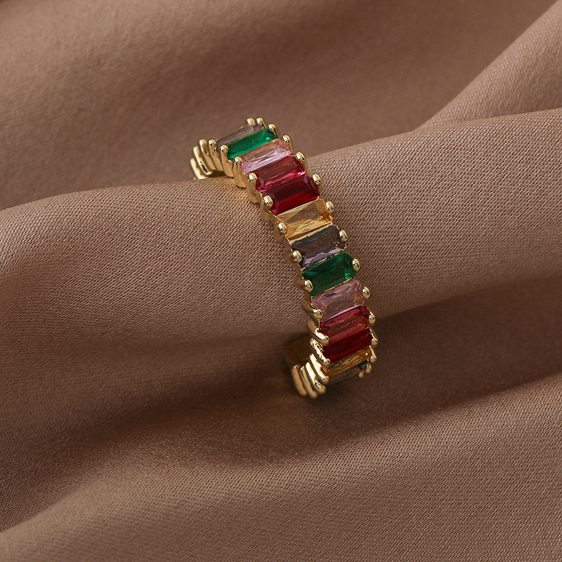 마이크로 상감 컬러 지르콘 링 유럽과 미국 패션 레트로 럭셔리 골드 메탈 스택 오픈 핑거 링 팔찌