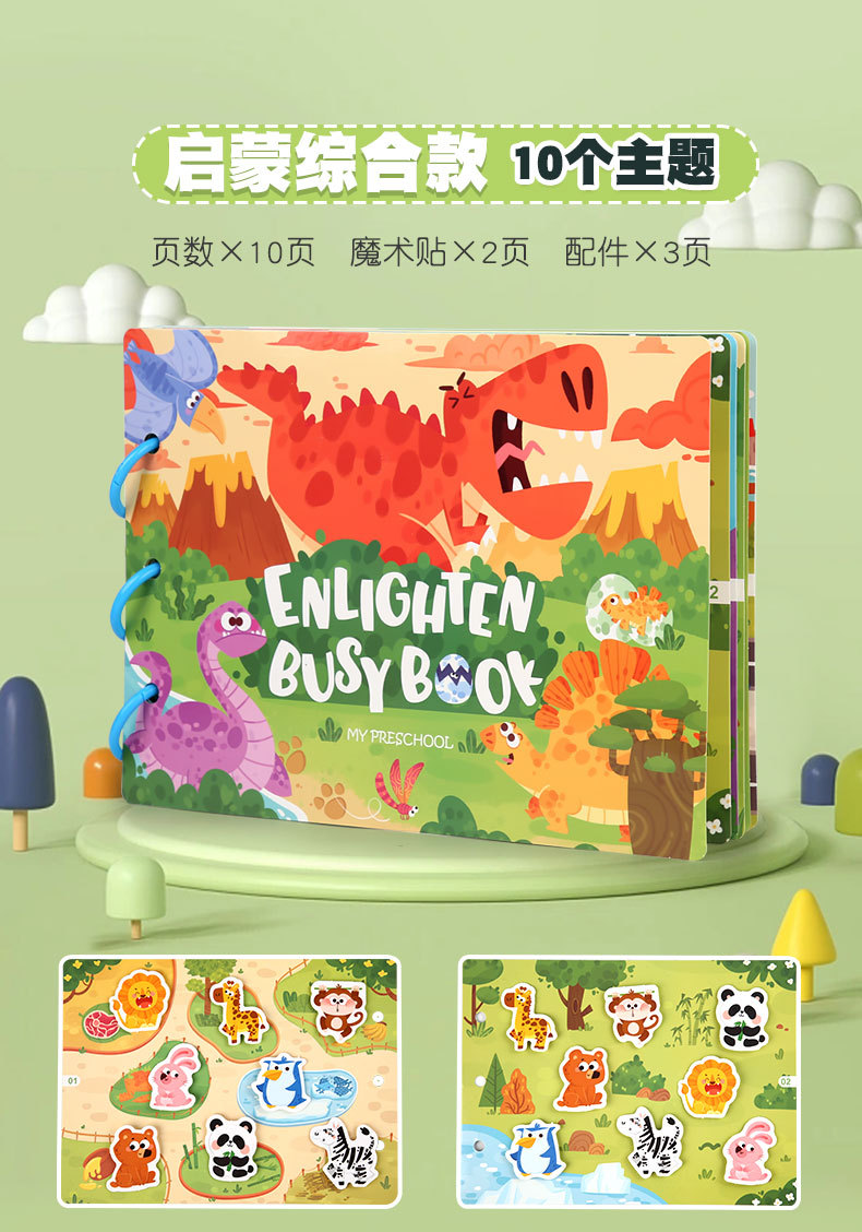계몽 조기 교육 공룡 동물 조용한 busybook 어린이 바쁜 책 교육 완구 반복 붙여 넣기 책 도매