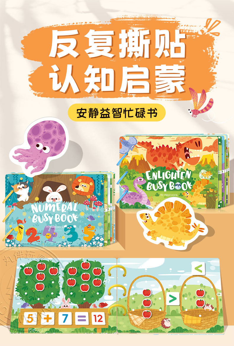 계몽 조기 교육 공룡 동물 조용한 busybook 어린이 바쁜 책 교육 완구 반복 붙여 넣기 책 도매스토어 가기