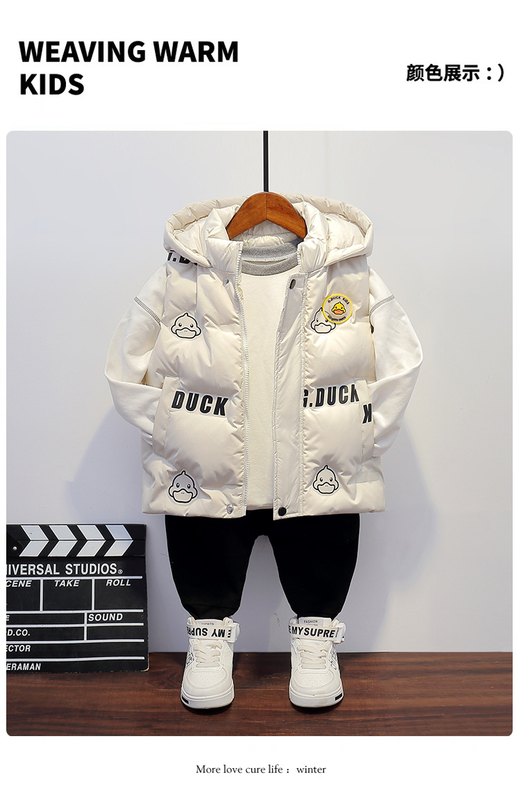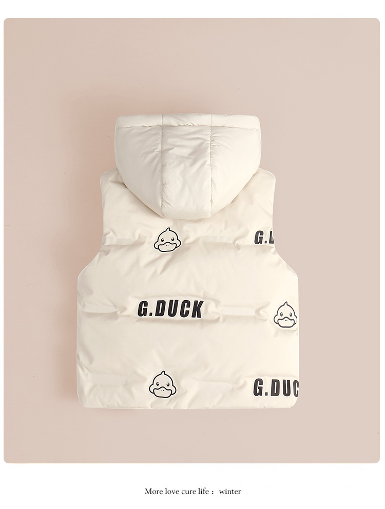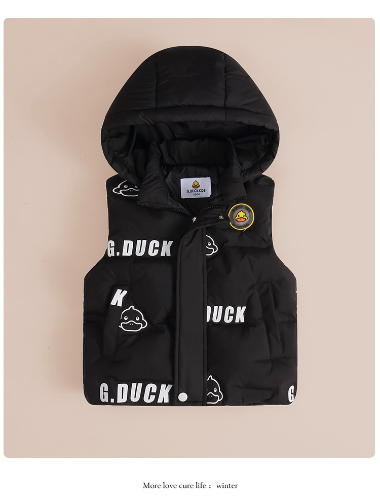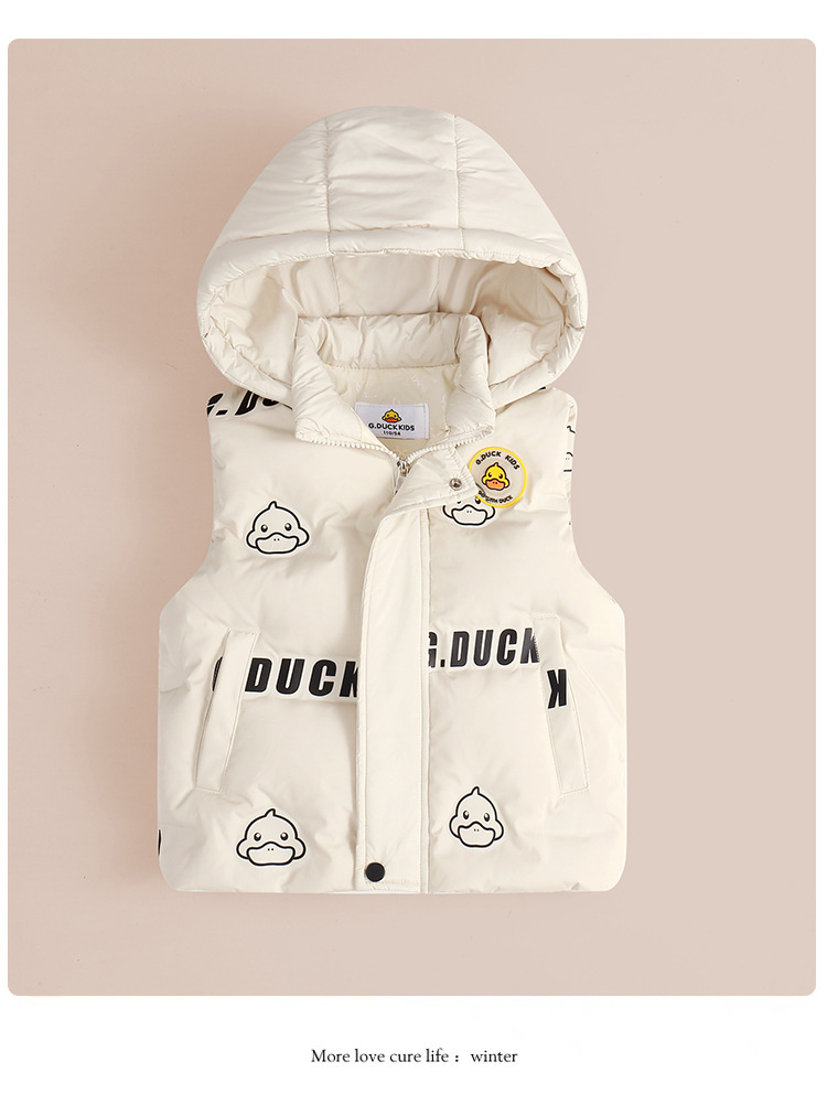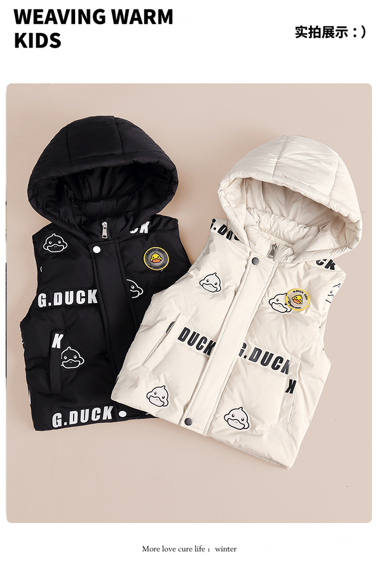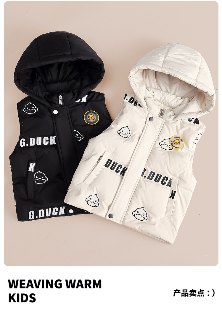 작은 노란 오리 아동복 소년과 소녀 후드 다운 조끼 가을과 겨울 아기 따뜻한 착용 어린이 아기 말 클립 조수
