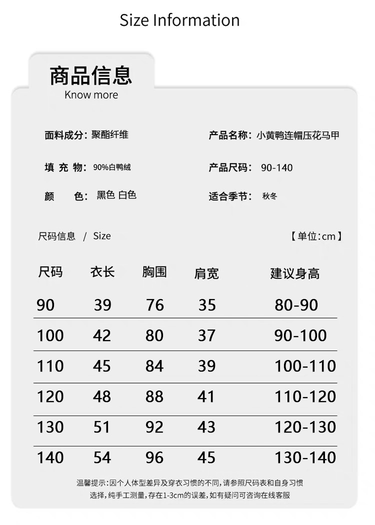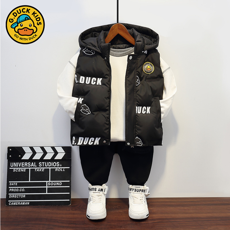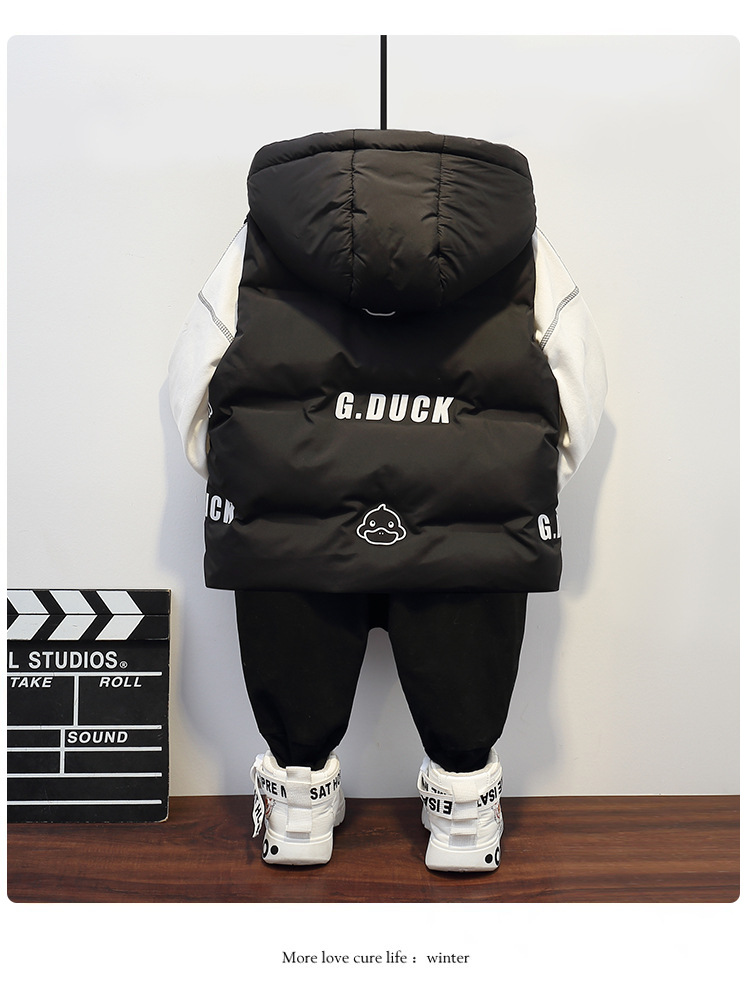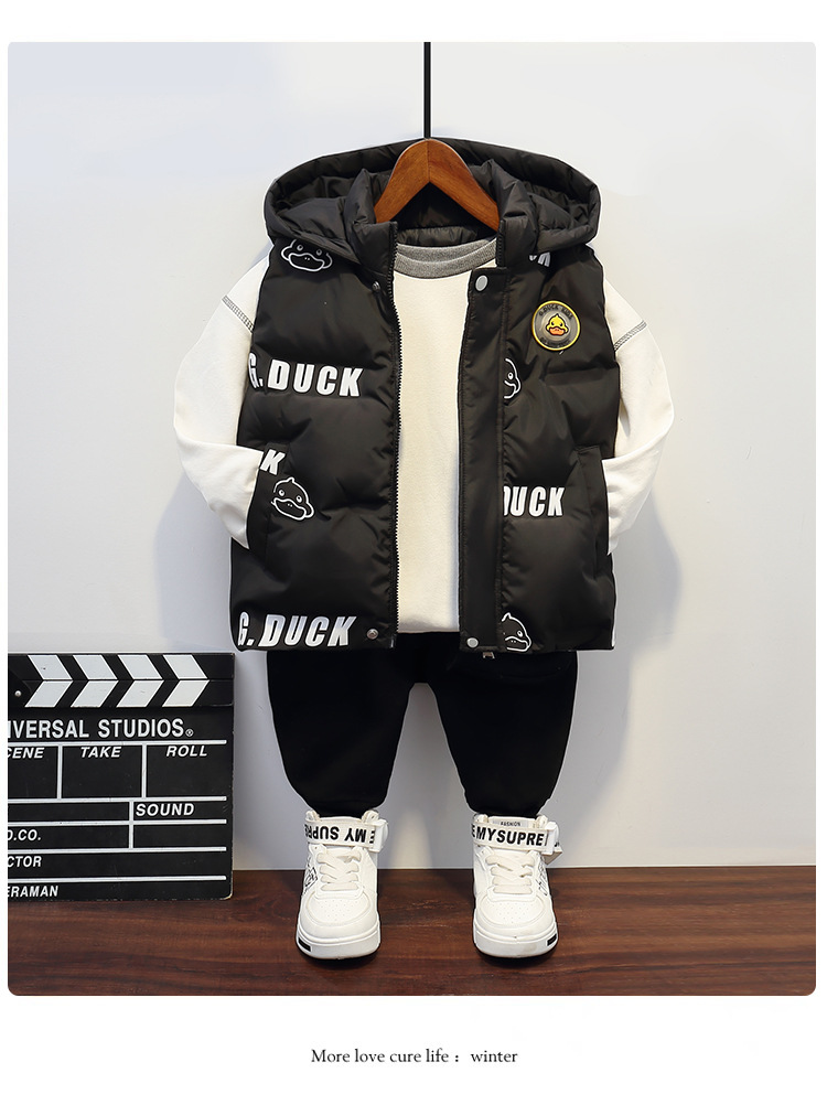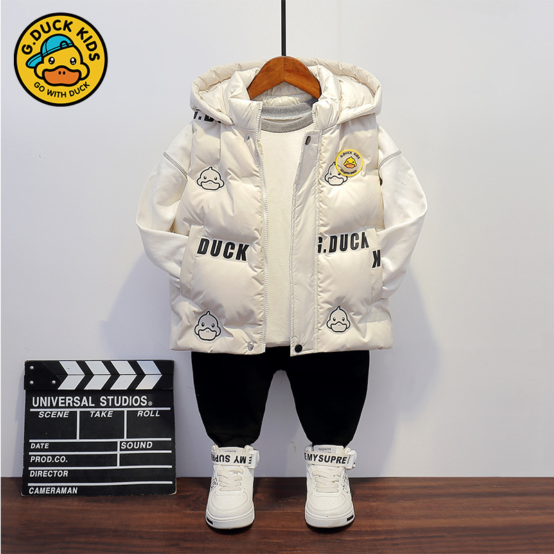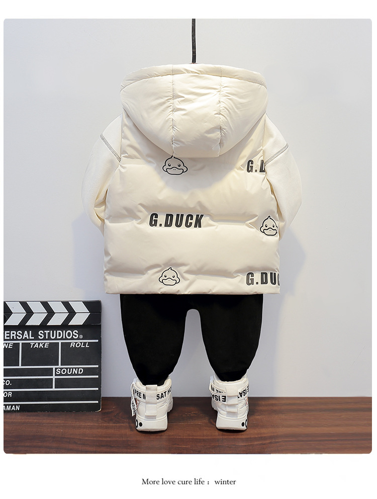 작은 노란 오리 아동복 소년과 소녀 후드 다운 조끼 가을과 겨울 아기 따뜻한 착용 어린이 아기 말 클립 조수