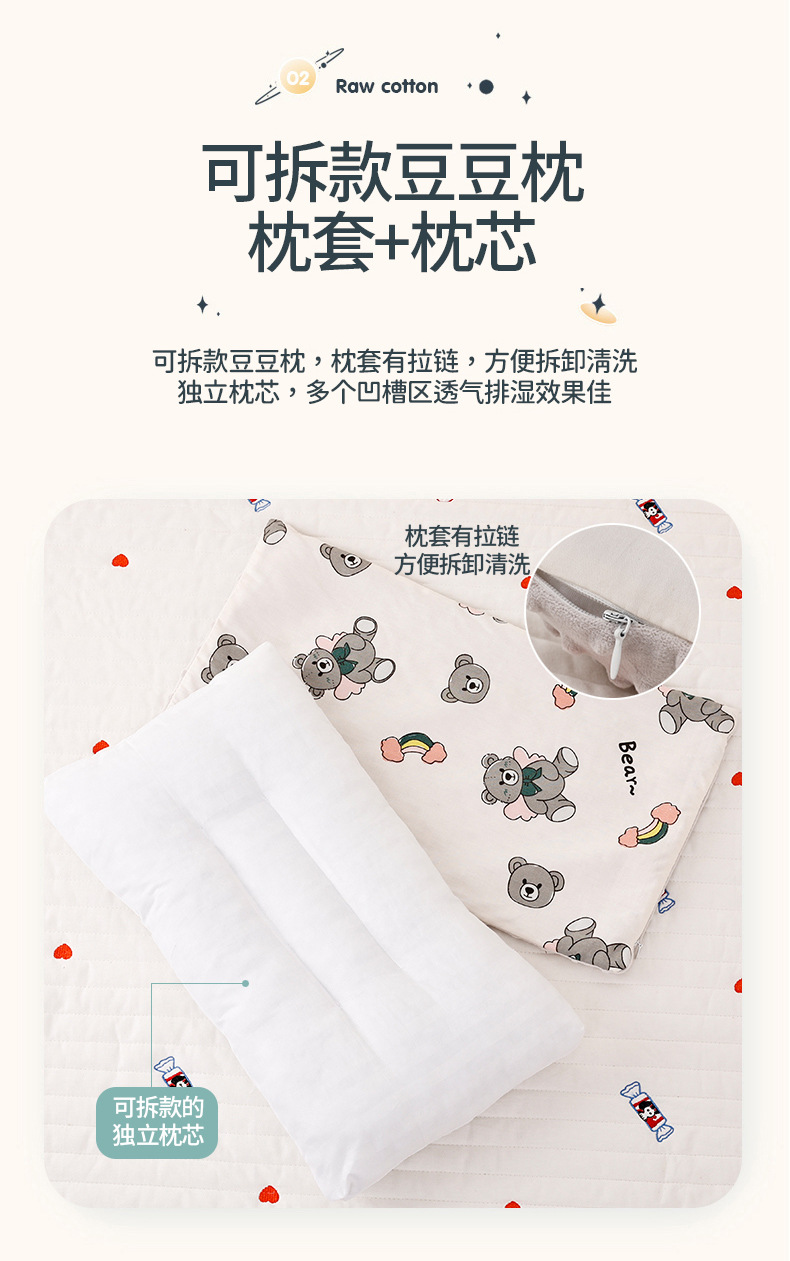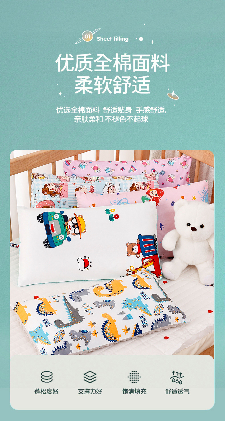 이동식 및 빨 어린이 만화 면 베개 아기 진정 콩 벨벳 수면 베개 유치원 낮잠 빨