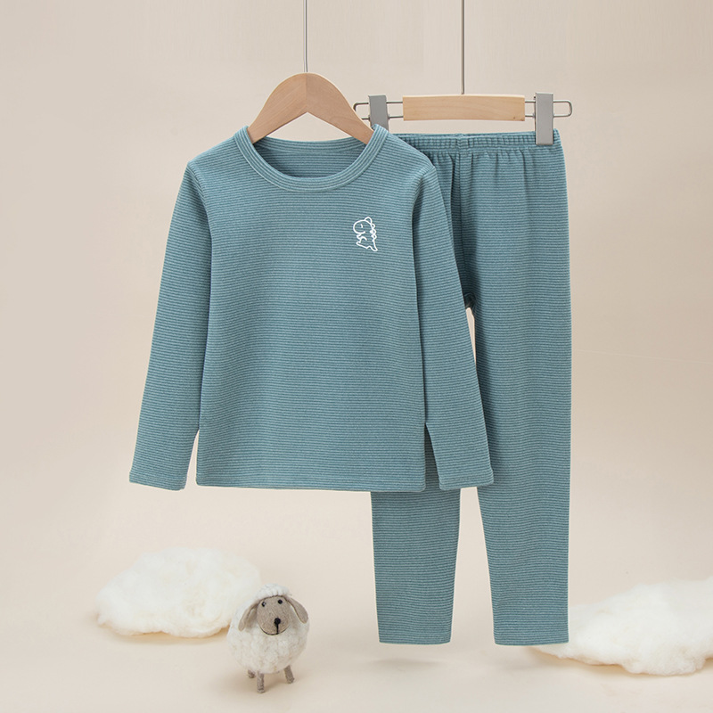 가을과 겨울 새로운 소년과 소녀 양면 브러시 벨벳 가을 바지 반 목 잠옷 세트 어린이 열 속옷스토어 가기