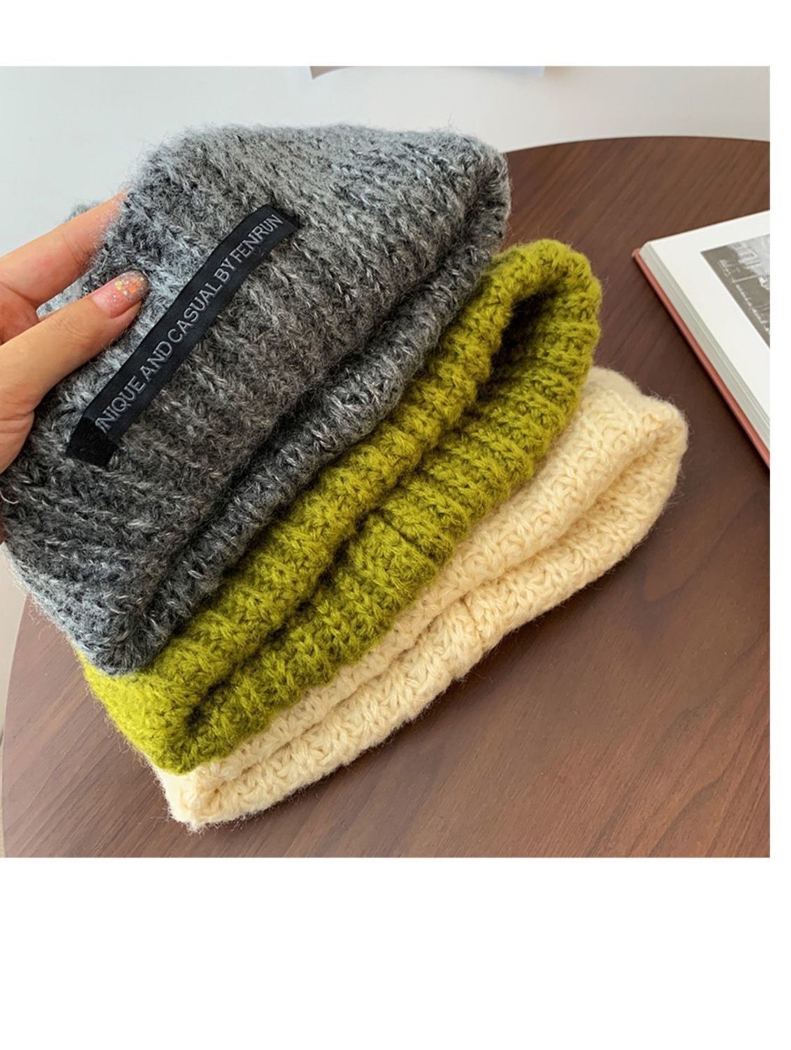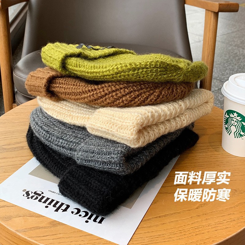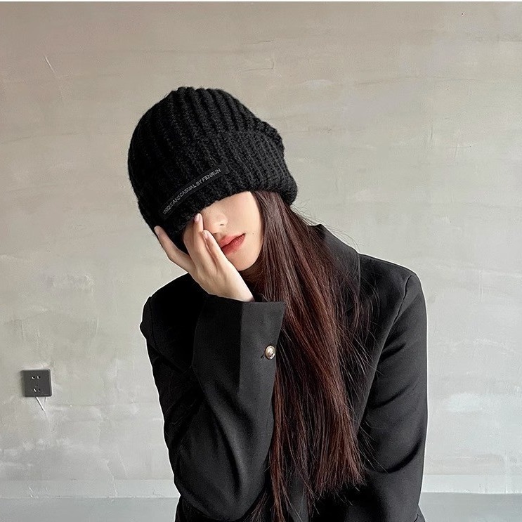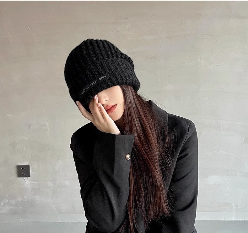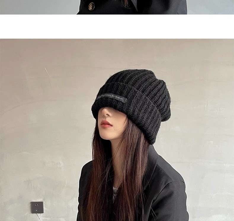 남성용 큰 머리 둘레 모직 모자, 겨울 방한 및 보온 니트 모자, 다용도 바오터우 방한 모자, 여성용 파일 모자, 얼굴을 더 작아 보이게 해줍니다.
