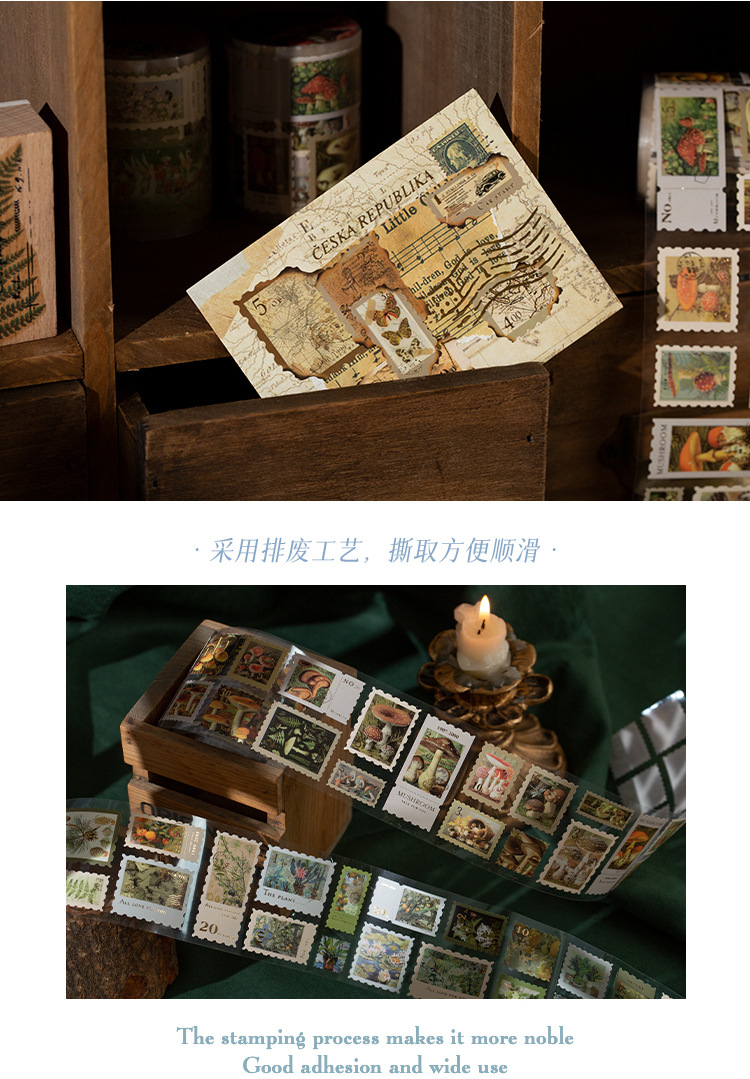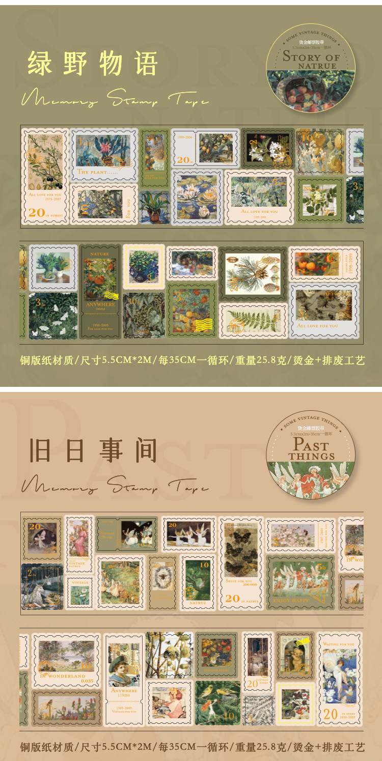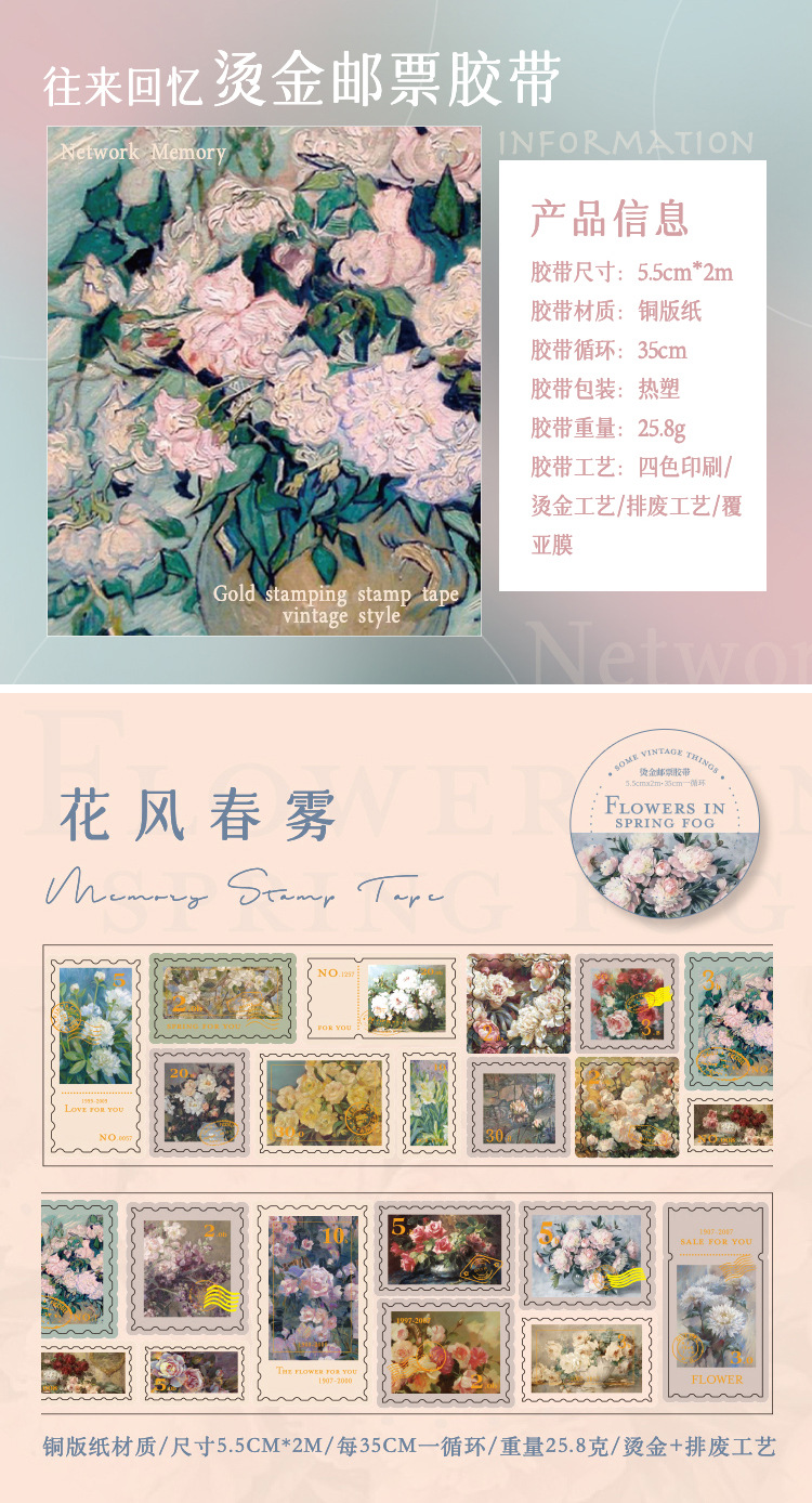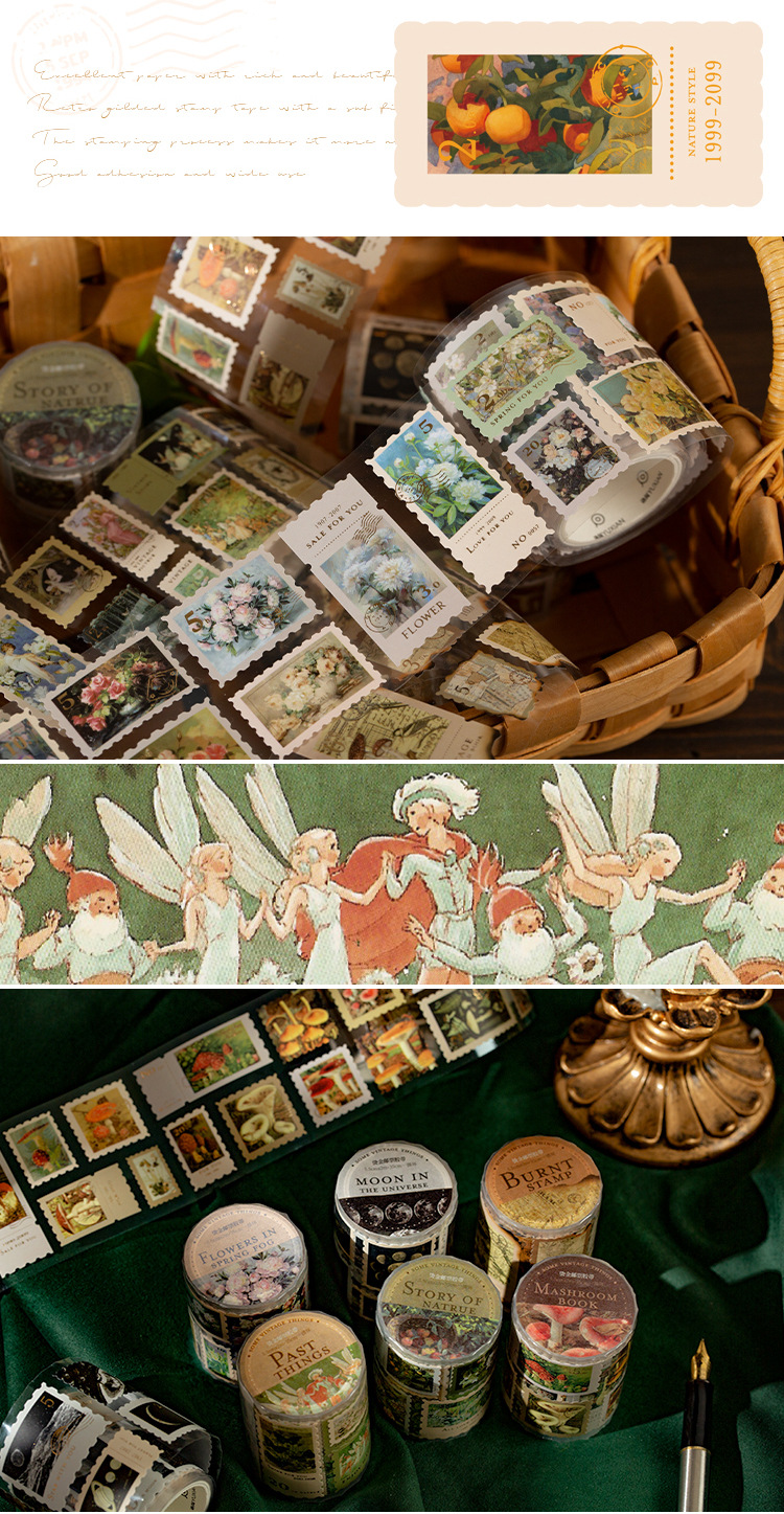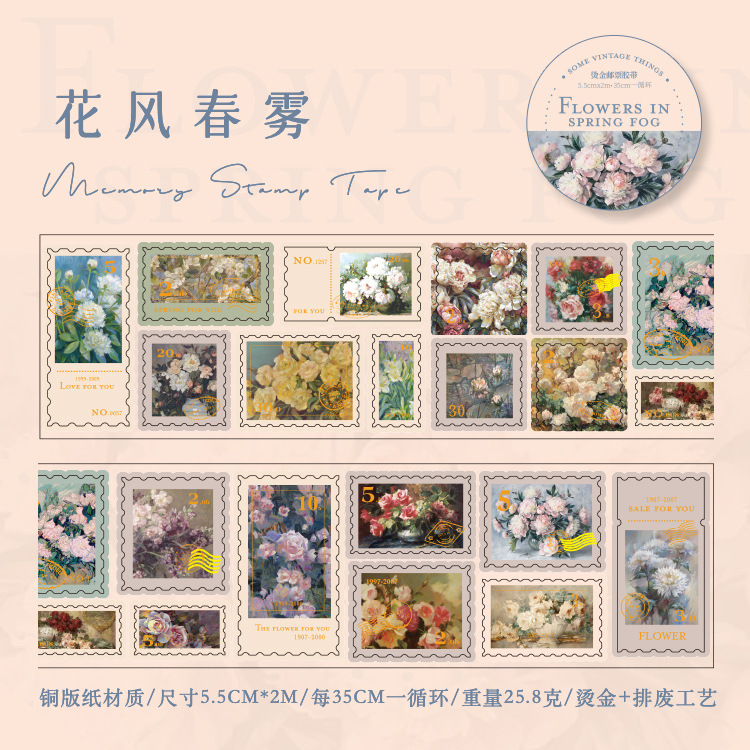회상 청동 스탬프 테이프 레트로 꽃 일러스트 핸드북 DIY 장식 콜라주 소재 씰링 스티커스토어 가기