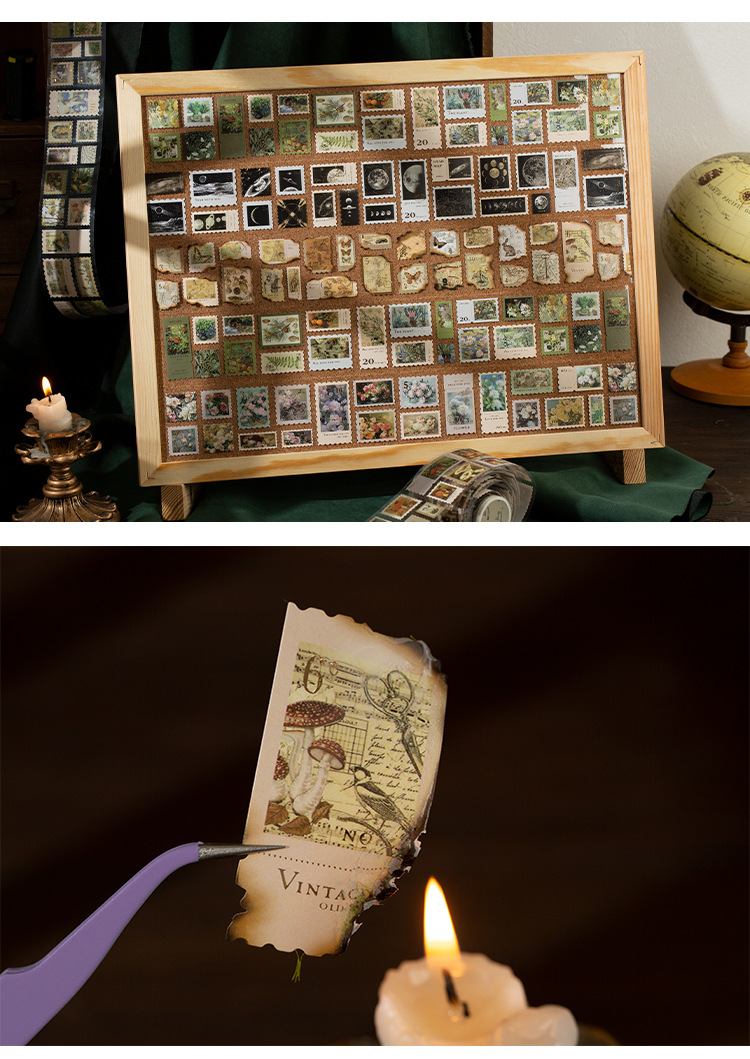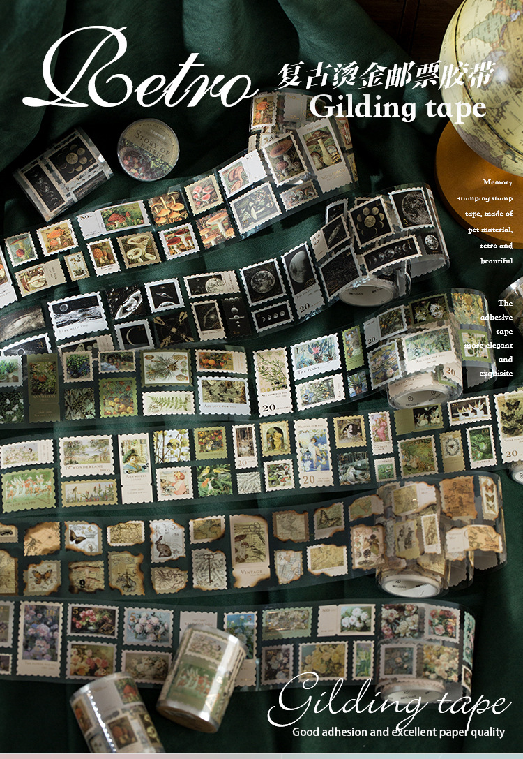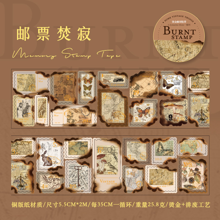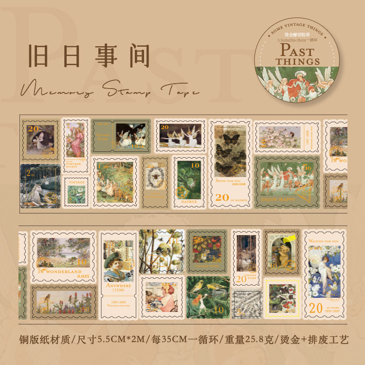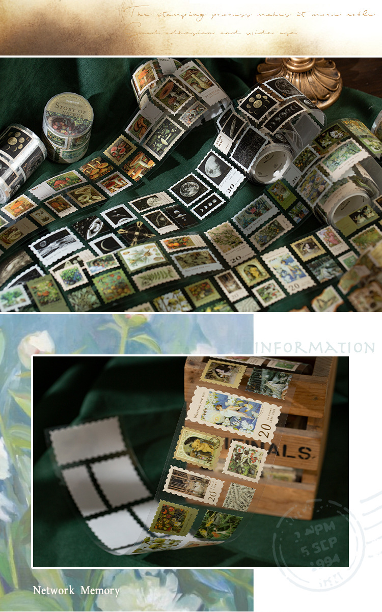 회상 청동 스탬프 테이프 레트로 꽃 일러스트 핸드북 DIY 장식 콜라주 소재 씰링 스티커