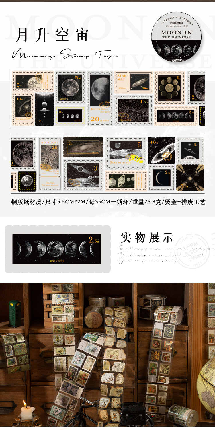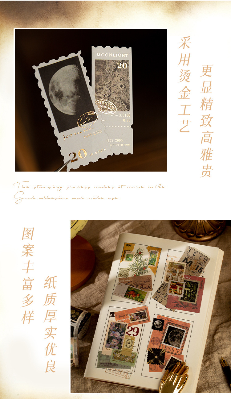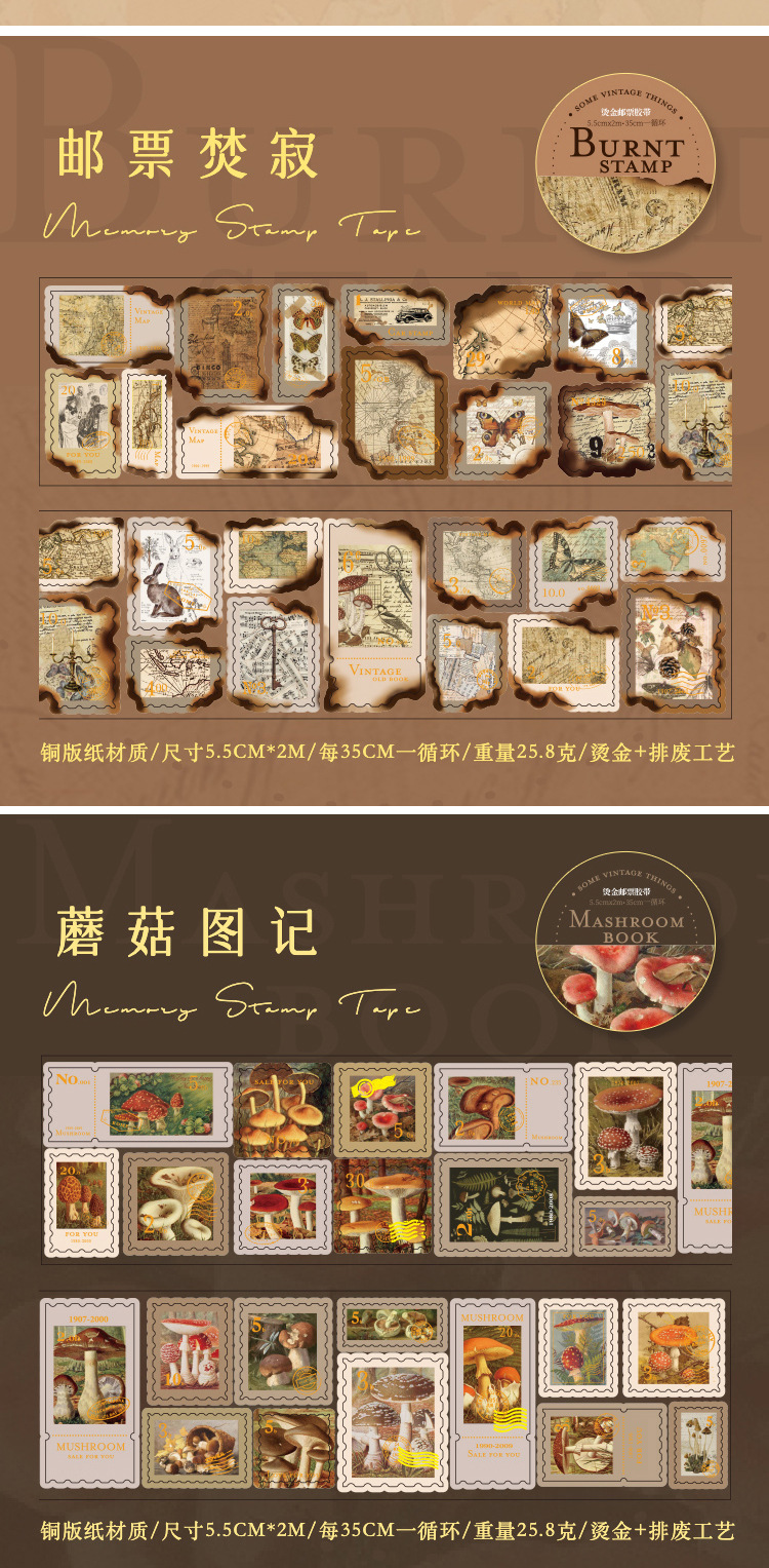 회상 청동 스탬프 테이프 레트로 꽃 일러스트 핸드북 DIY 장식 콜라주 소재 씰링 스티커