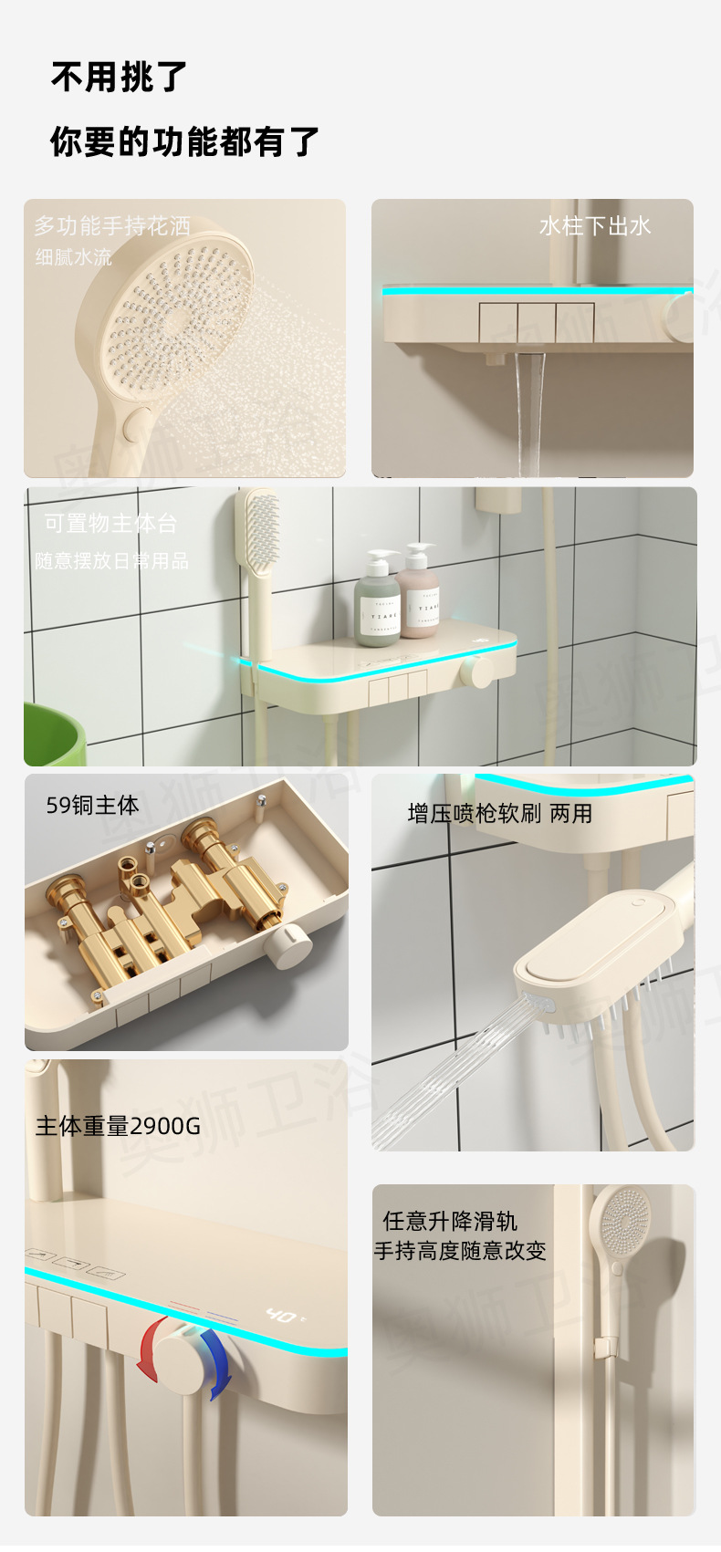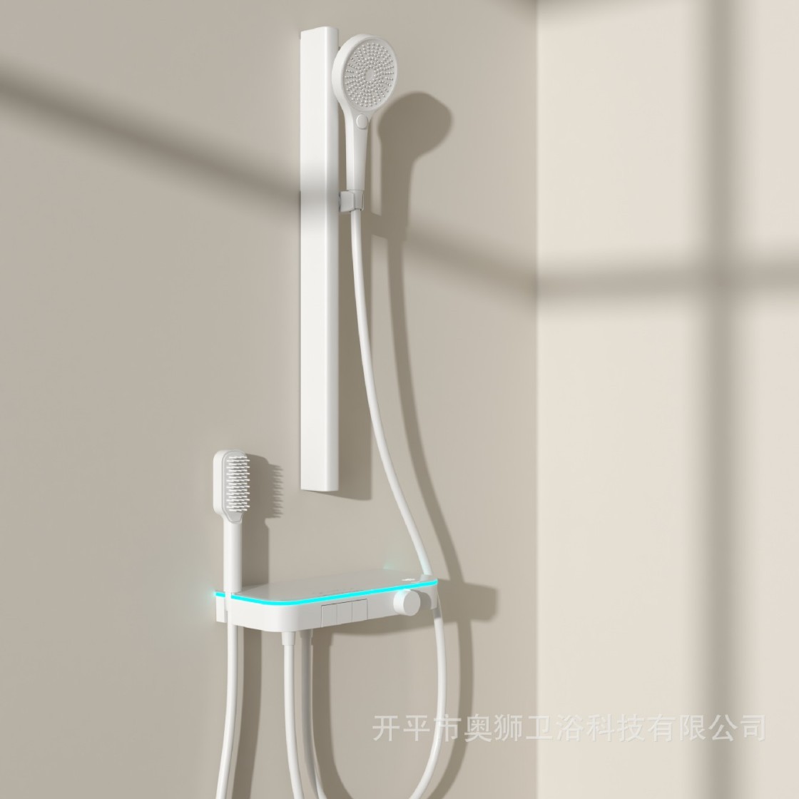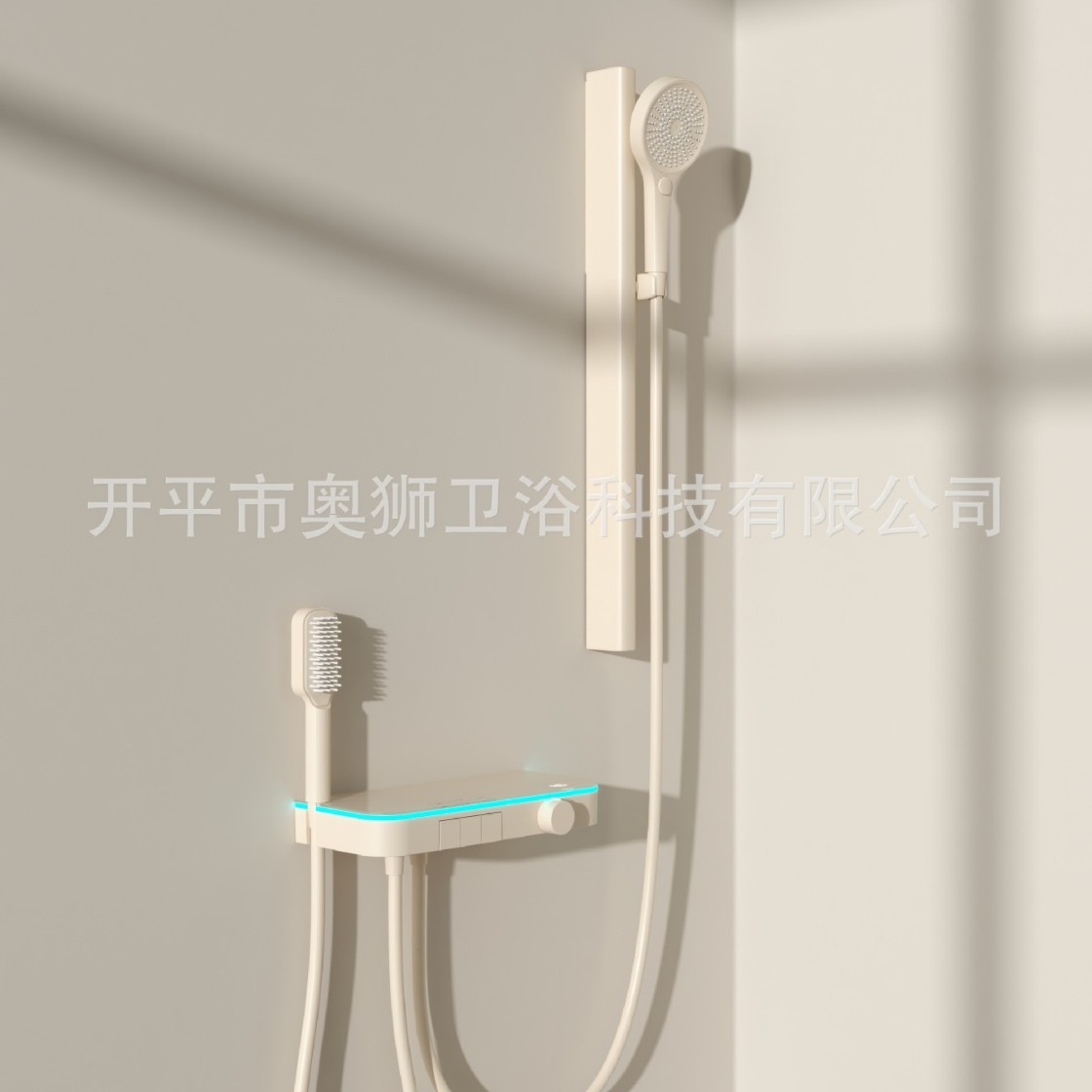 작은 아파트 우유 흰색 분할 형 구리 저장 샤워 세트 간단한 디지털 디스플레이 없음 탑 스프레이 가압 온도 조절 샤워