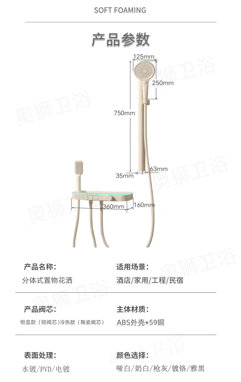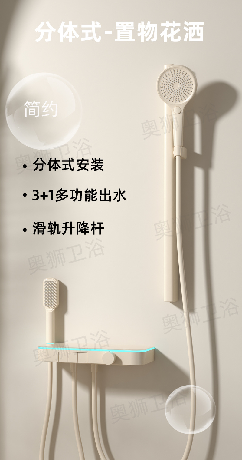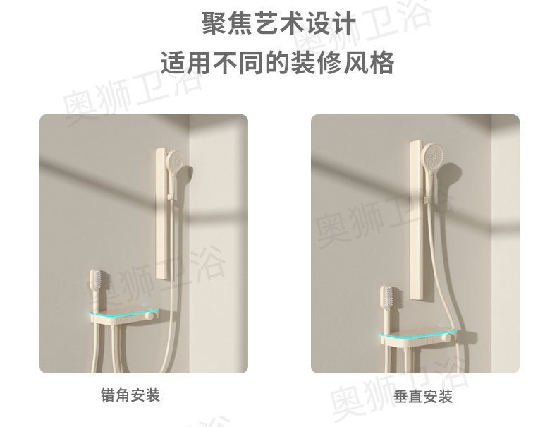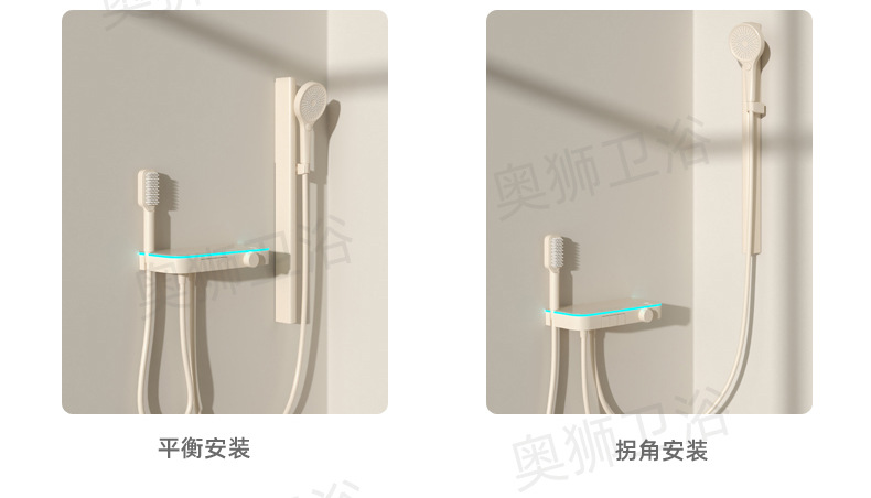 작은 아파트 우유 흰색 분할 형 구리 저장 샤워 세트 간단한 디지털 디스플레이 없음 탑 스프레이 가압 온도 조절 샤워