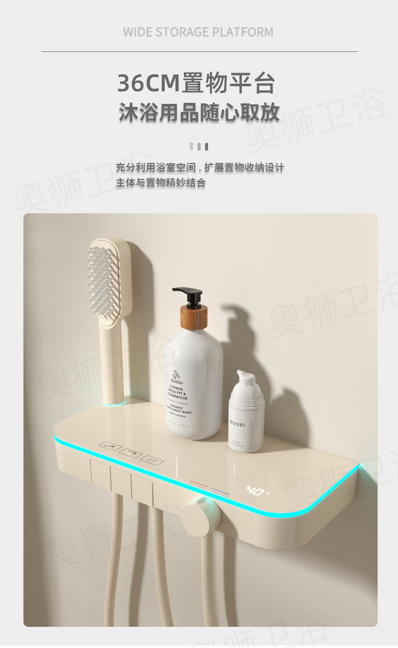 작은 아파트 우유 흰색 분할 형 구리 저장 샤워 세트 간단한 디지털 디스플레이 없음 탑 스프레이 가압 온도 조절 샤워스토어 가기