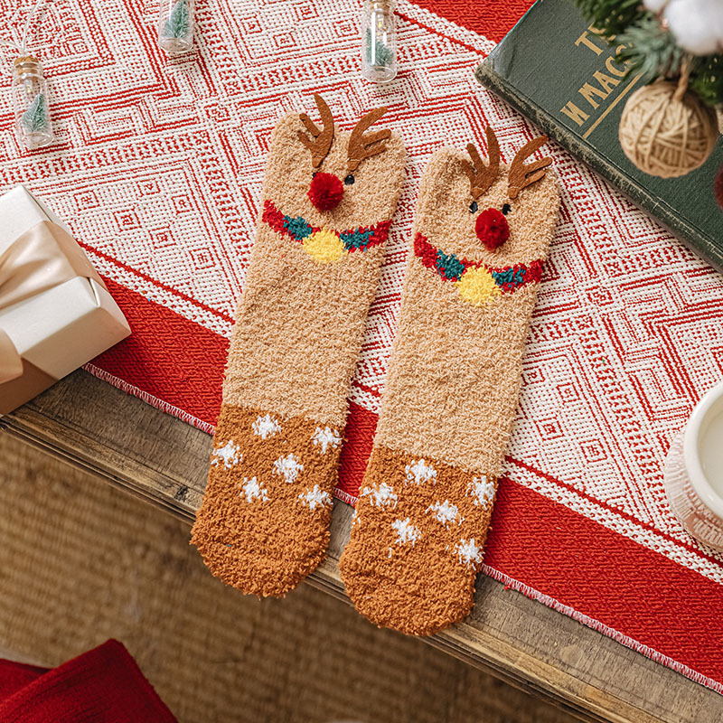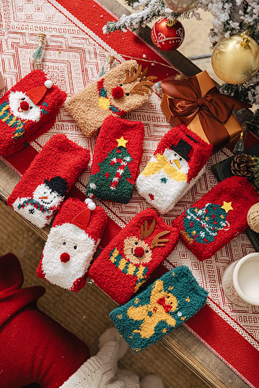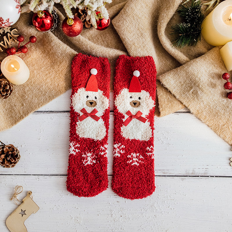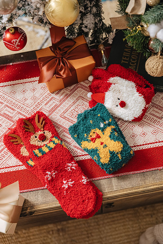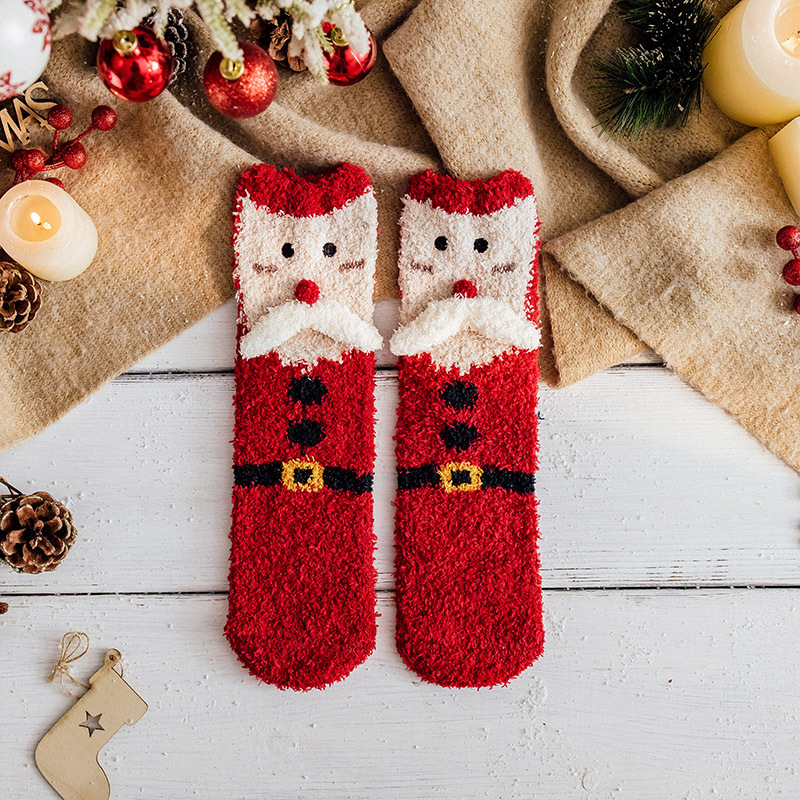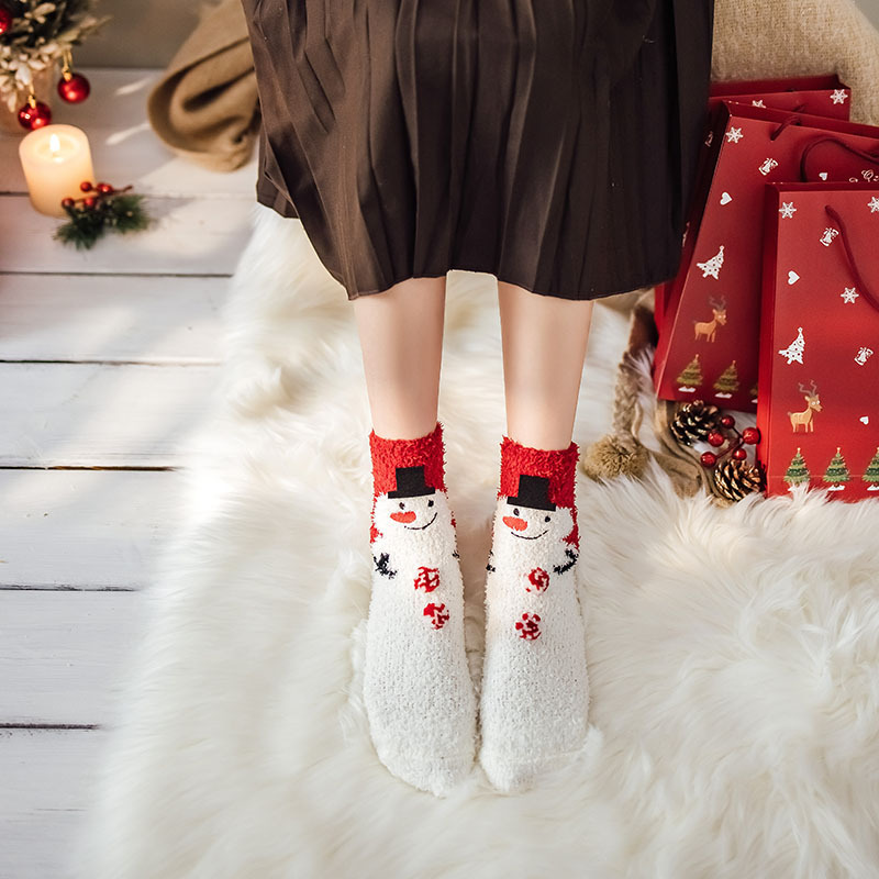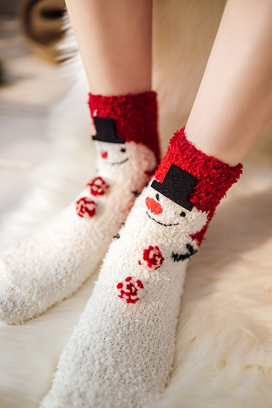 가을과 겨울 새 양말 여성용 두꺼운 산호 양털 크리스마스 양말 여성용 바닥 양말 입체 만화 수면 양말