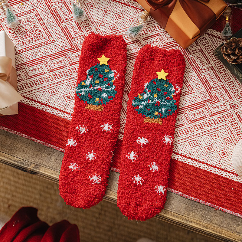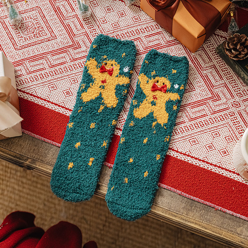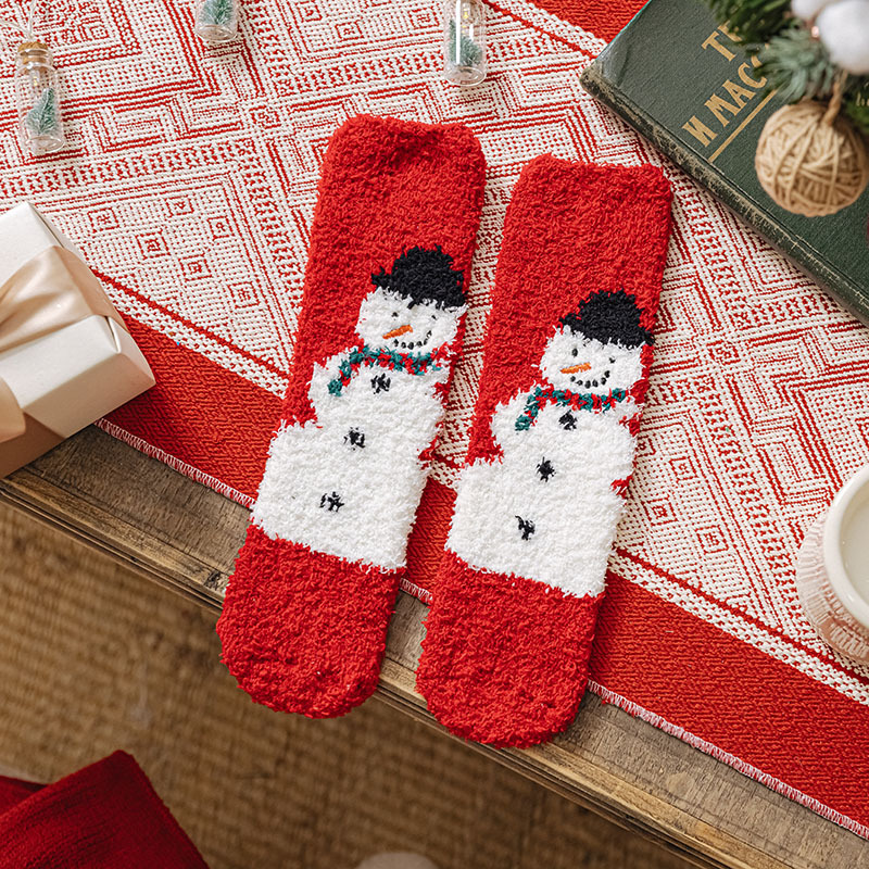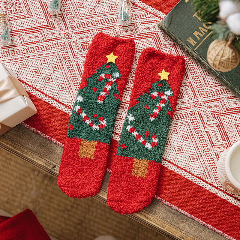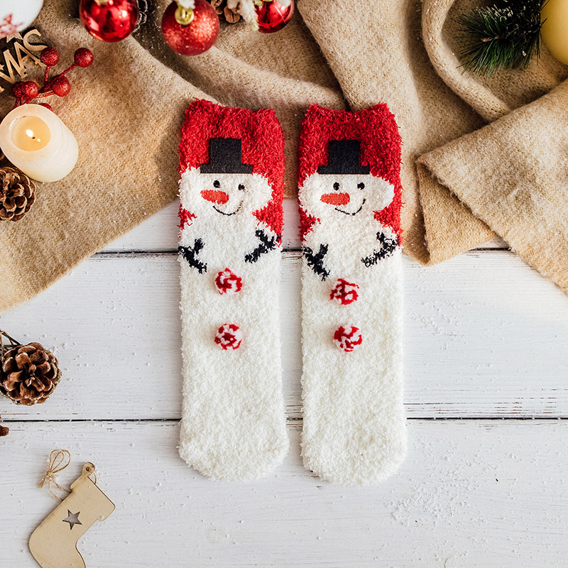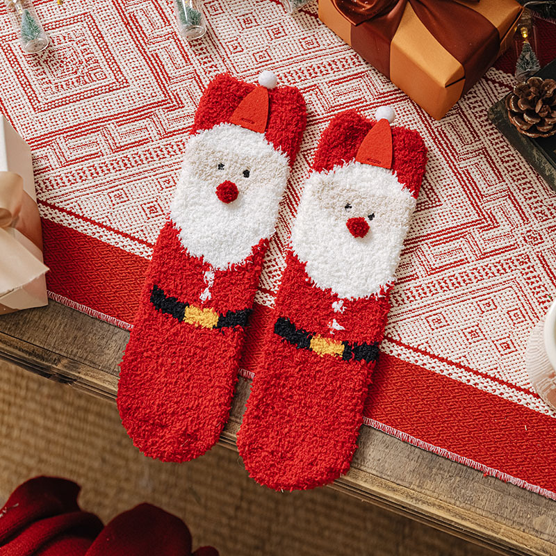 가을과 겨울 새 양말 여성용 두꺼운 산호 양털 크리스마스 양말 여성용 바닥 양말 입체 만화 수면 양말