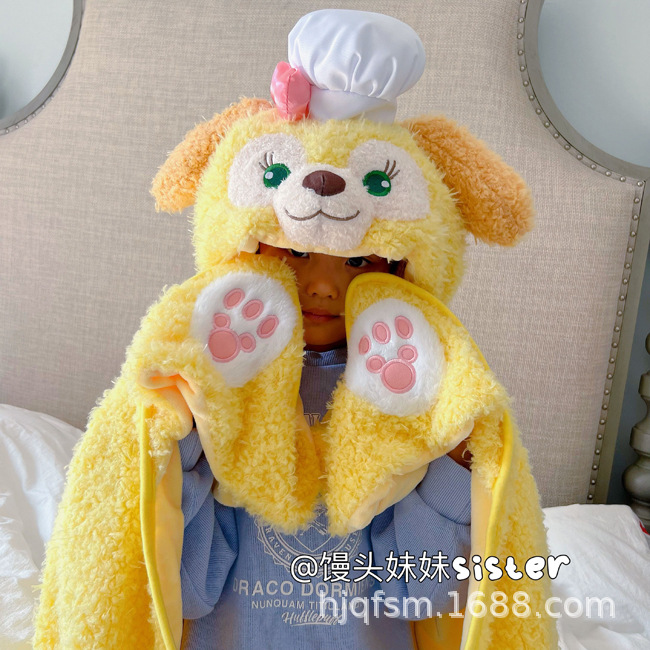 귀여운 만화 요리사 개 따뜻한 봉제 후드 망토 홈 게으른 홈 망토 사무실 낮잠 담요스토어 가기