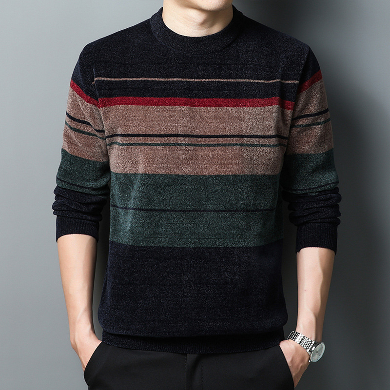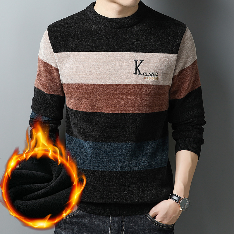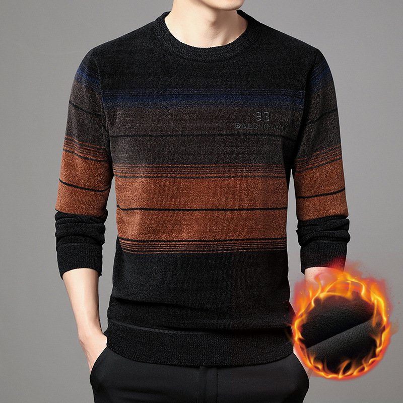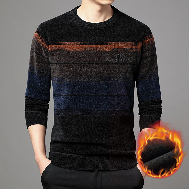 겨울 남자의 라운드 넥 셔닐 스웨터 기모 두꺼운 열 속옷 캐주얼 남자의 니트 스웨터 남자의 기본 셔츠