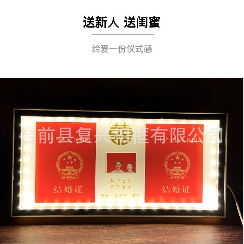 커플 결혼 증명서 사진 프레임 인증서 등록 사진 프레임 커플 기념 선물 사진 스튜디오 설정 사진 프레임 라이트 럭셔리스토어 가기