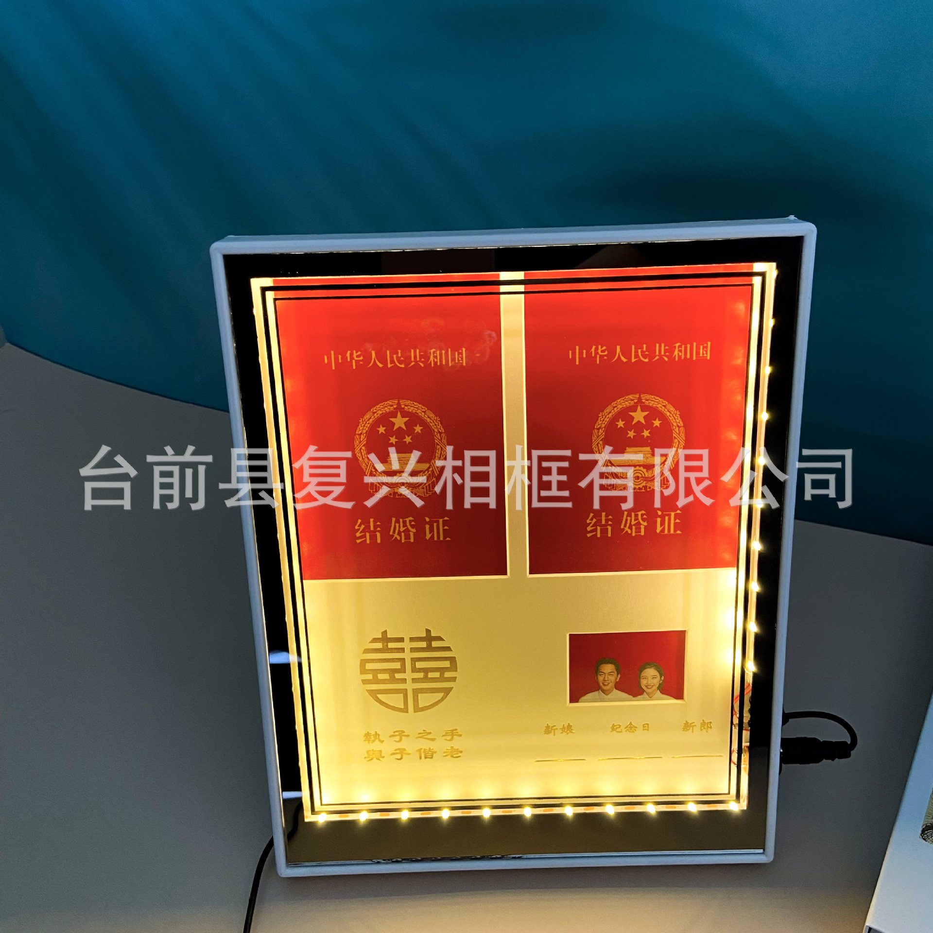 커플 결혼 증명서 사진 프레임 인증서 등록 사진 프레임 커플 기념 선물 사진 스튜디오 설정 사진 프레임 라이트 럭셔리