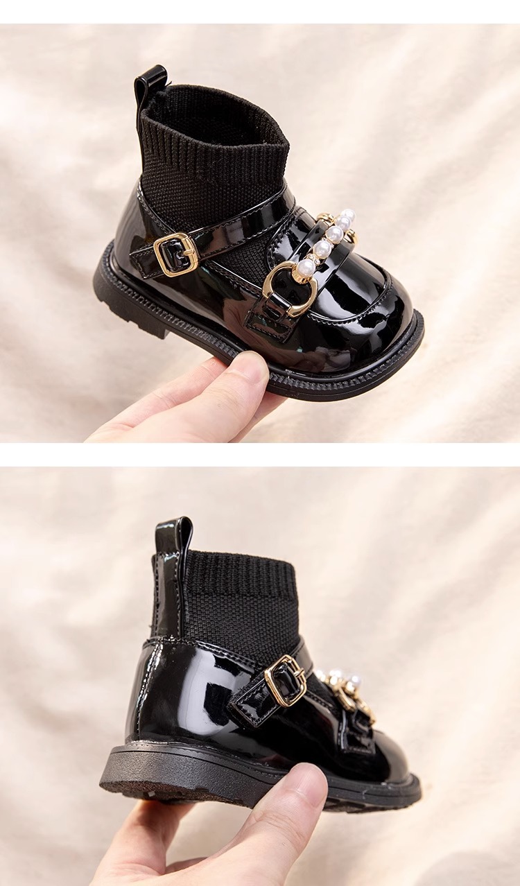 가을과 겨울 아기 소녀 양말 신발 기모 발목 부츠 아기 부드러운 단독 유아 신발 여아 면화 영국 공주 가죽 신발