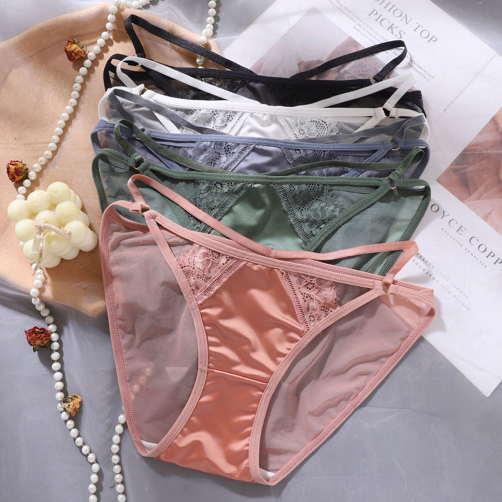 블랙 로맨틱 ~ 하이 크로스 레이스 순수 섹시 섹시 팬티 여성용 얇은 로우 웨이스트 메쉬 여아 삼각형 반바지