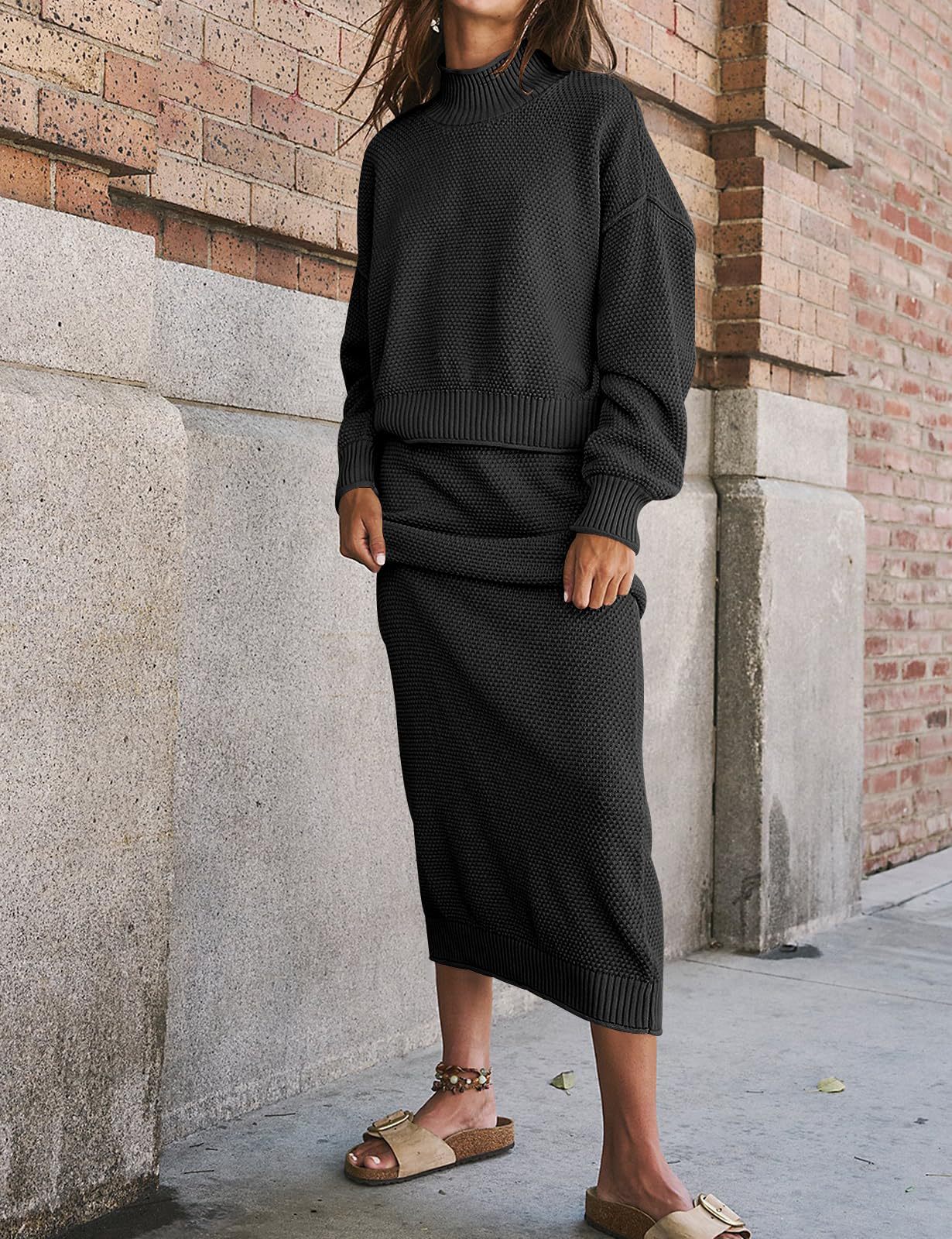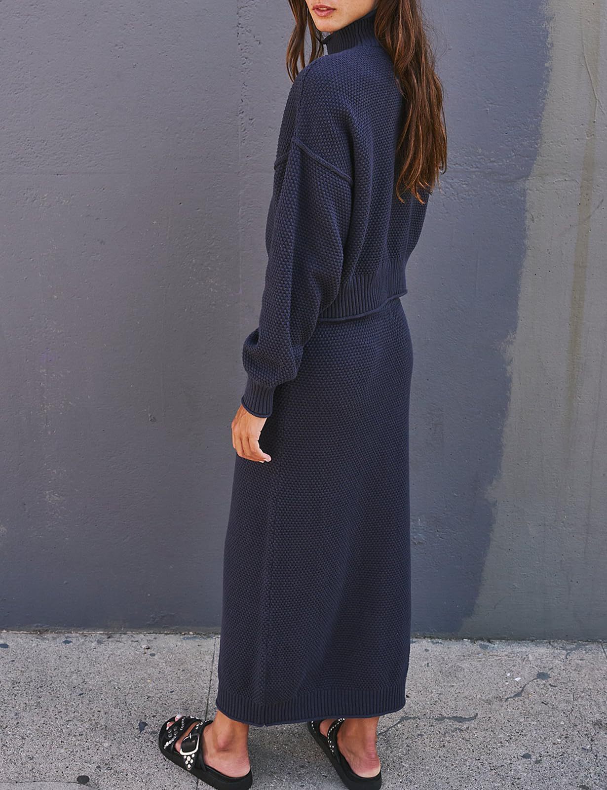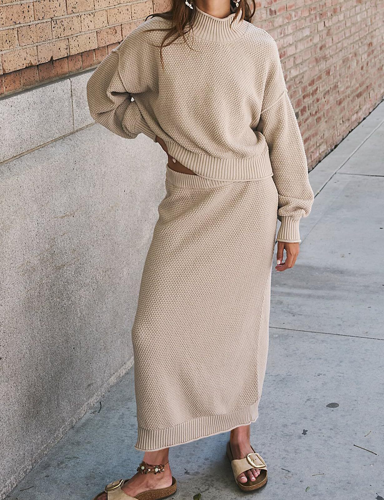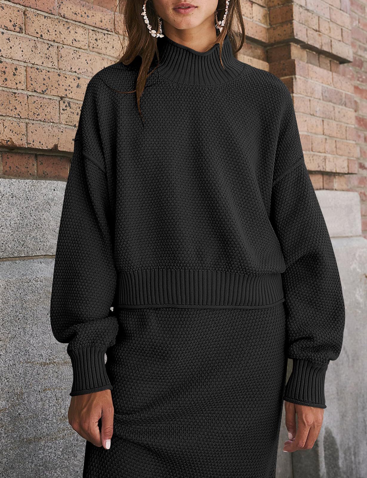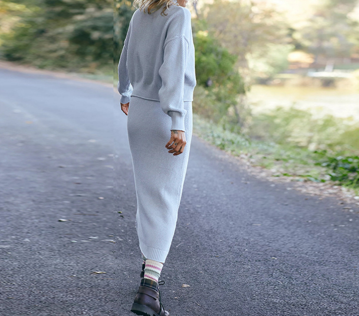 재고 유럽과 미국 국경 가을과 겨울 새로운 여성 패션 세트 긴 소매 작은 하이 칼라 탑 펜슬 스커트 2 피스 세트스토어 가기