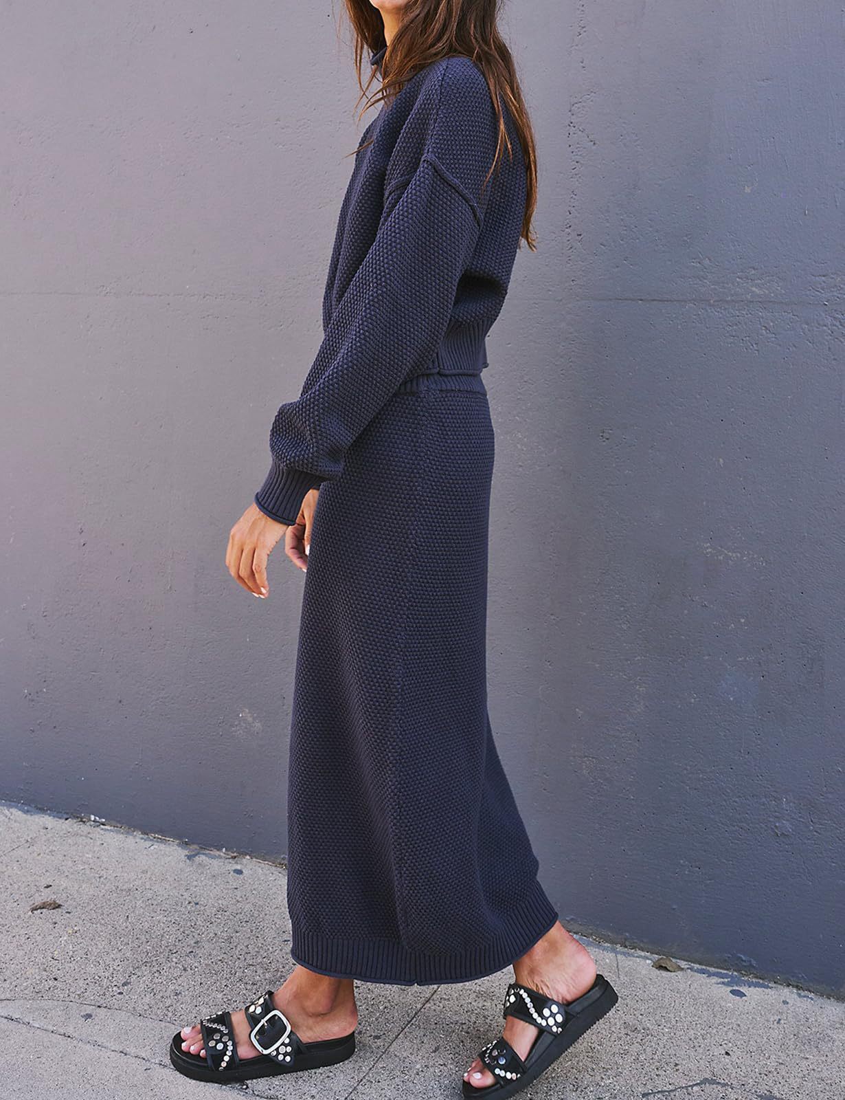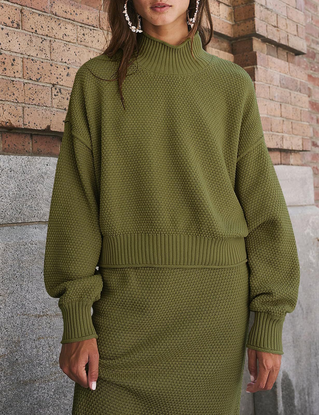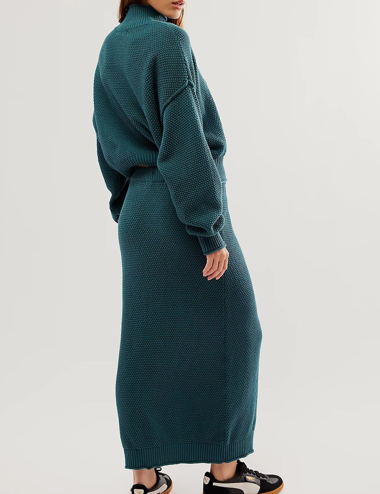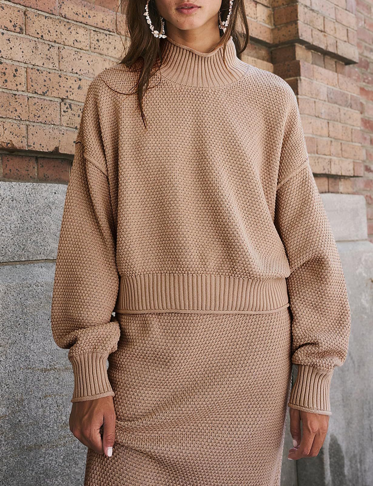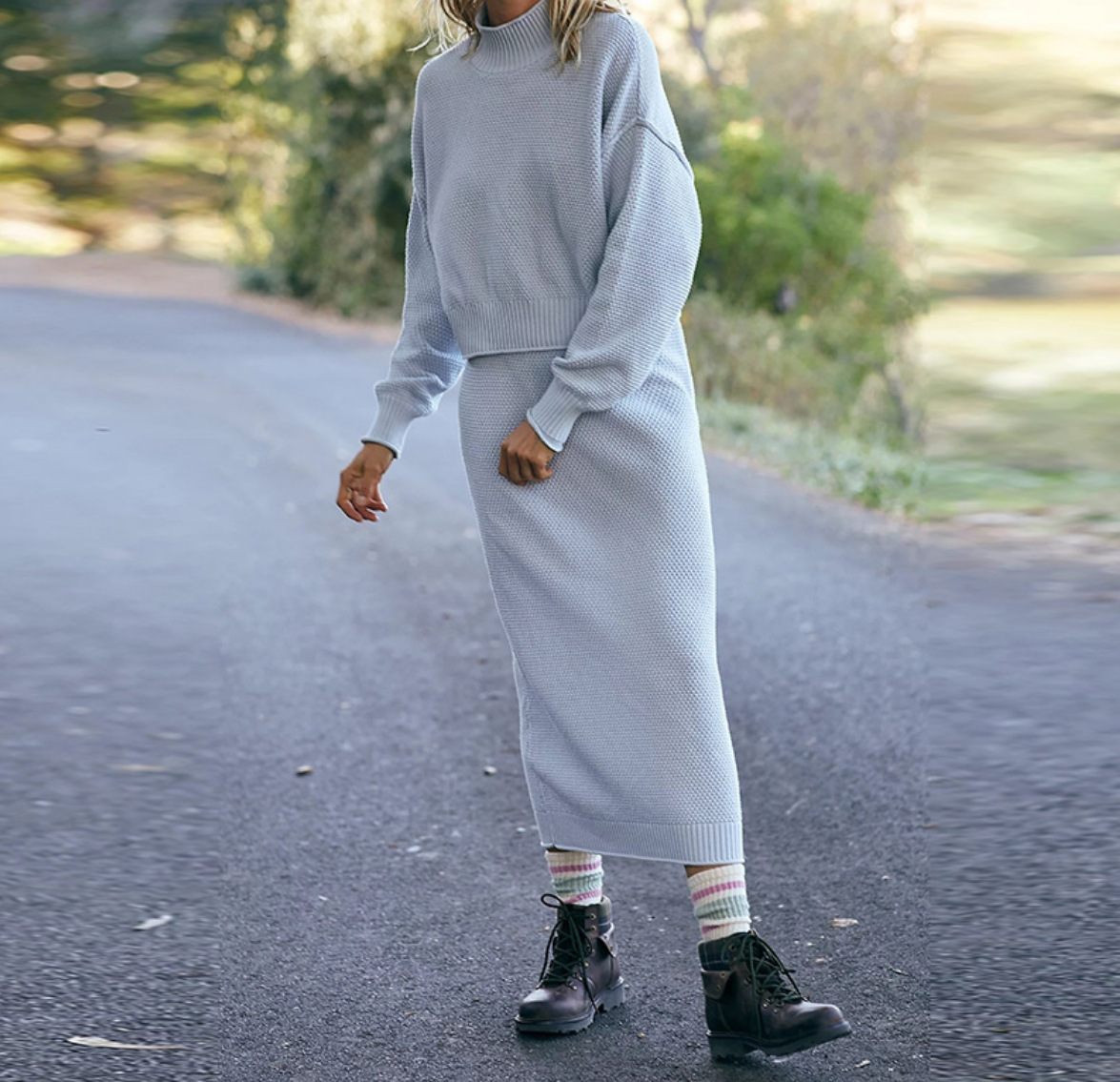 재고 유럽과 미국 국경 가을과 겨울 새로운 여성 패션 세트 긴 소매 작은 하이 칼라 탑 펜슬 스커트 2 피스 세트스토어 가기