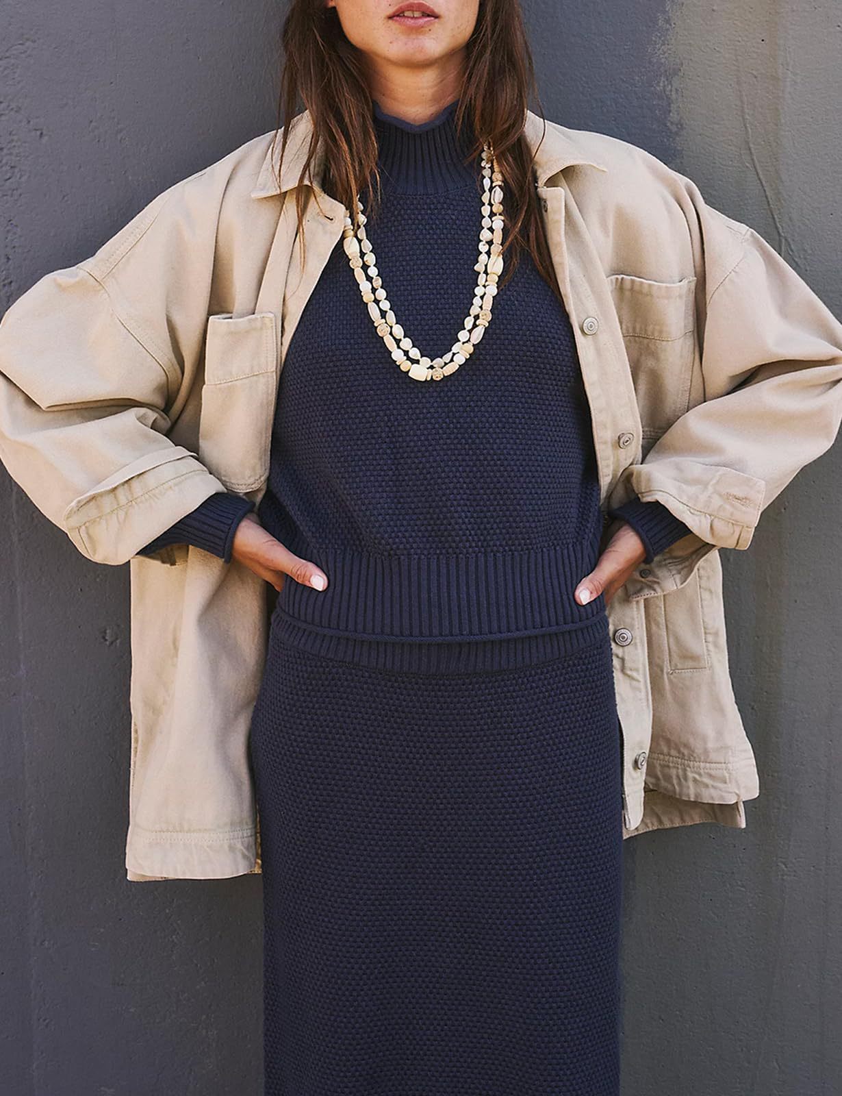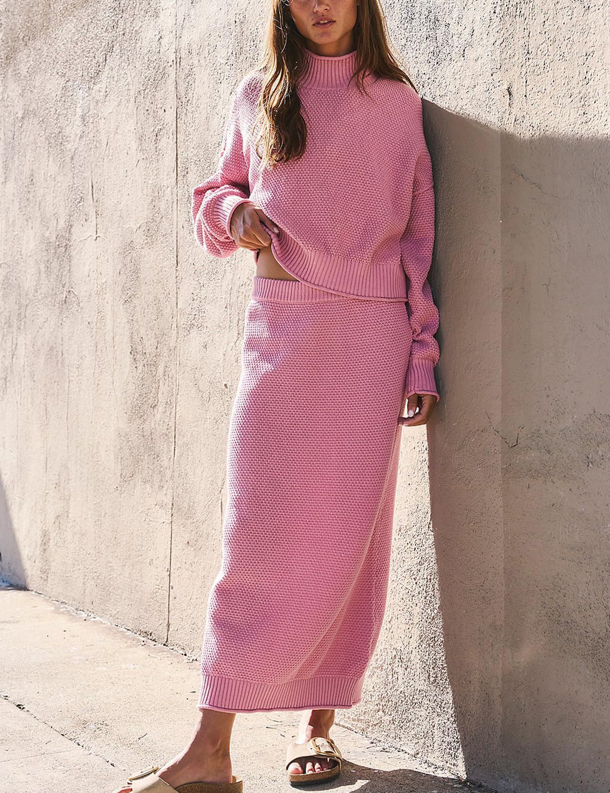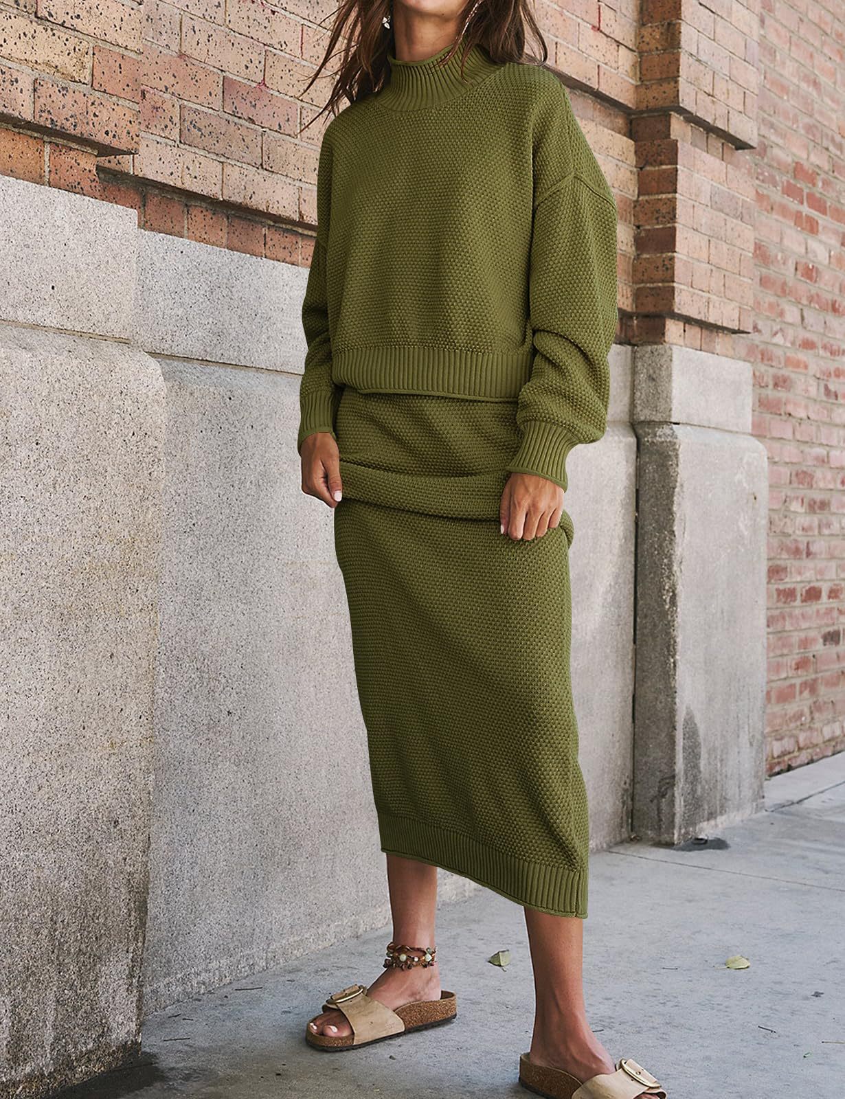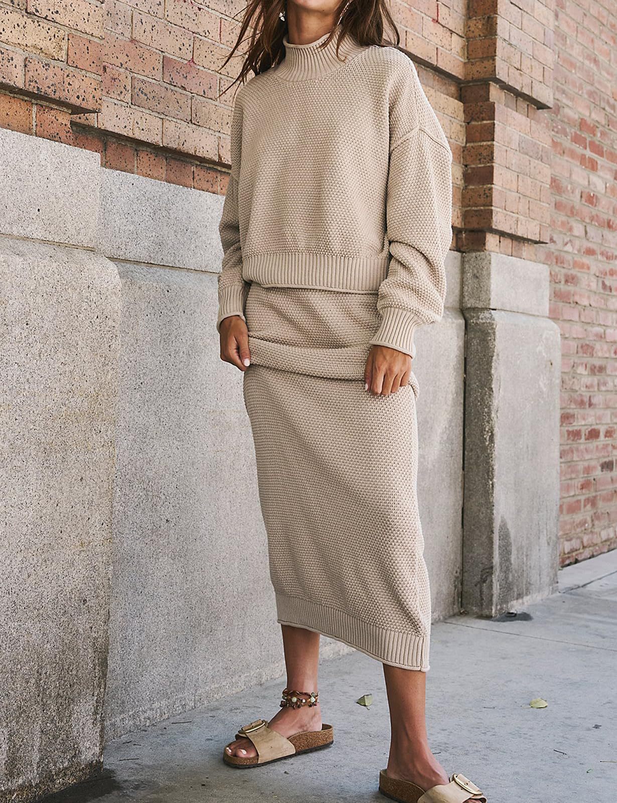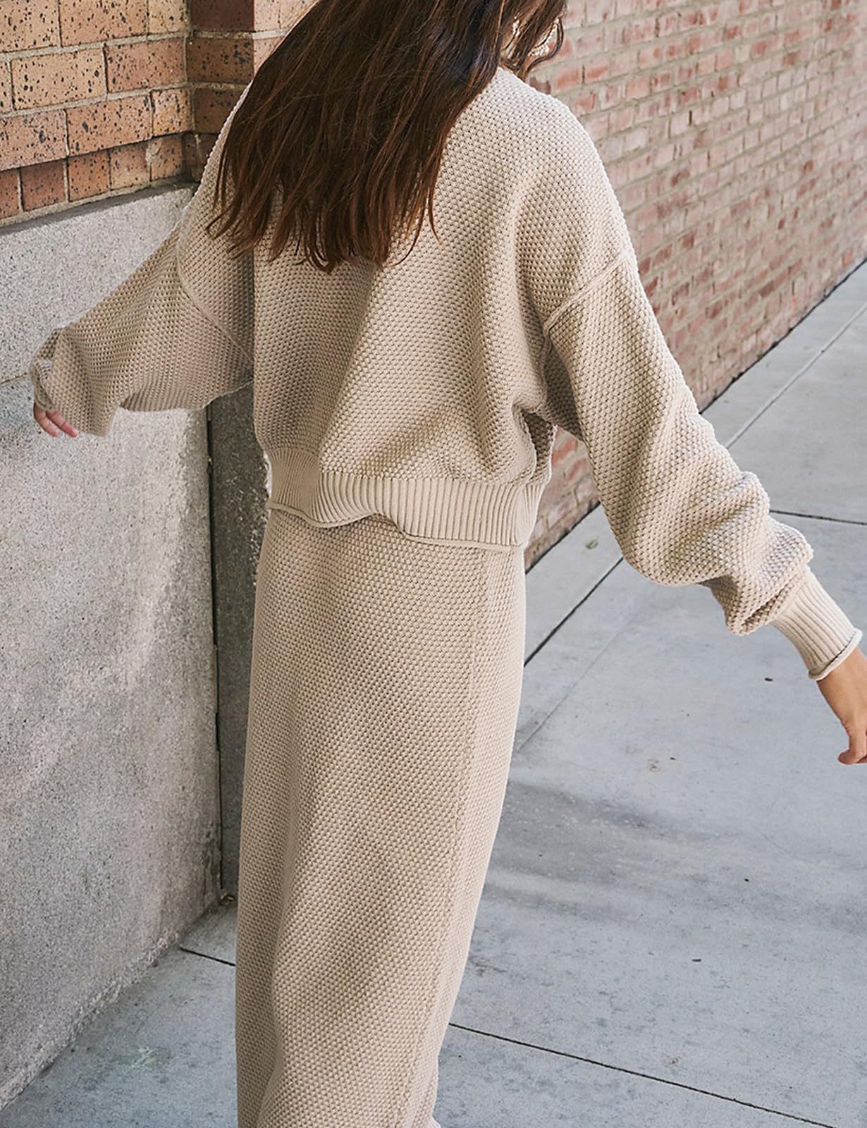 재고 유럽과 미국 국경 가을과 겨울 새로운 여성 패션 세트 긴 소매 작은 하이 칼라 탑 펜슬 스커트 2 피스 세트스토어 가기