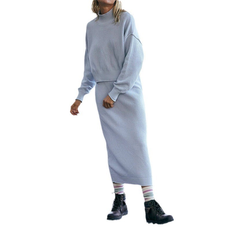 재고 유럽과 미국 국경 가을과 겨울 새로운 여성 패션 세트 긴 소매 작은 하이 칼라 탑 펜슬 스커트 2 피스 세트