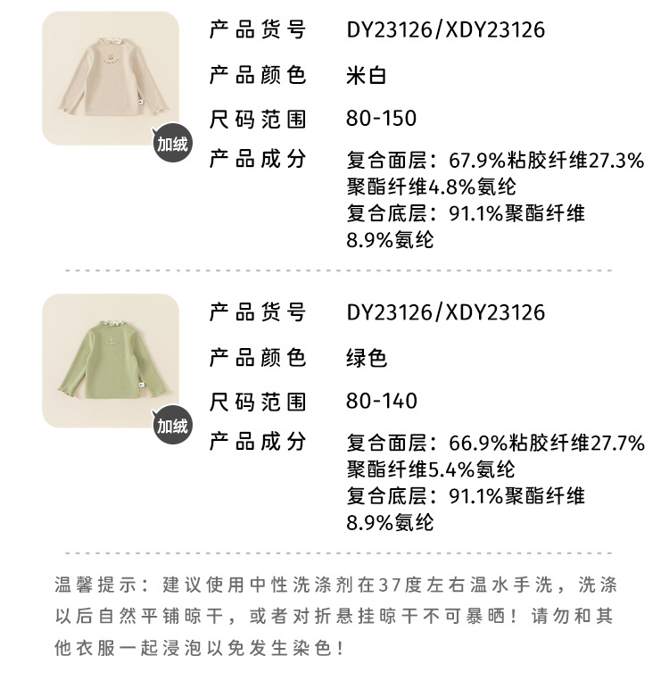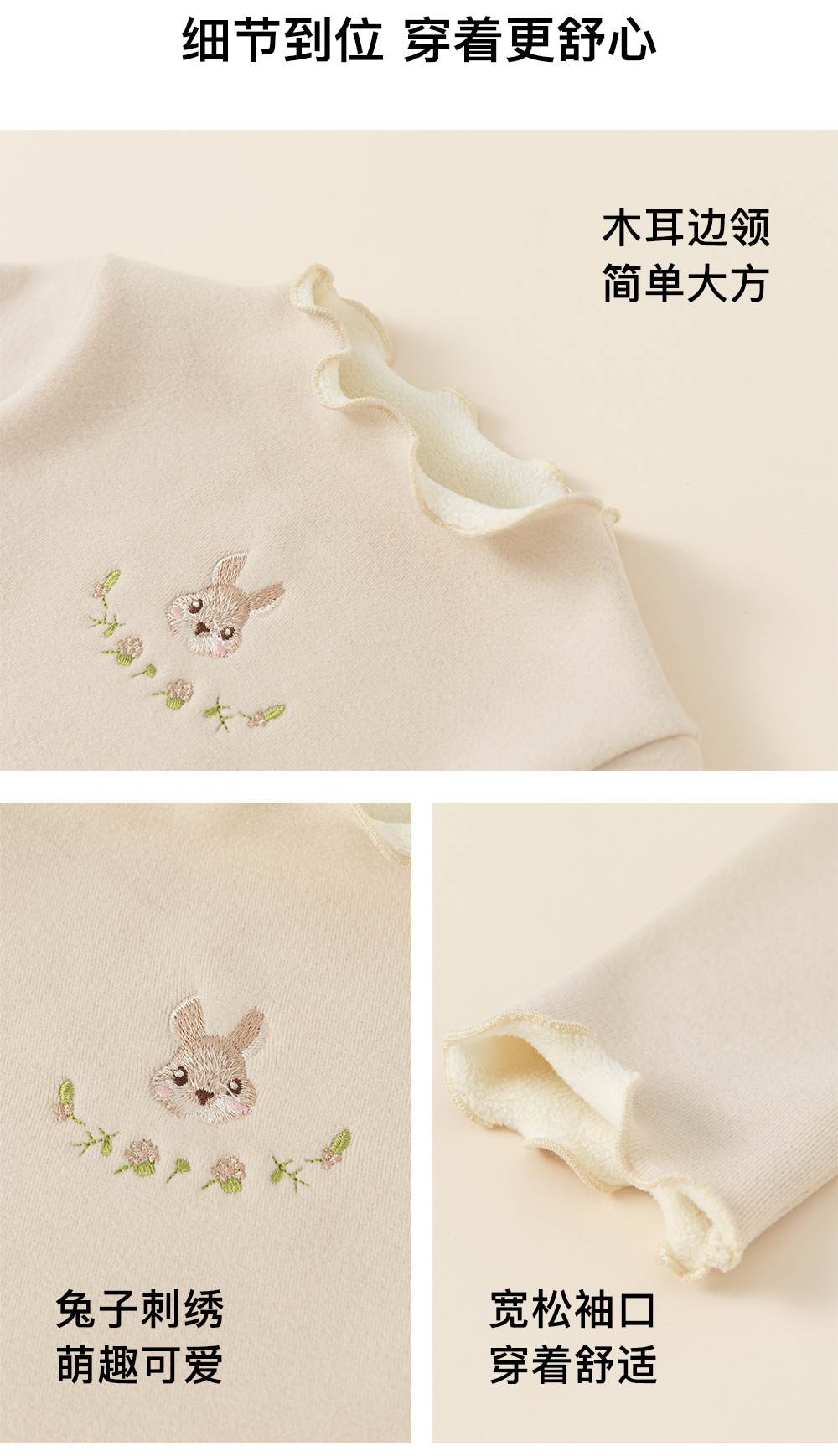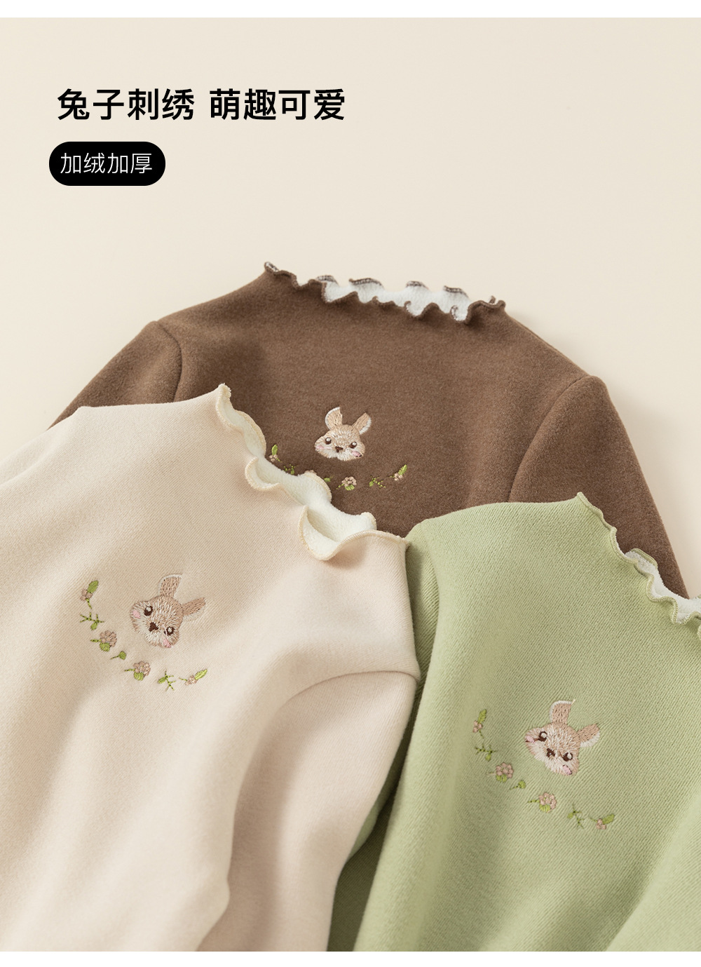 유바오 아동복 여아 겨울옷 다색 상의 어린이 토끼 자수 일체형 벨벳 이너웨어 여아 베이비 베이스 셔츠