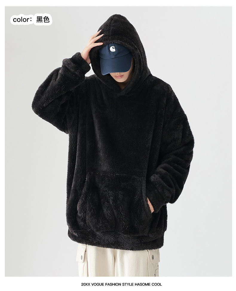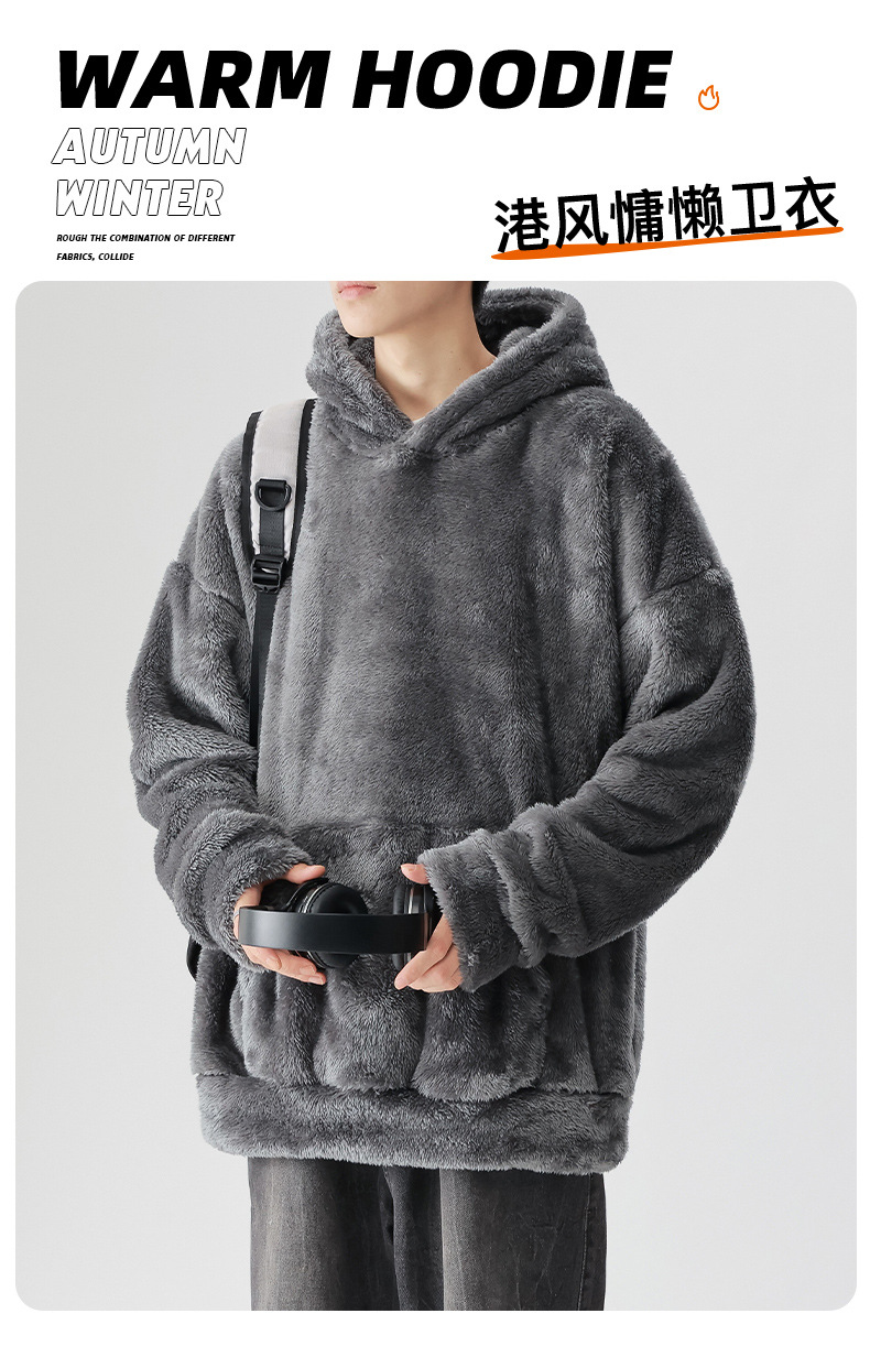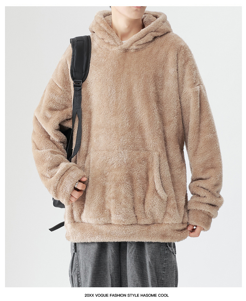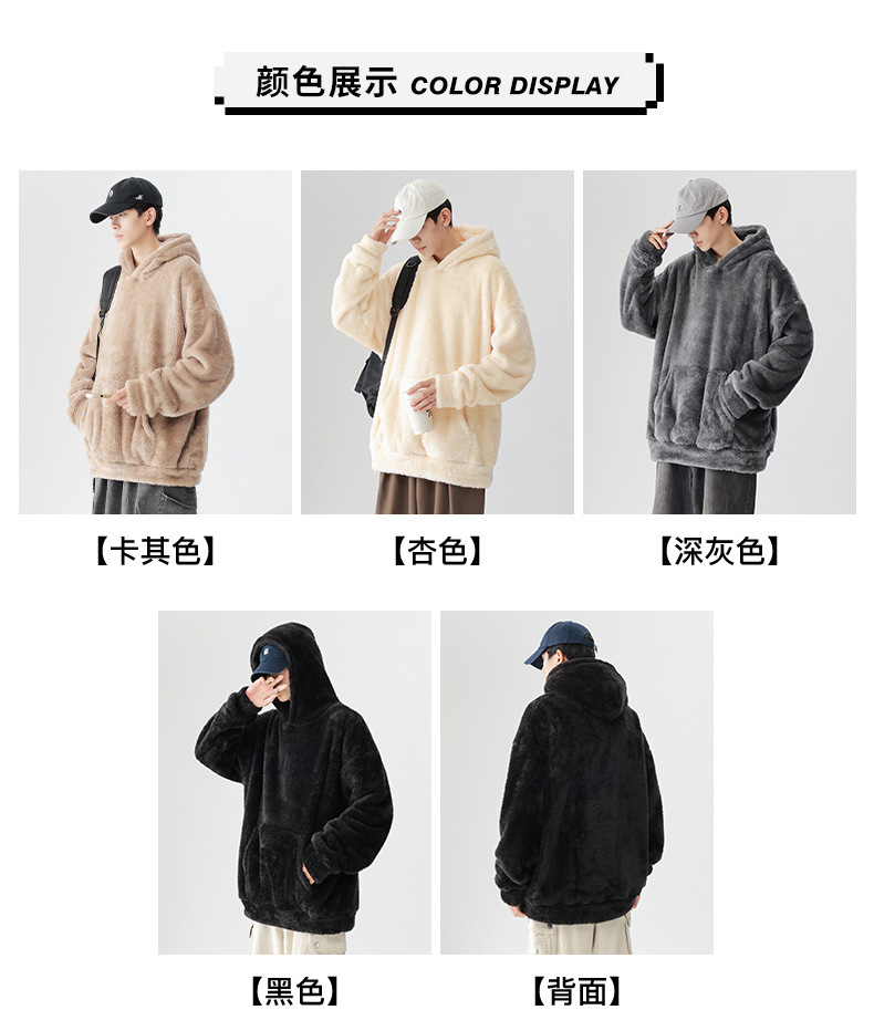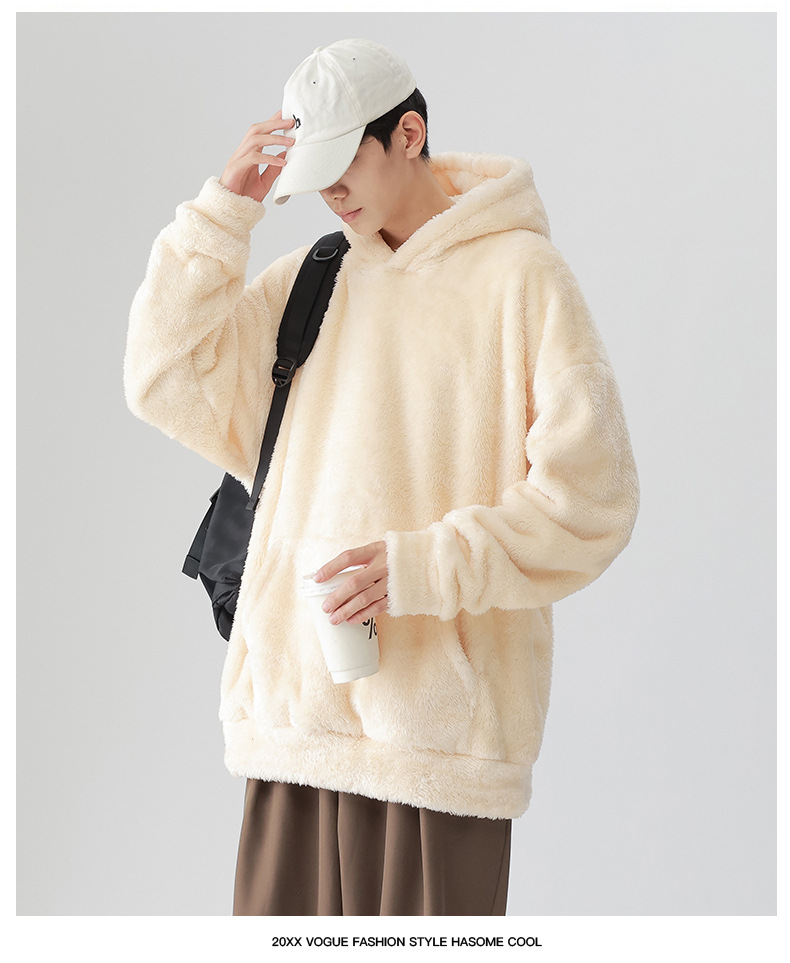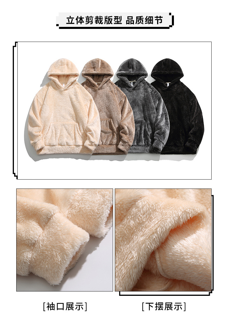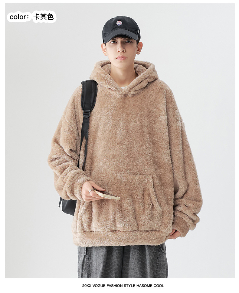 국경 간 순수 컬러 북극 양털 후드 재킷 남자 겨울 레트로 게으른 느슨한 커플의 캐주얼 스웨트 셔츠
