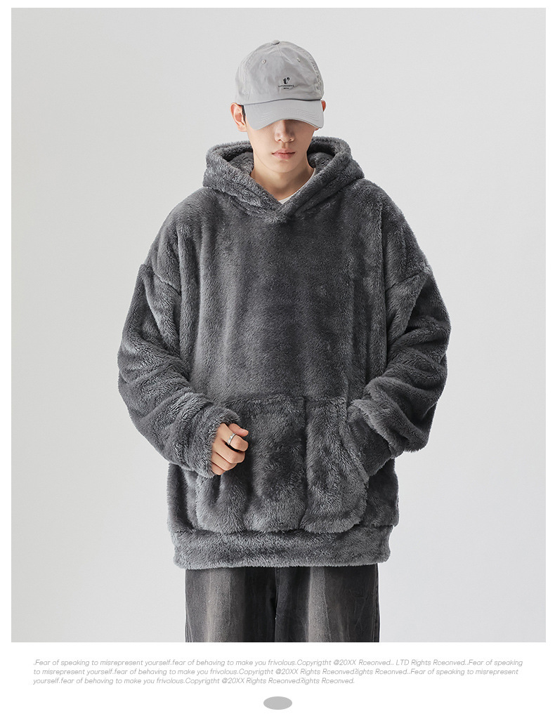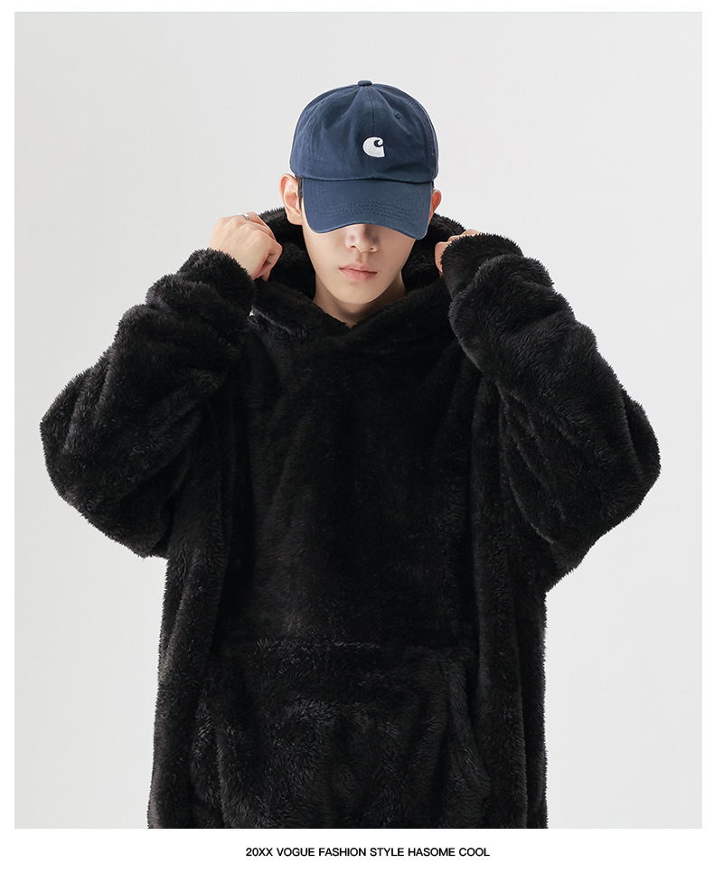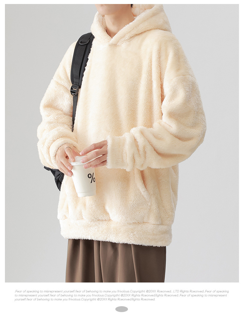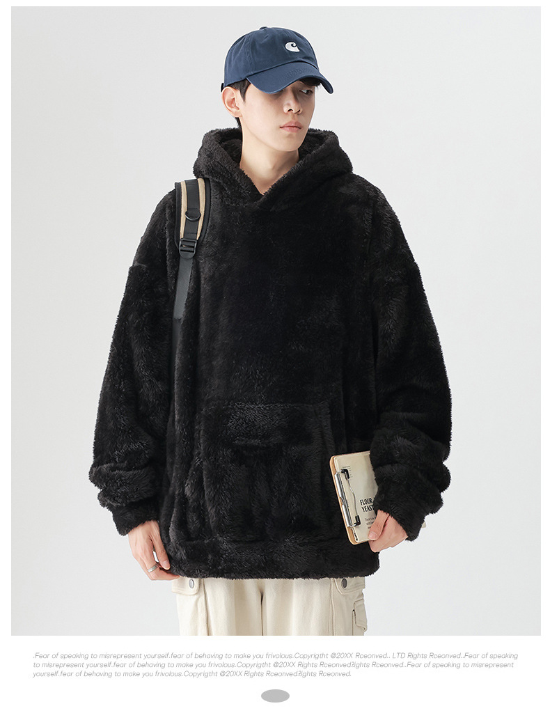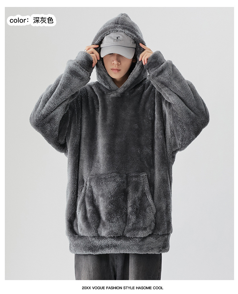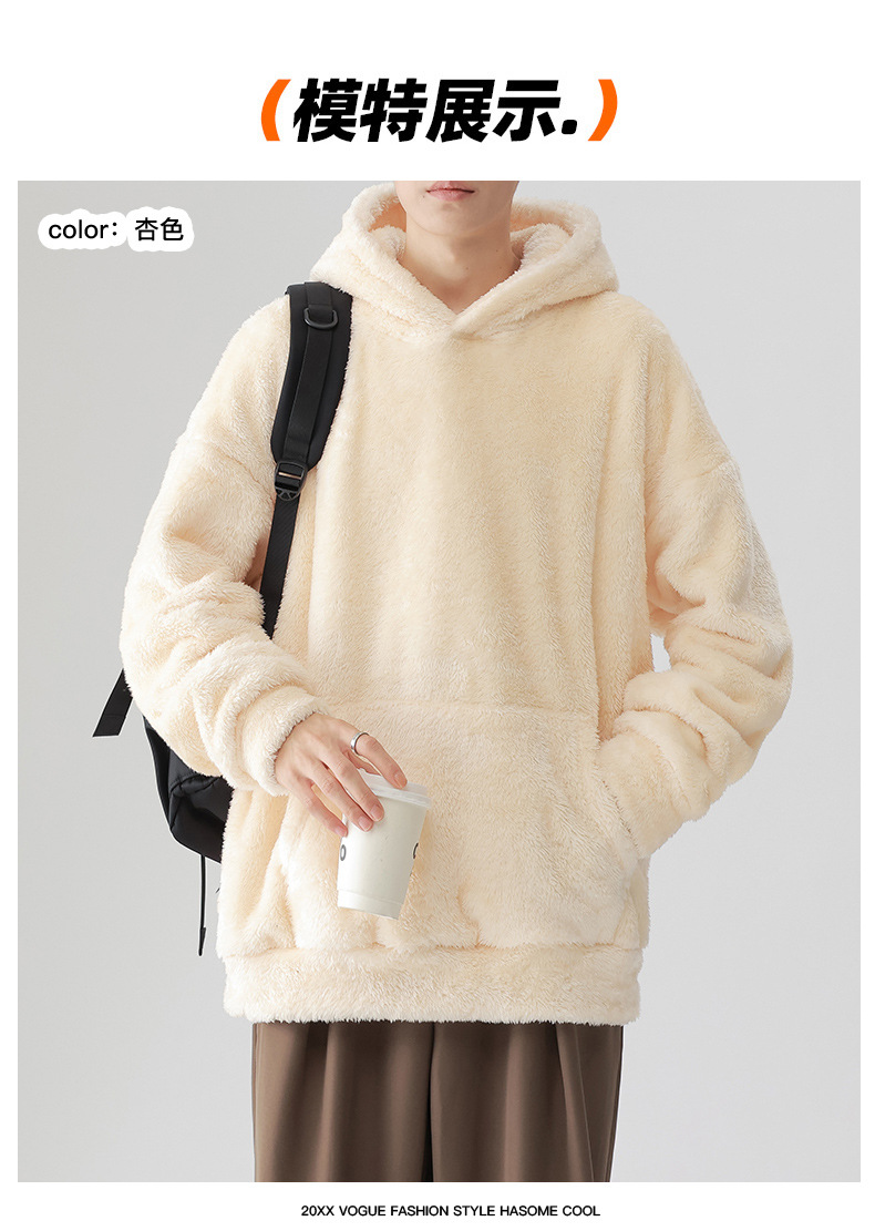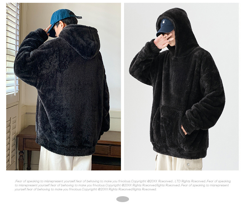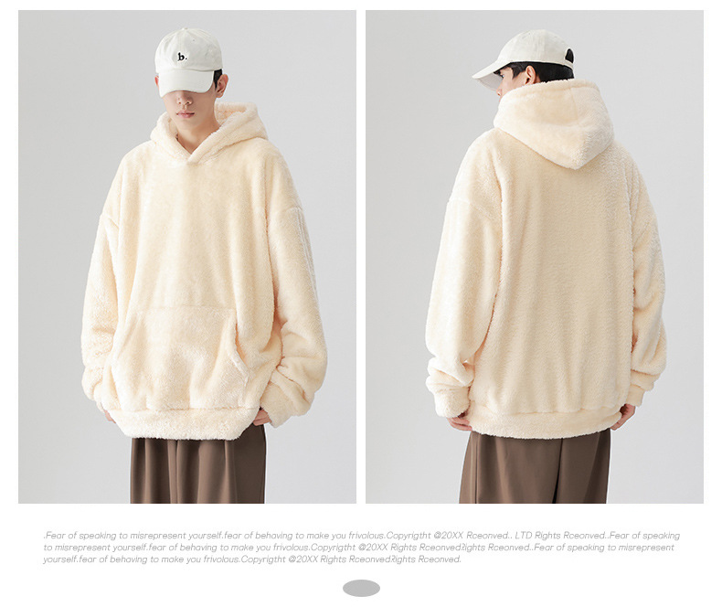 국경 간 순수 컬러 북극 양털 후드 재킷 남자 겨울 레트로 게으른 느슨한 커플의 캐주얼 스웨트 셔츠