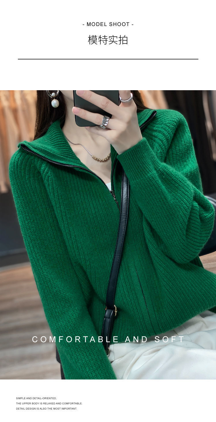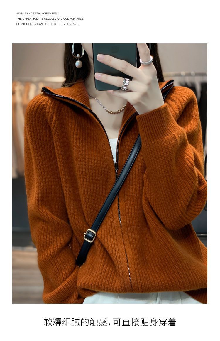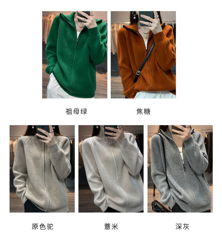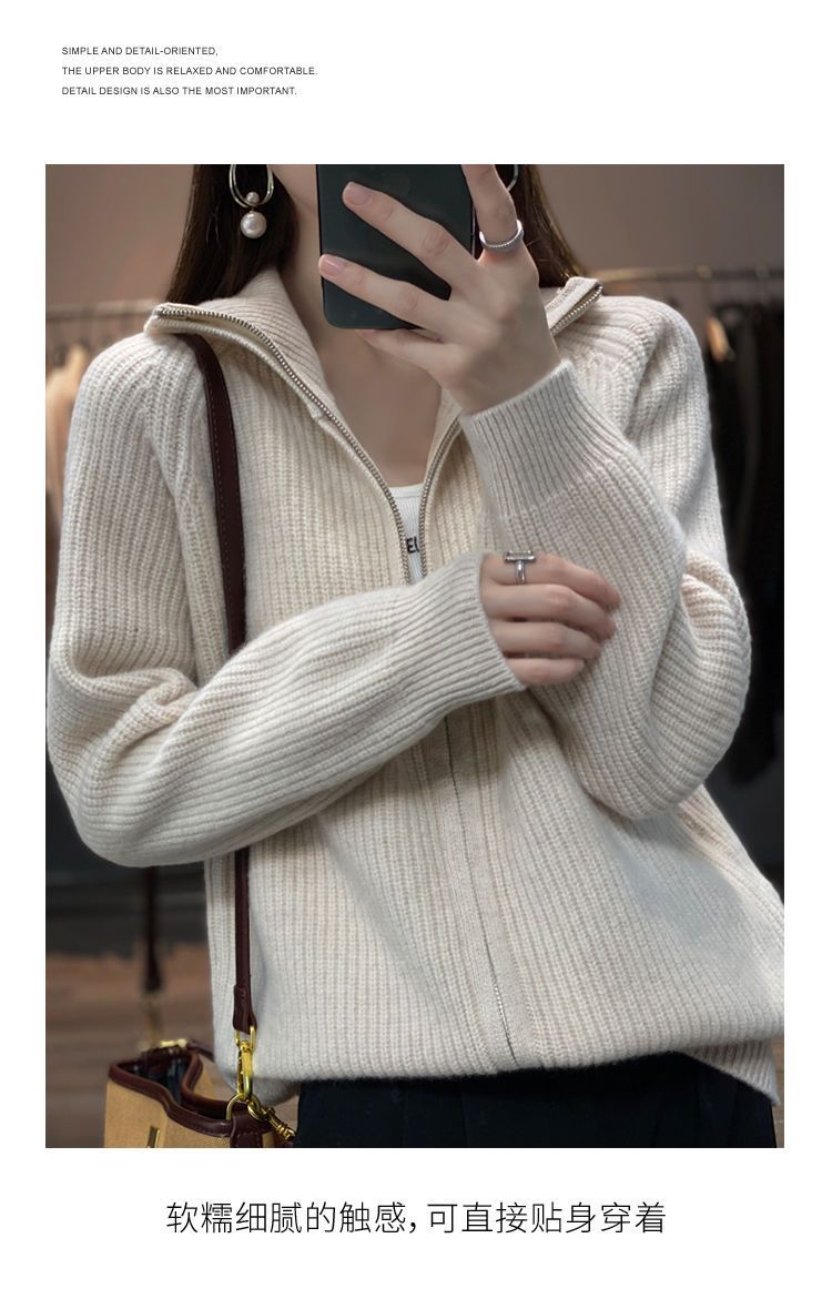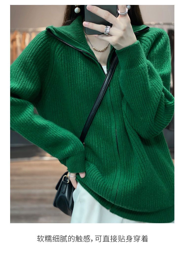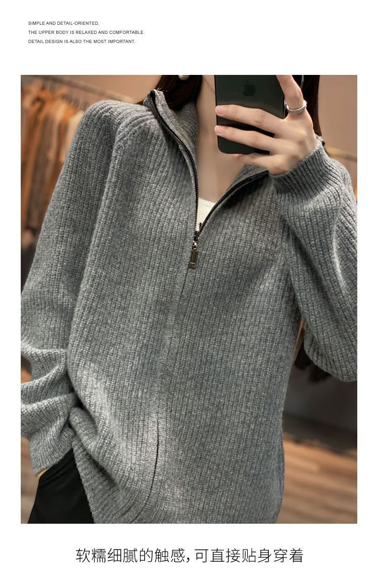 [양털] 솔리드 컬러 캐시미어 가디건 여성 루즈 스탠드 칼라 지퍼 스웨터 울 스웨터 짧은 코트 두꺼운스토어 가기