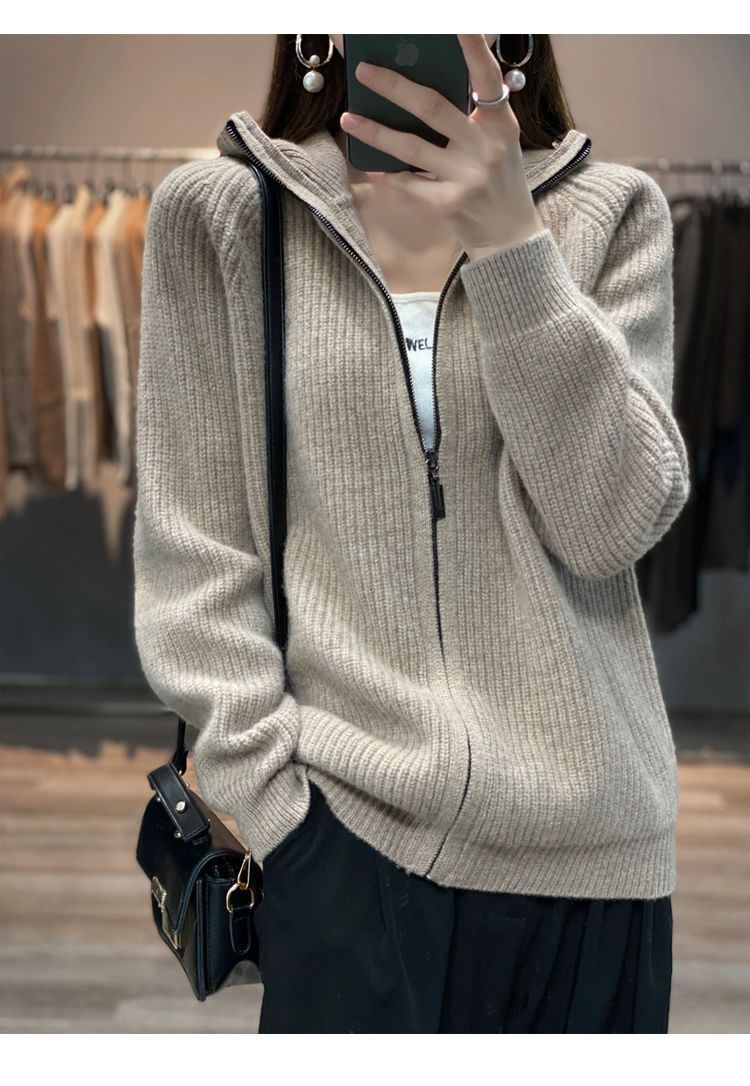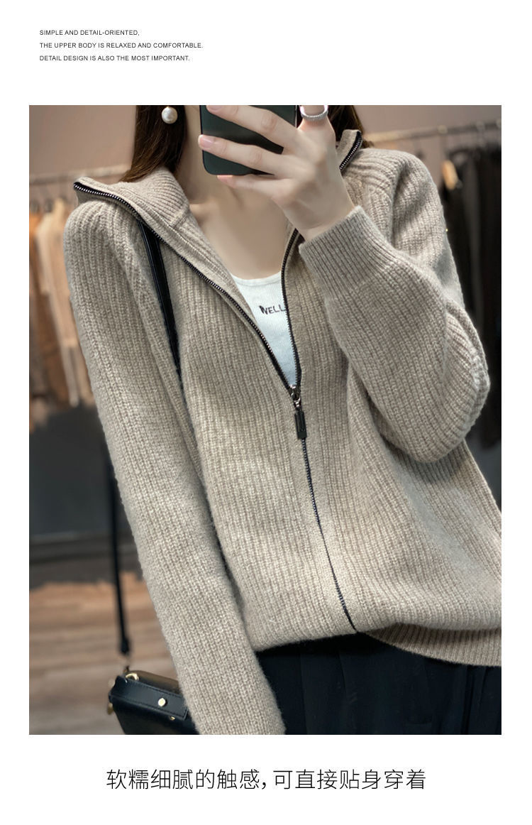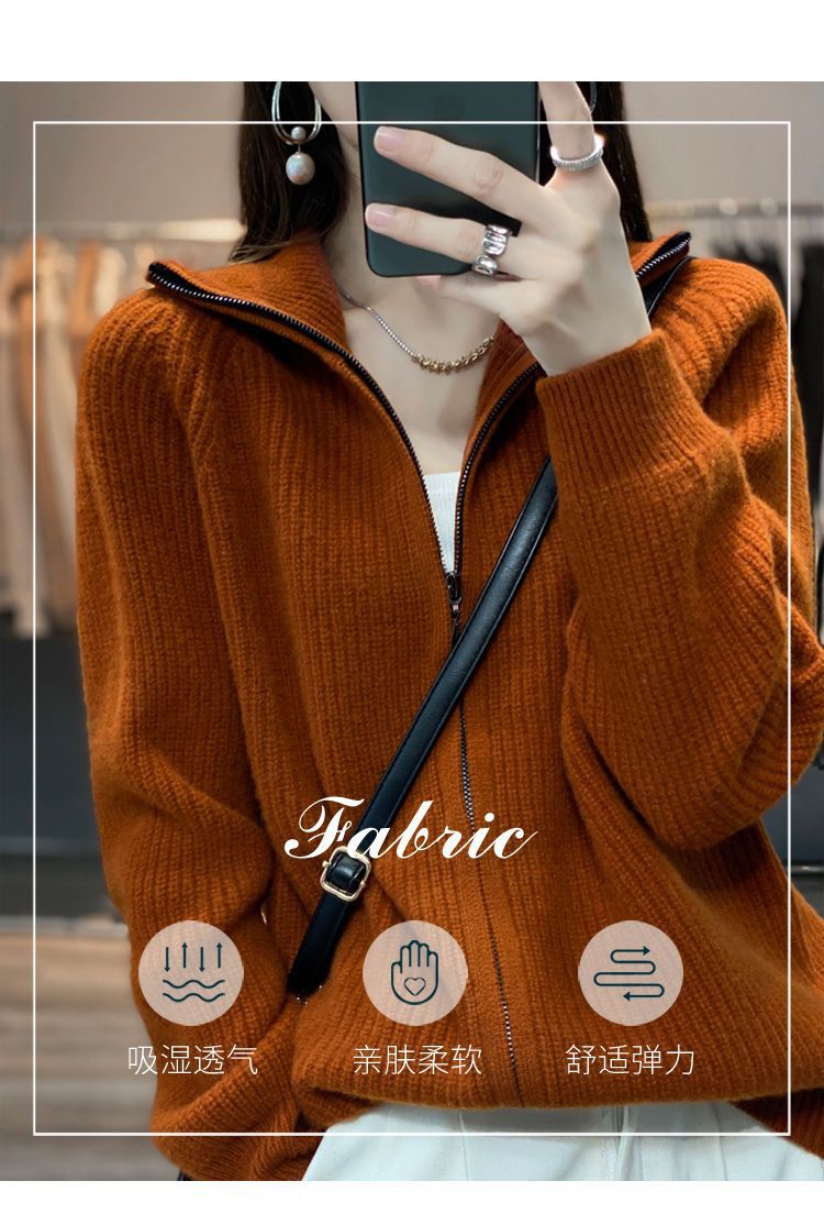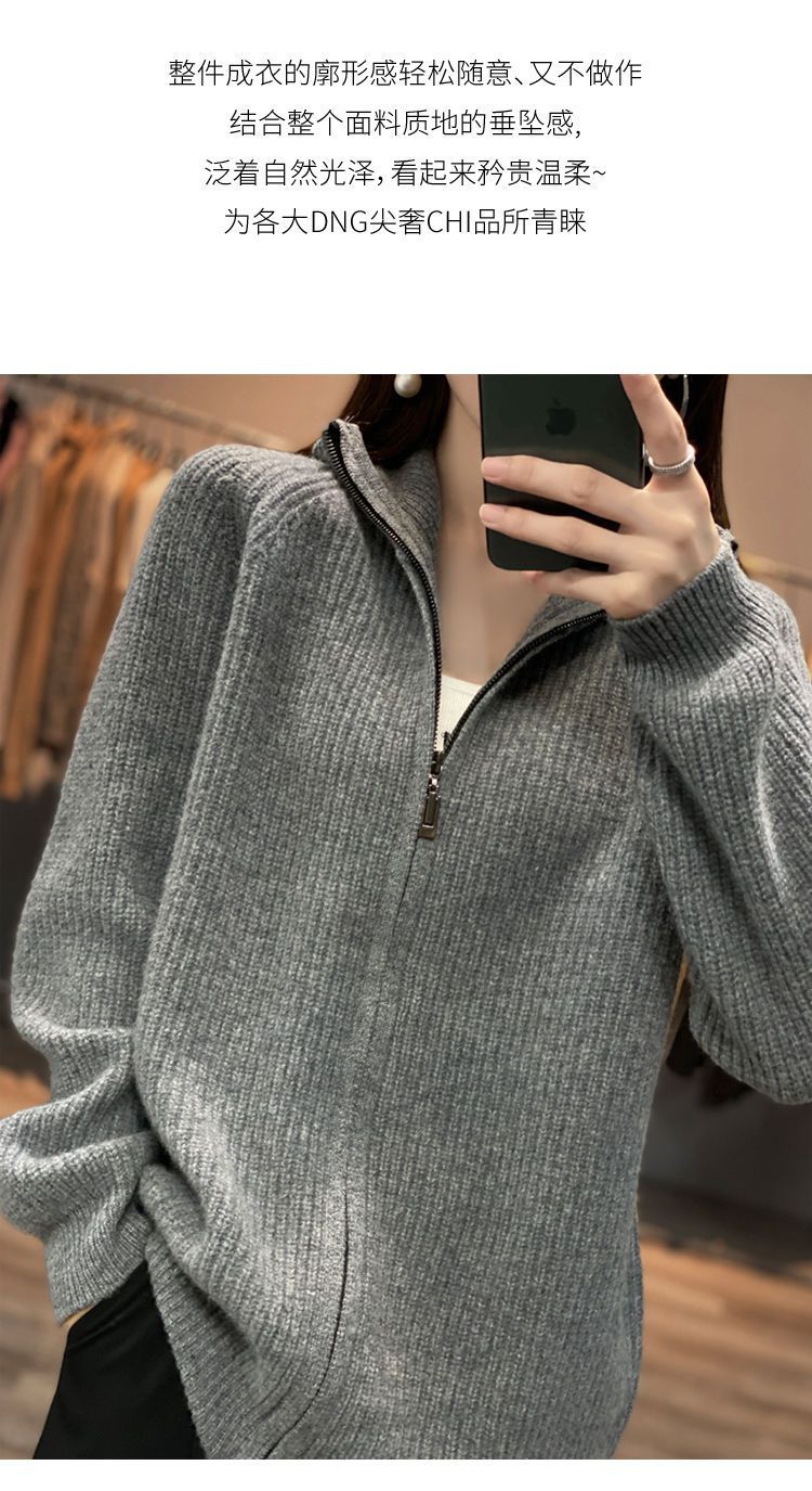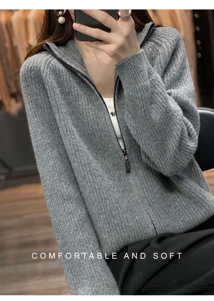 [양털] 솔리드 컬러 캐시미어 가디건 여성 루즈 스탠드 칼라 지퍼 스웨터 울 스웨터 짧은 코트 두꺼운스토어 가기
